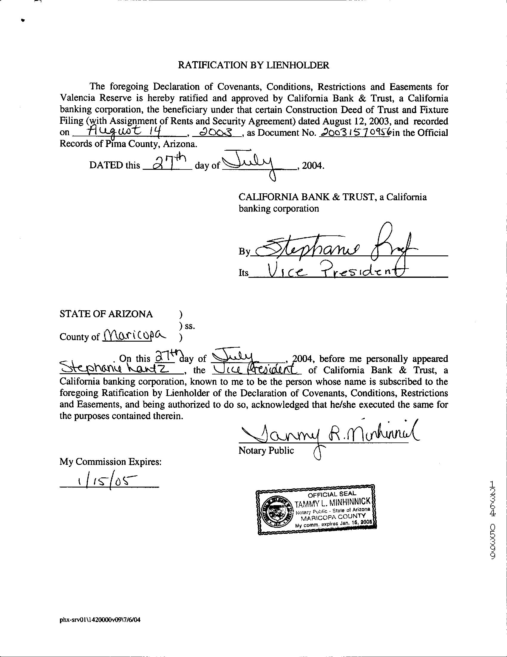 Know that our wiring instructions do not change so any communication is suspect. Our banking institution is First American Trust.
