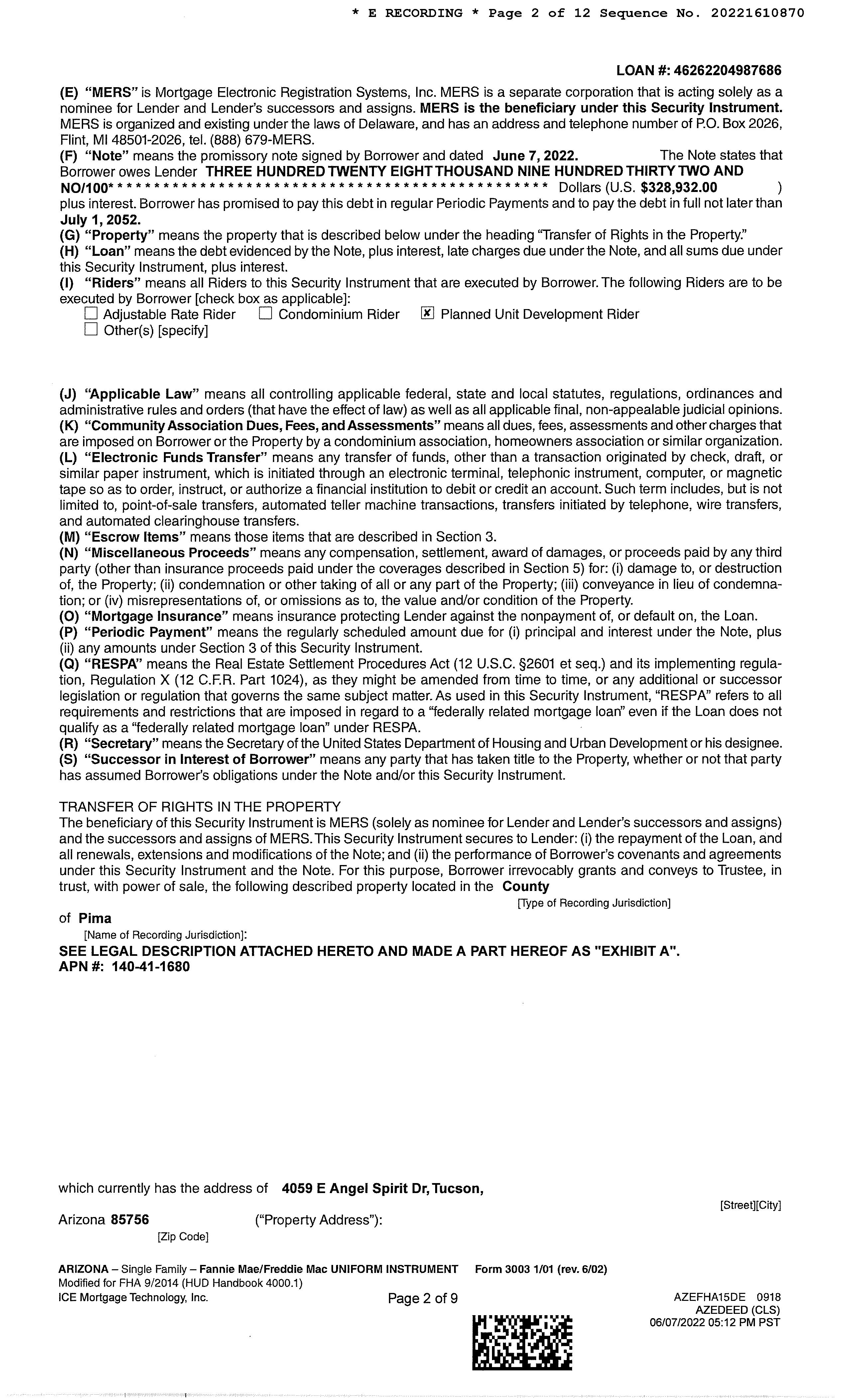 SITUS: 4059 E ANGEL SPIRIT DR TUC