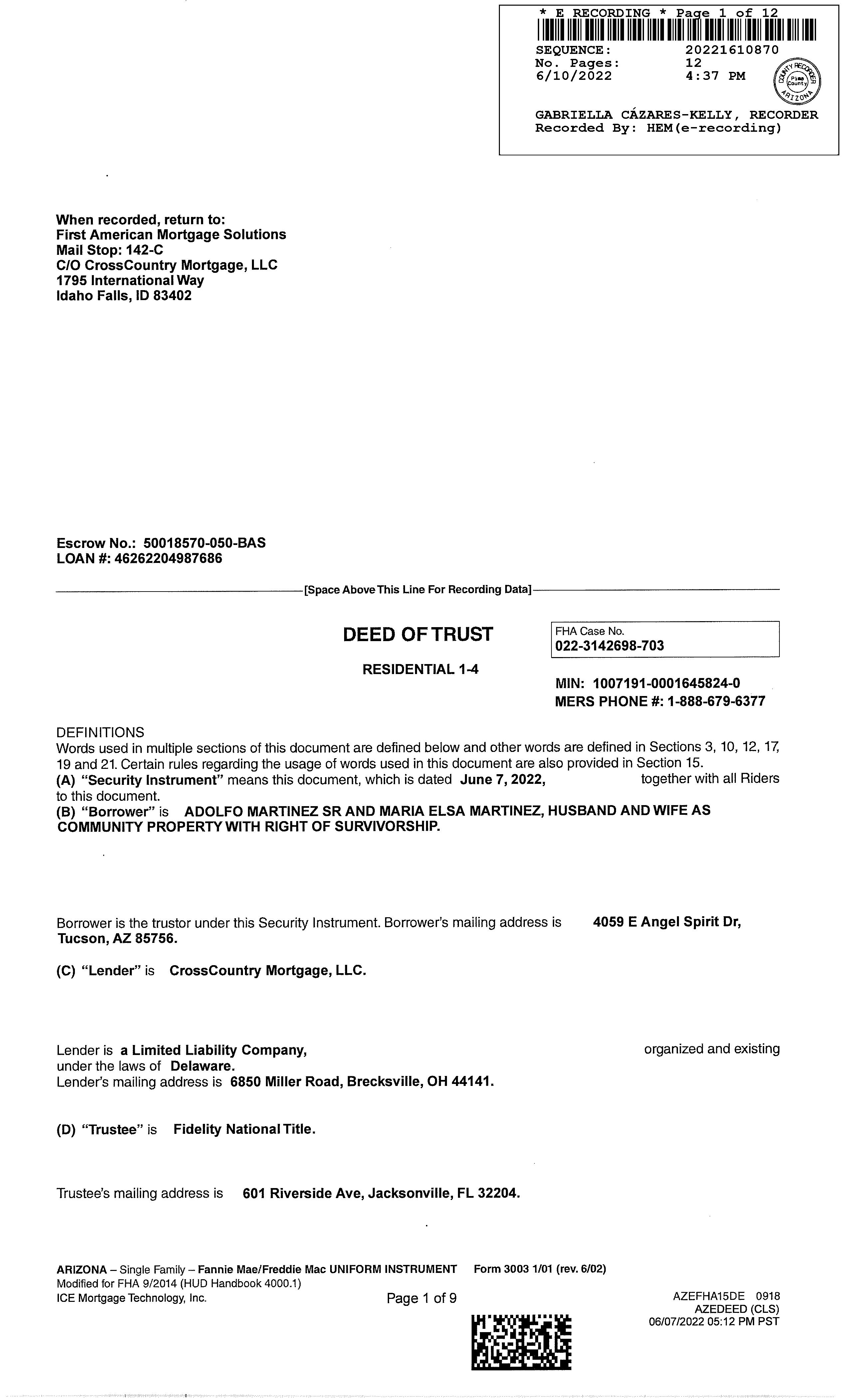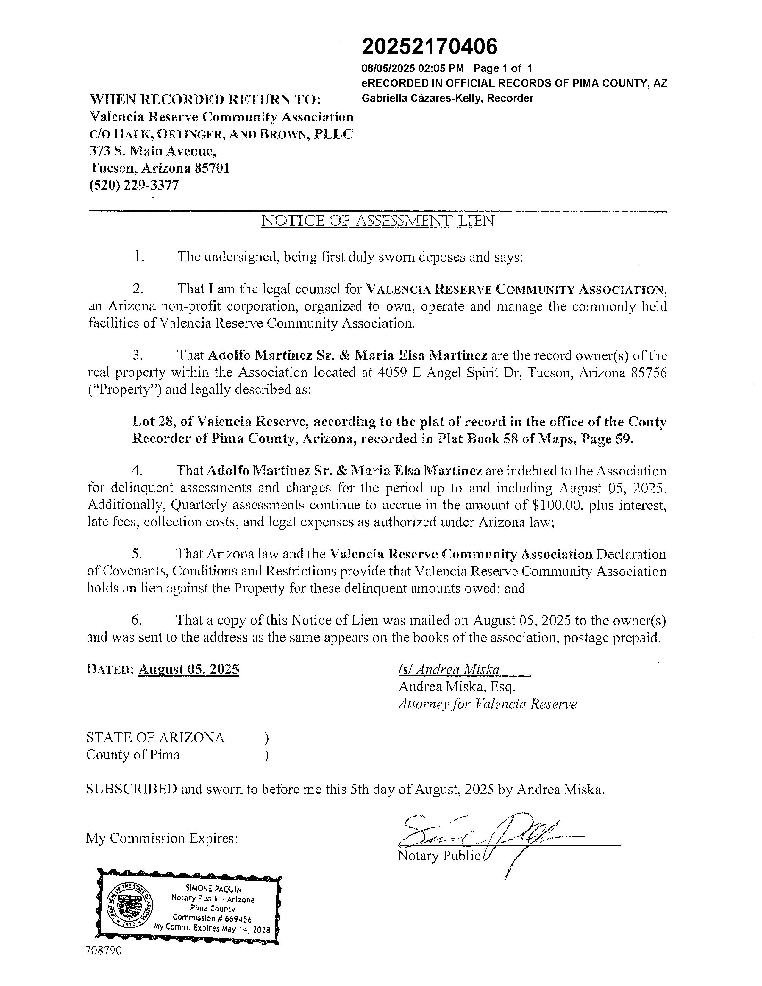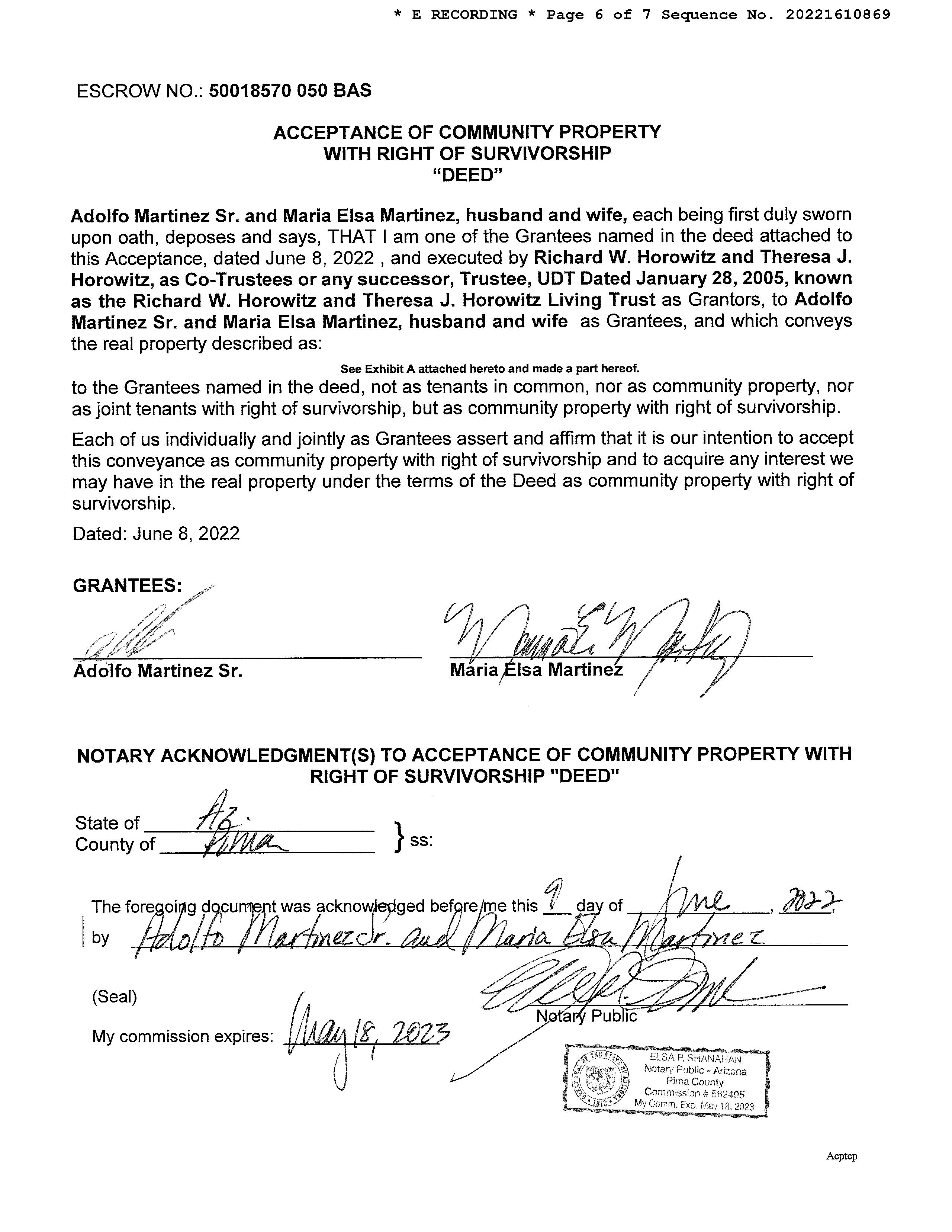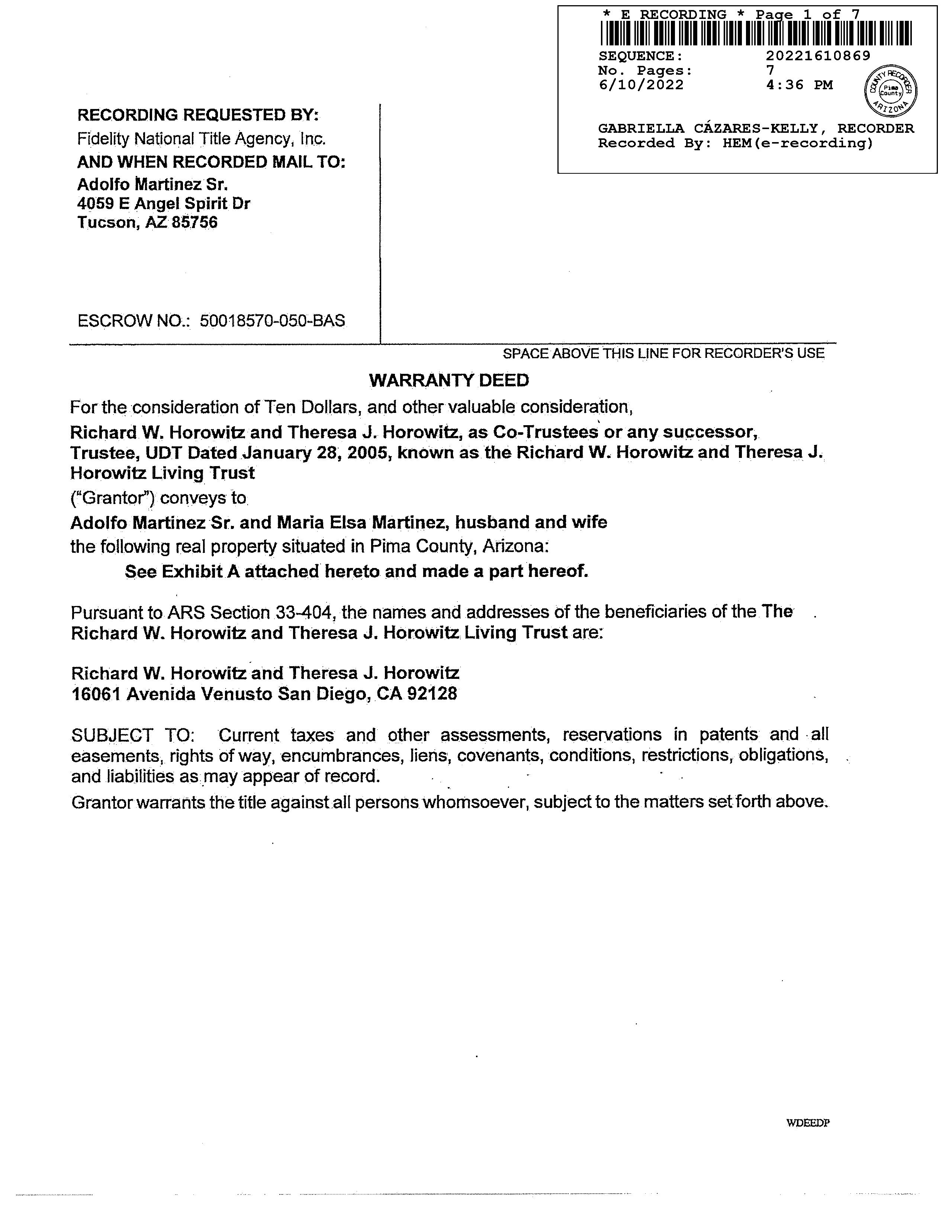 OWNER: MARTINEZ ADOLFO & MARIA AFFIDAVIT 2022 1610869 06/10/2022