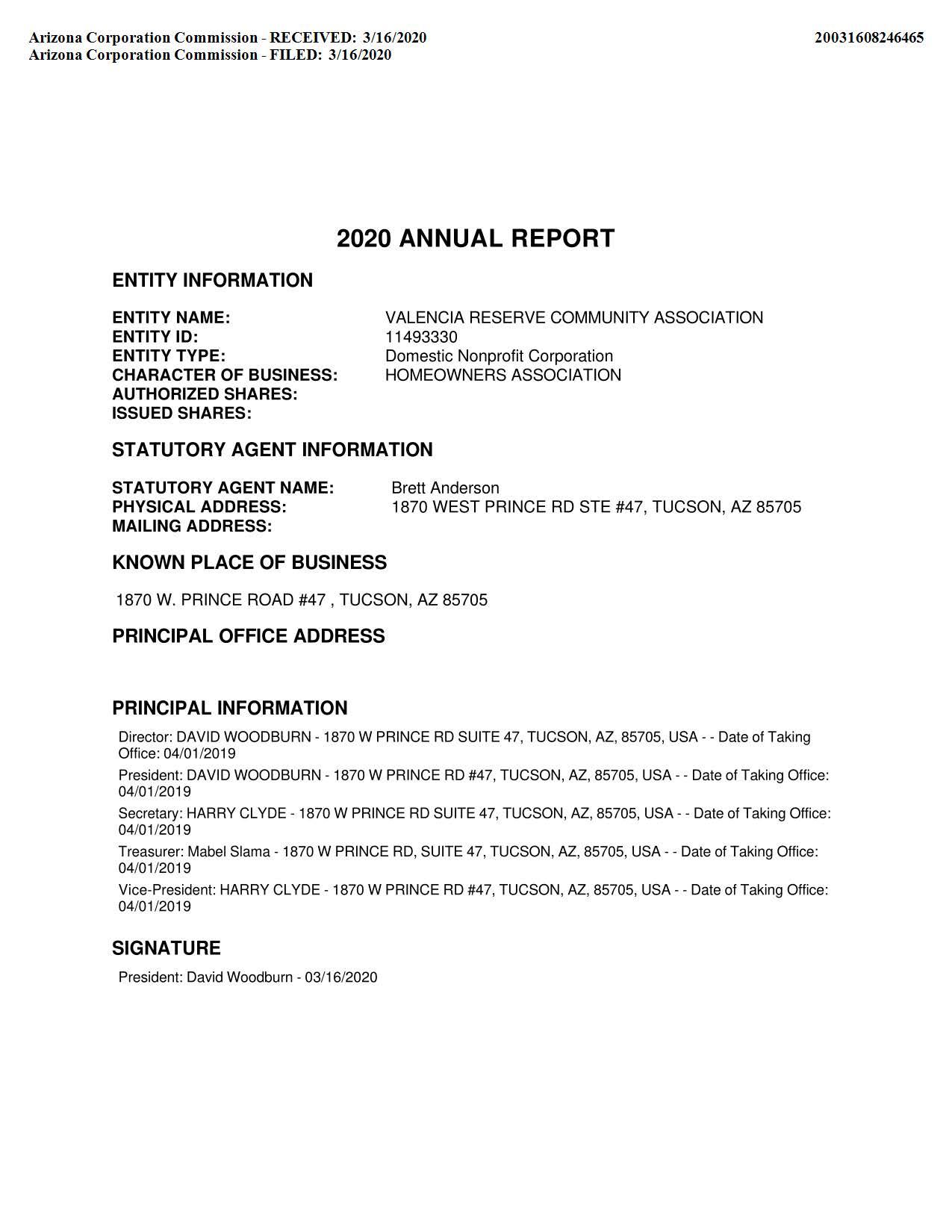 Mailing Address : 4059 E Angel Spirit Dr, Tucson AZ 85756-3052 C015