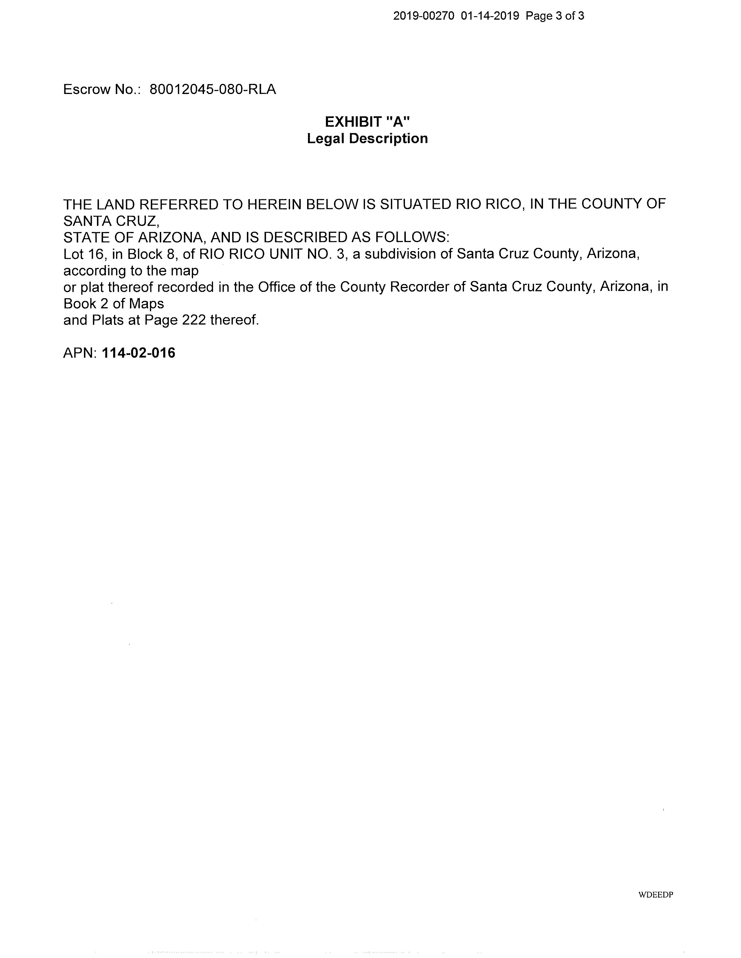 Legal Description : Sub Rio Rico Unit No.3 Lot 16 Of Blk 8