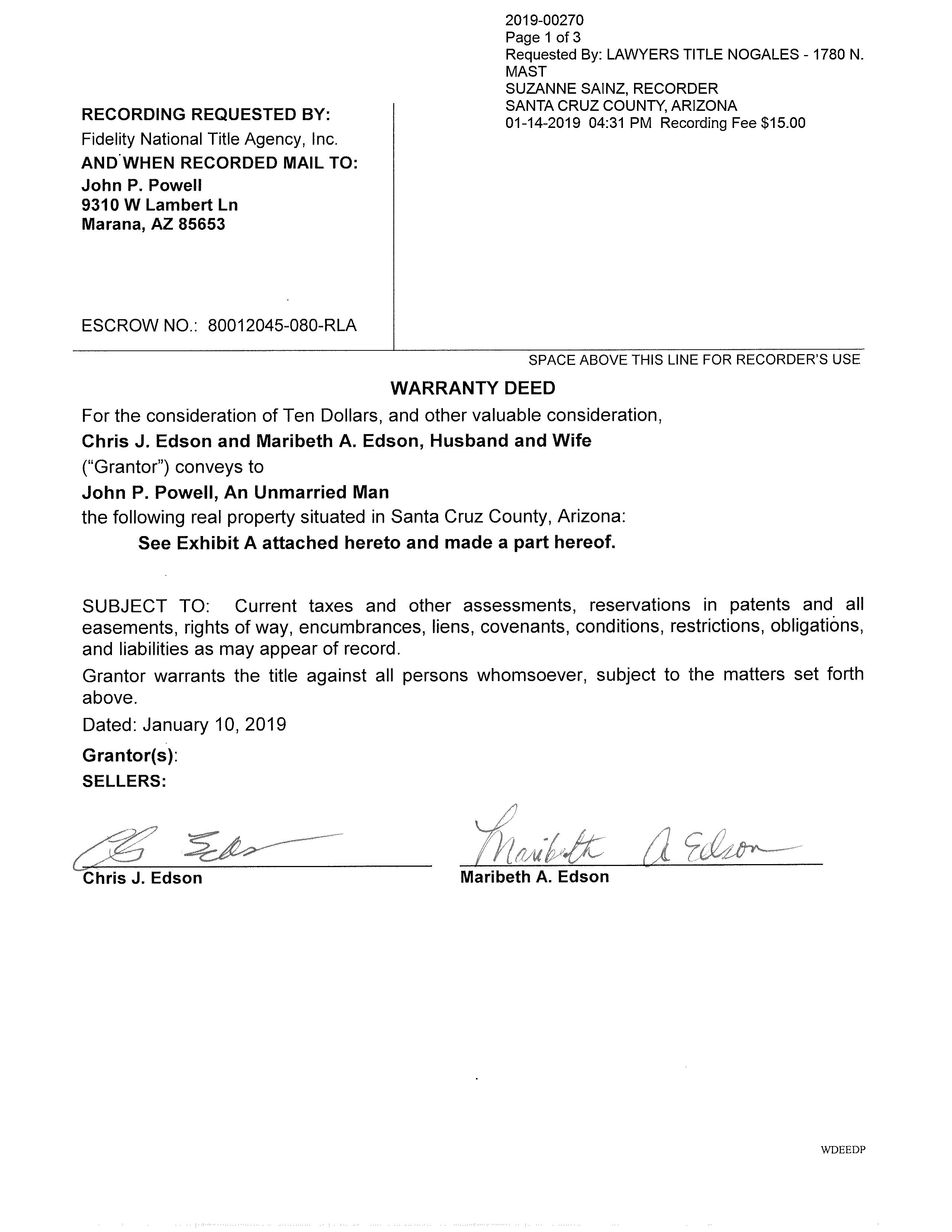 Owner Name: Powell John P / APN / Alternate APN: 114-02-016 / Deed Type: Warranty Deed