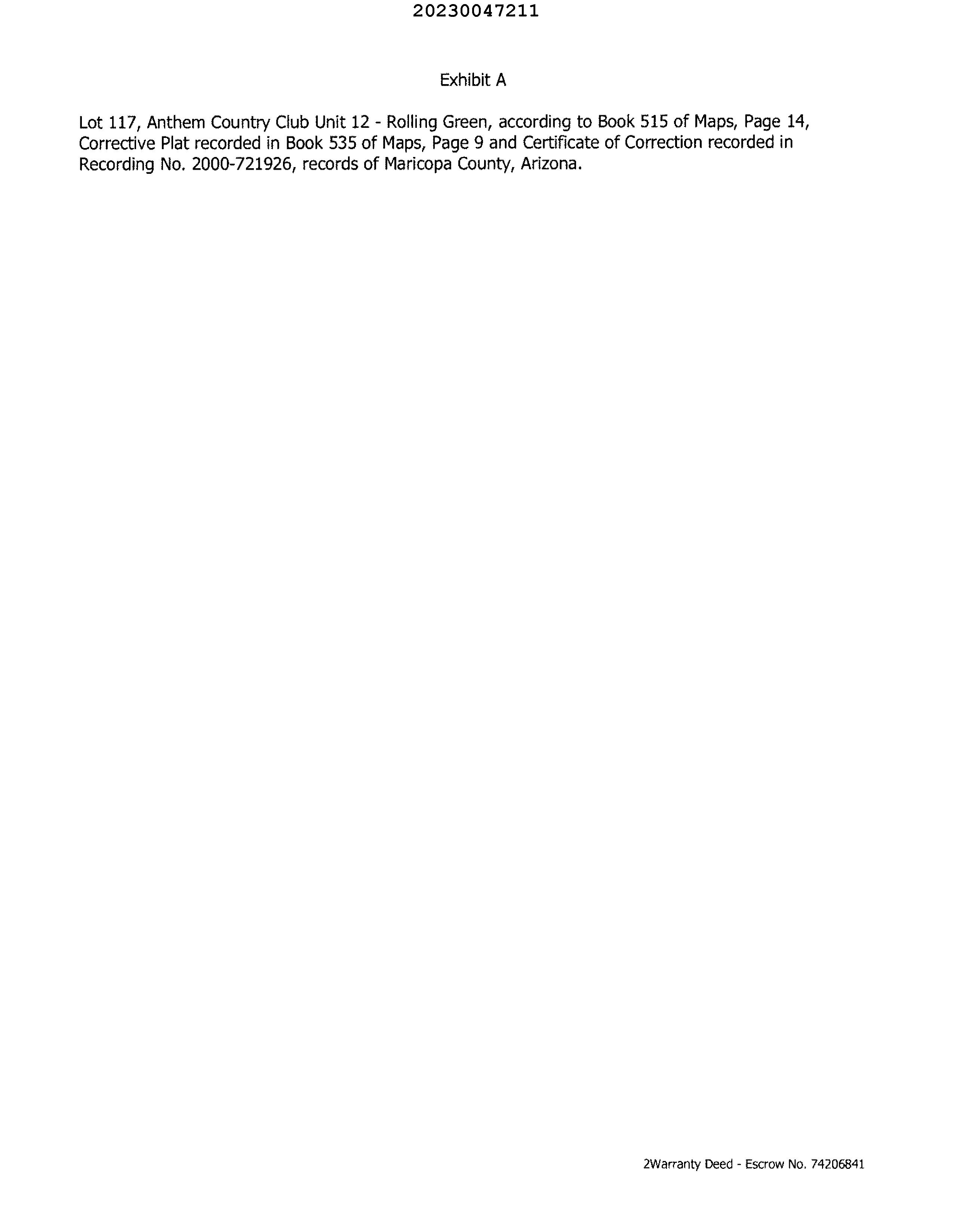 LegalDescriptionDetails LotNumber:117Unit:12SubdivisionName:ANTHEMCOUNTRYCLUBUNIT12ROLLINGGREESec/Twn/Rng/Mer:SEC13TWN6NRNG2EBrief Description:ANTHEMCOUNTRYCLUBUNIT12ROLLINGGREENAMDMCR535-09Recorder'sMapRef:MB53509