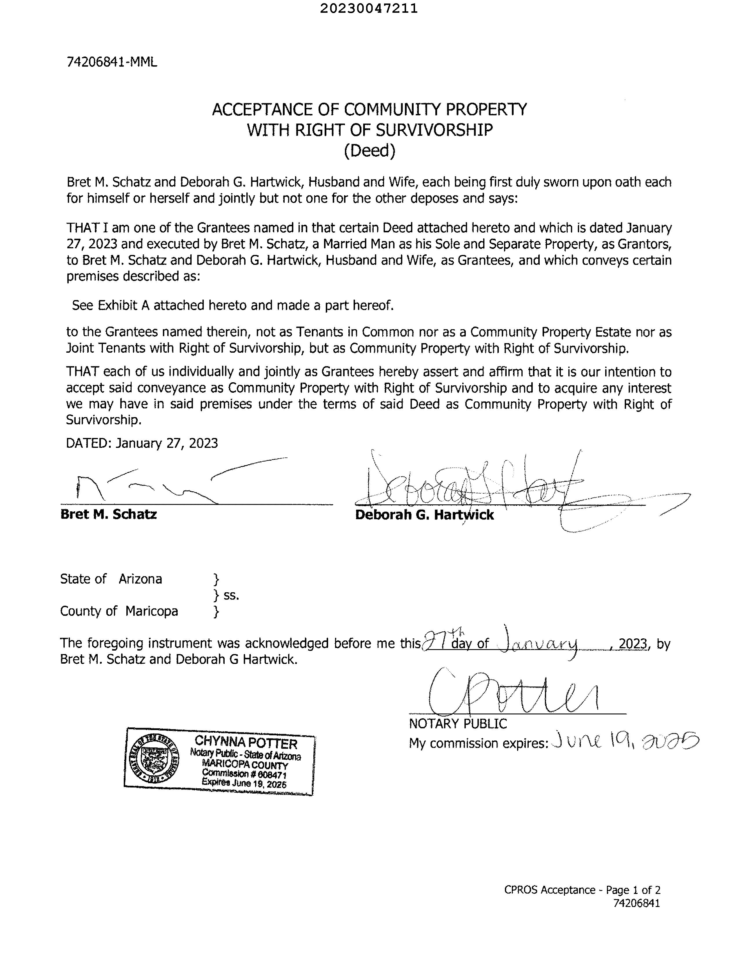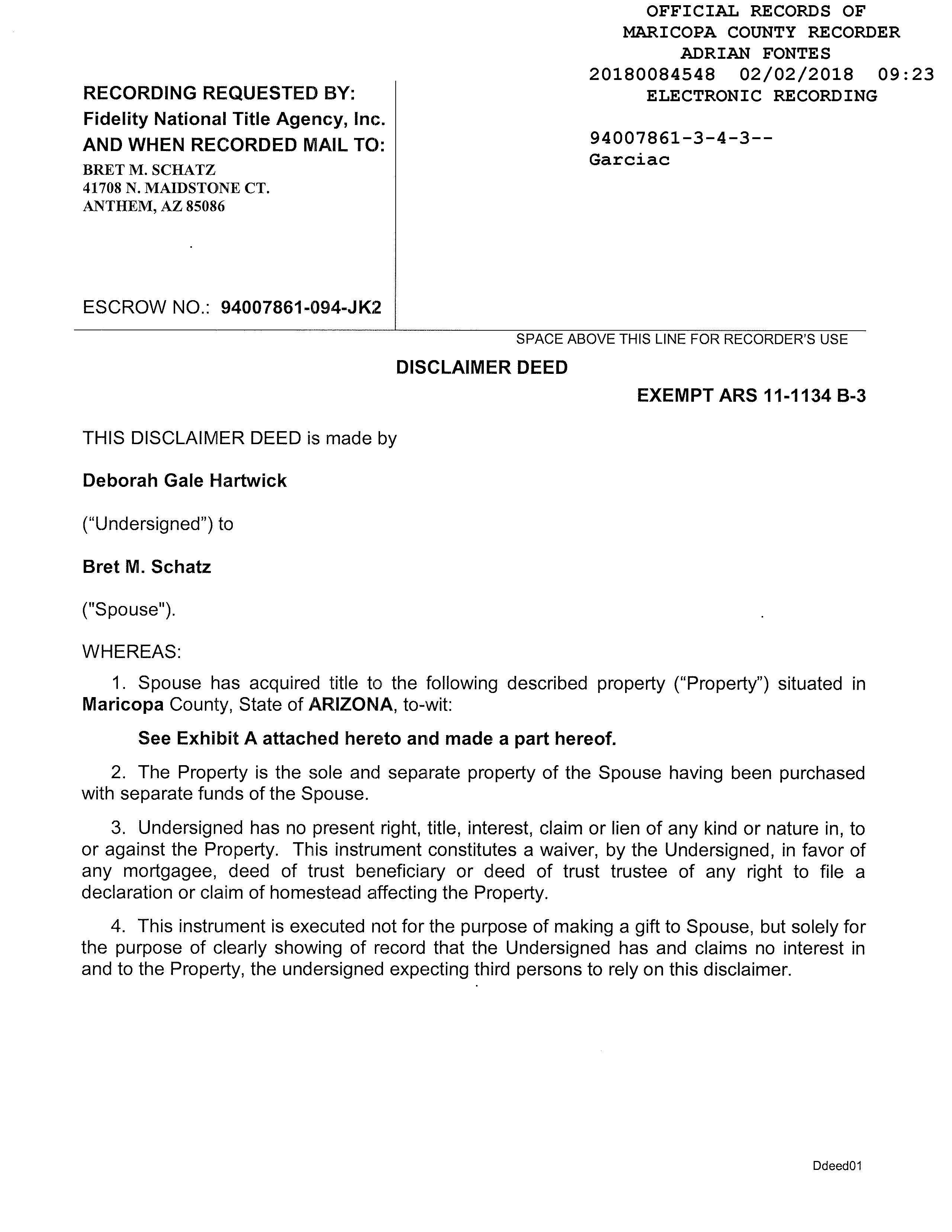 PrimaryOwnerName(s) HARTWICK-SCHATZTRUST Vesting Trust