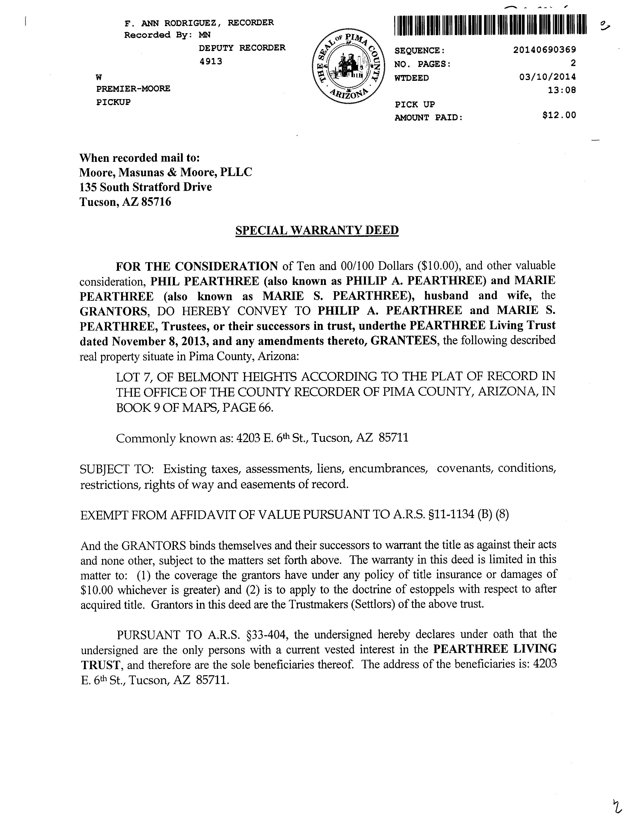 Owner Name : Pearthree Philip A / Pearthree Marie S