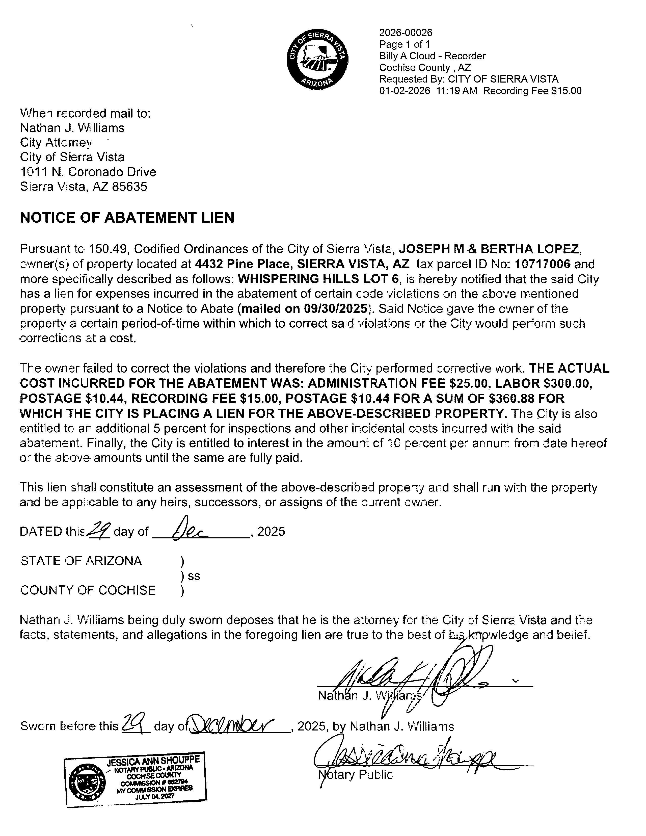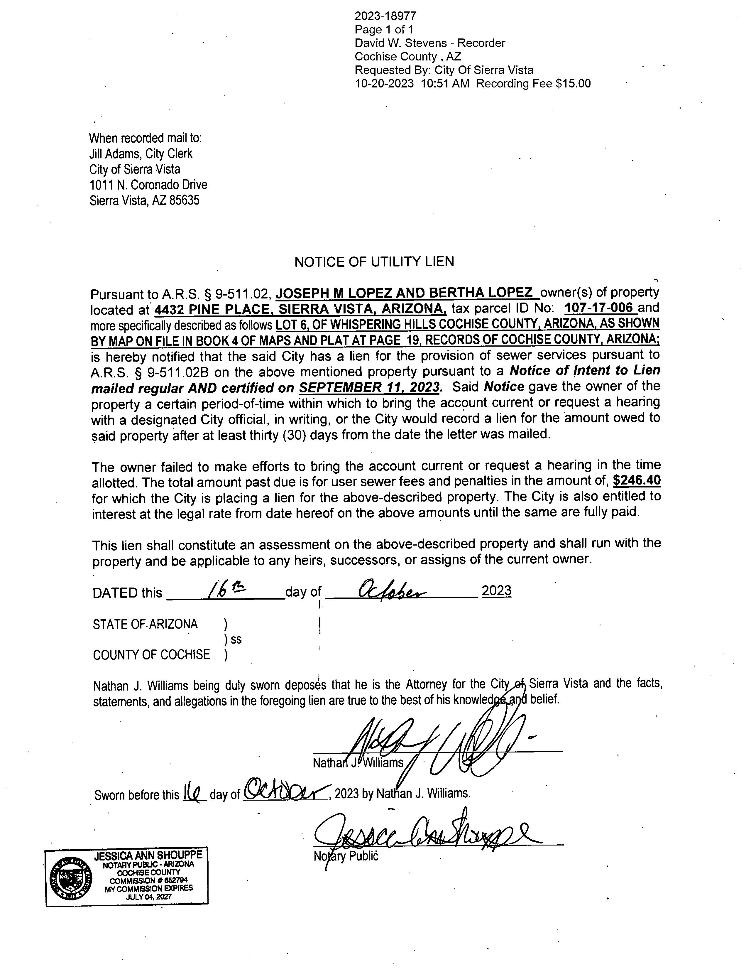 Notary Public 19 87, by JOSEPH M, LOPEZ AND BERTHA, LOPEZ