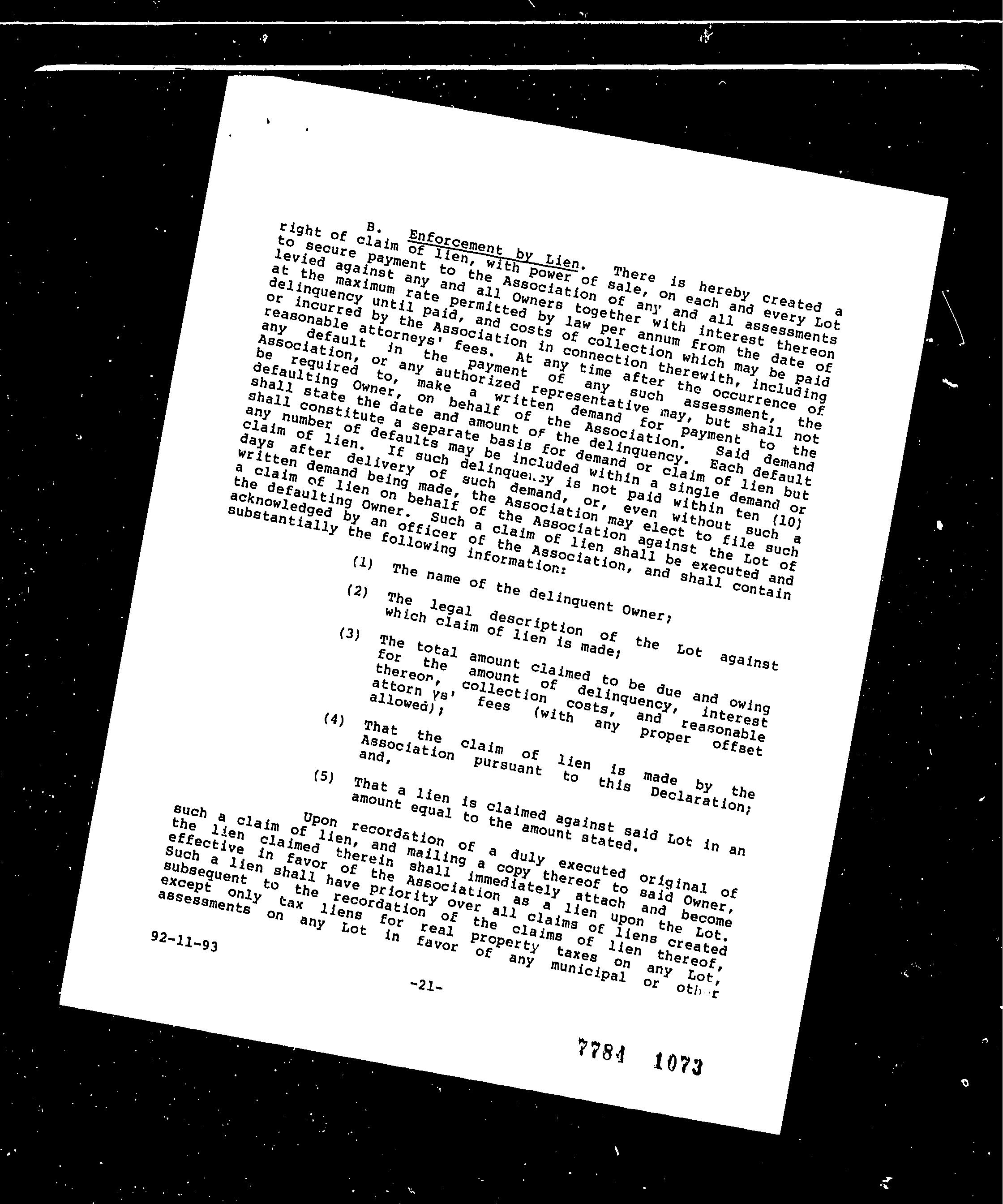 11 Unrecorded lien by a homeowners association