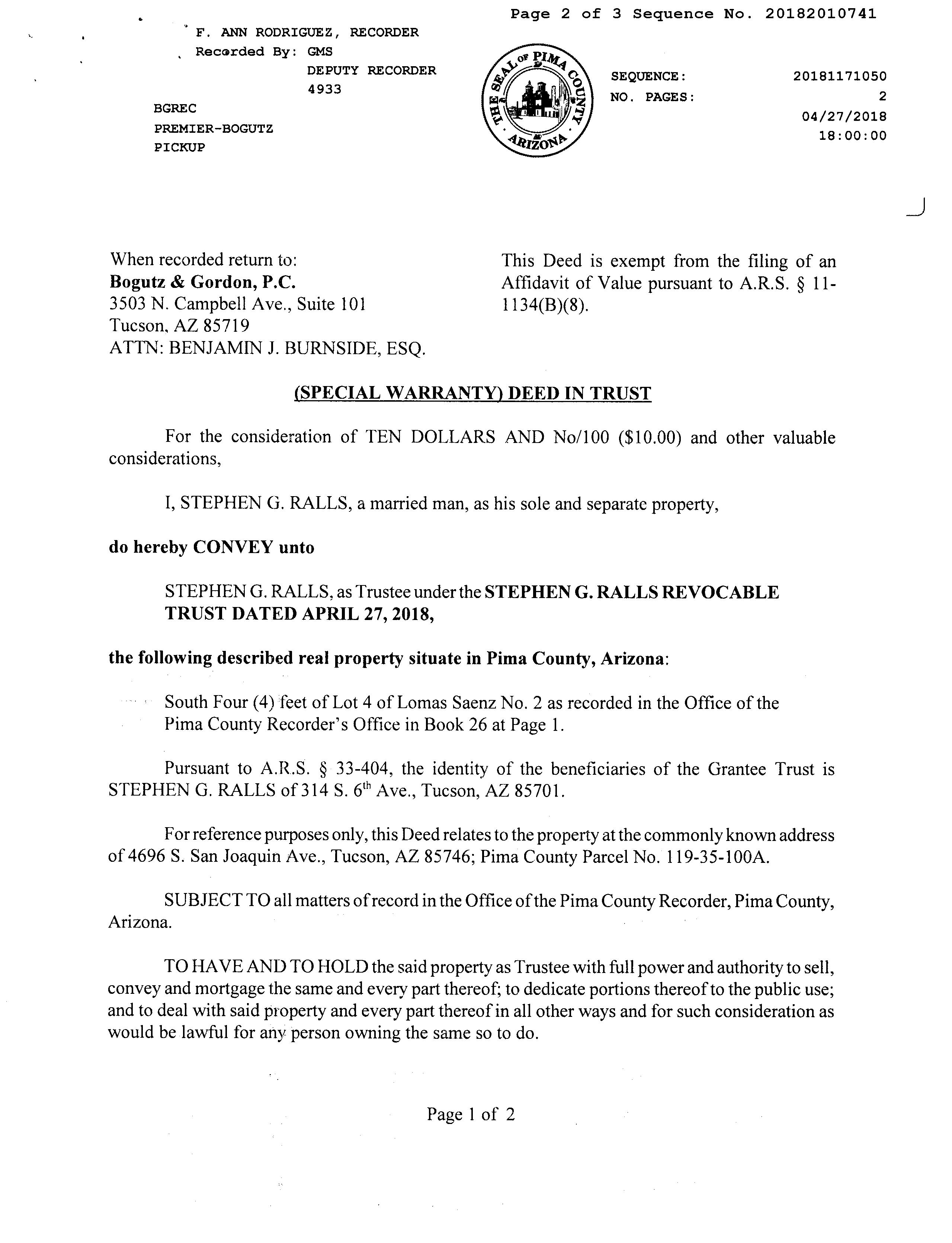 Mailing Address : 4696 S San Joaquin Ave, Tucson AZ 85746-4238 C009