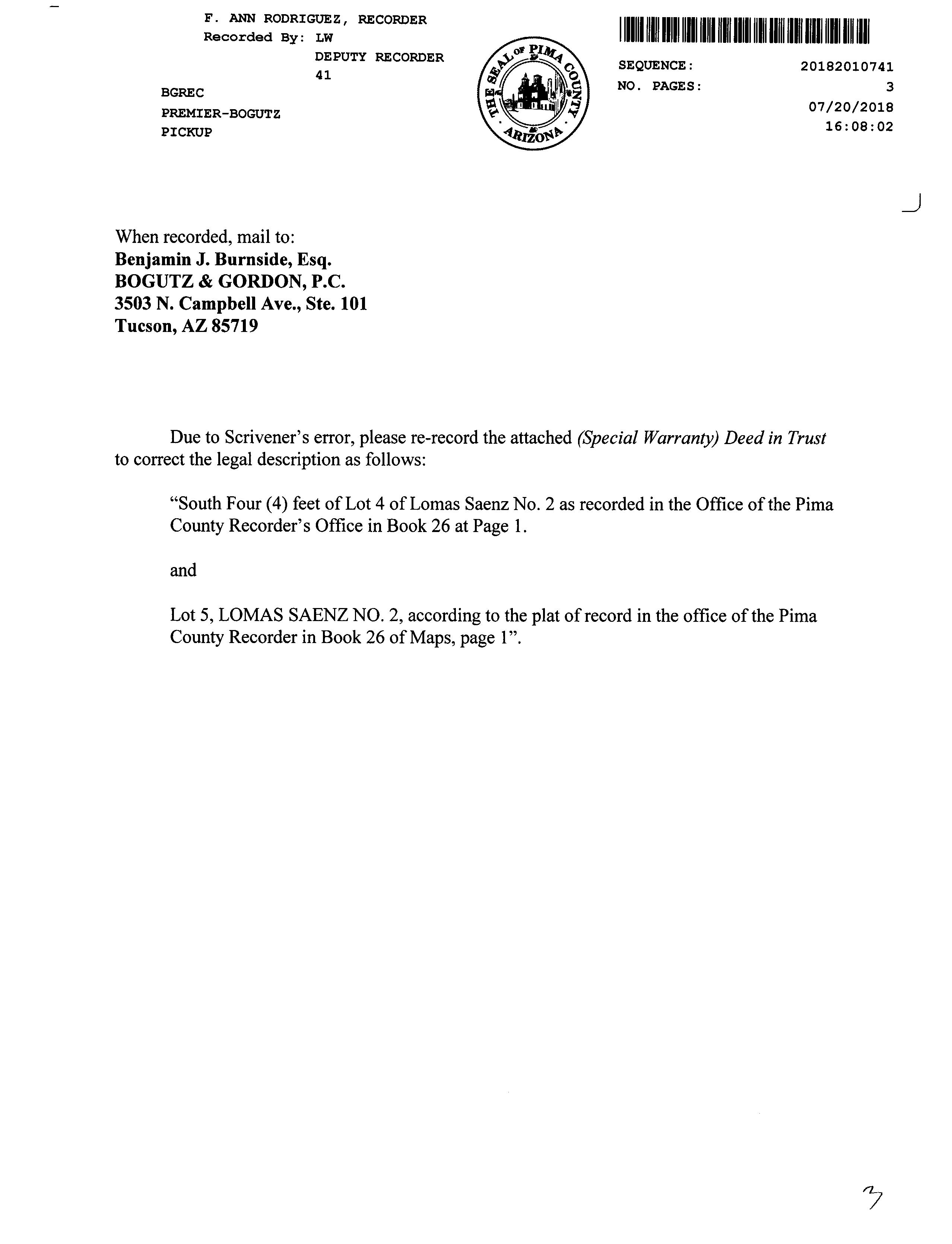 Legal Description : Lomas Saenz No 2 Lot 5 & S4' Of Lot 4