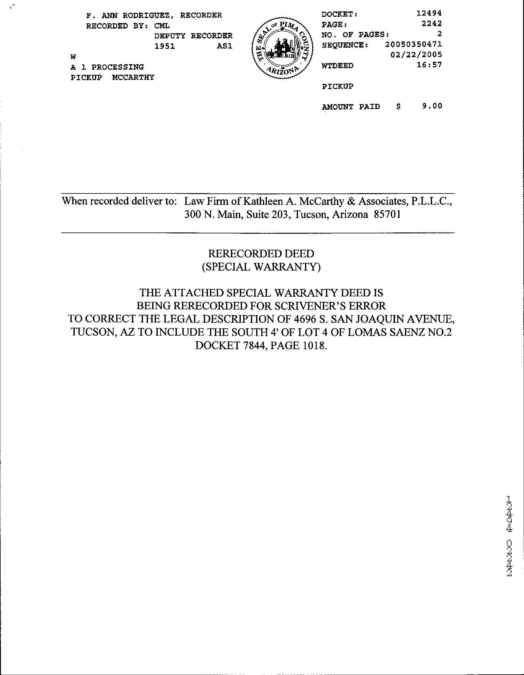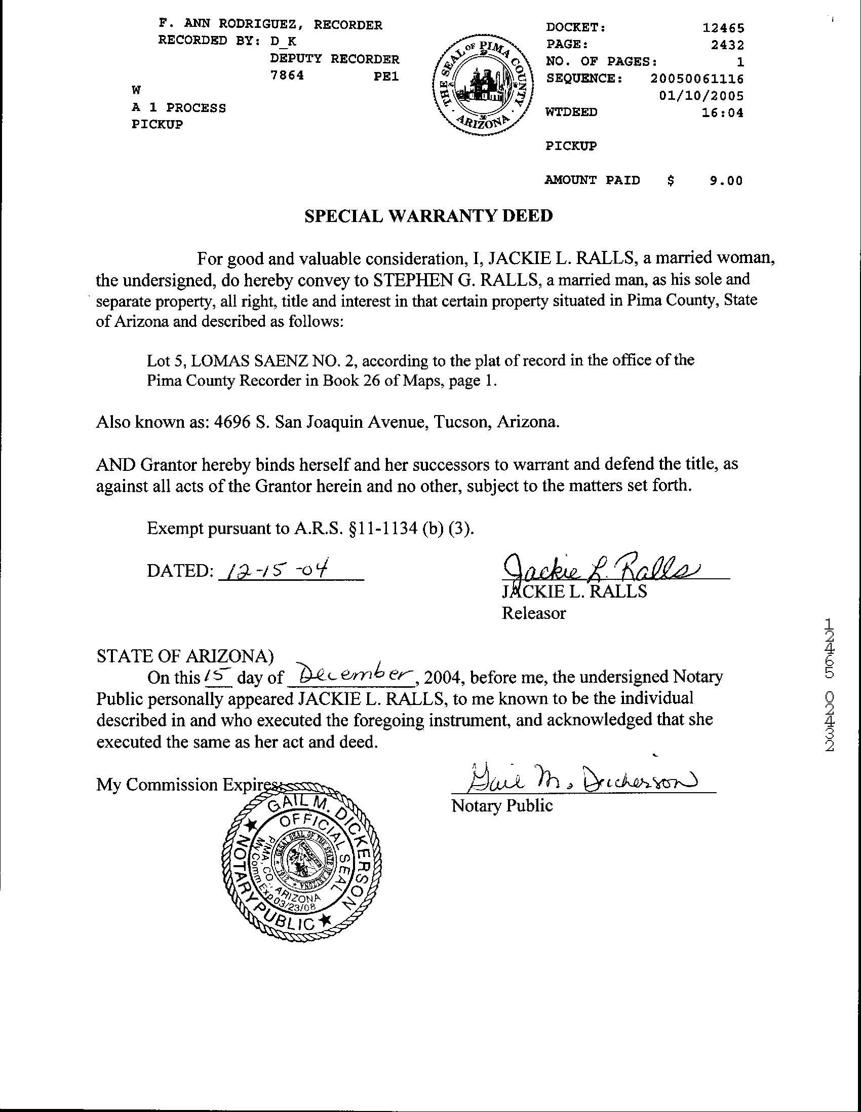 MAIL: 4696 S SAN JOAQUIN AVE TUCSON AZ 85746-4238