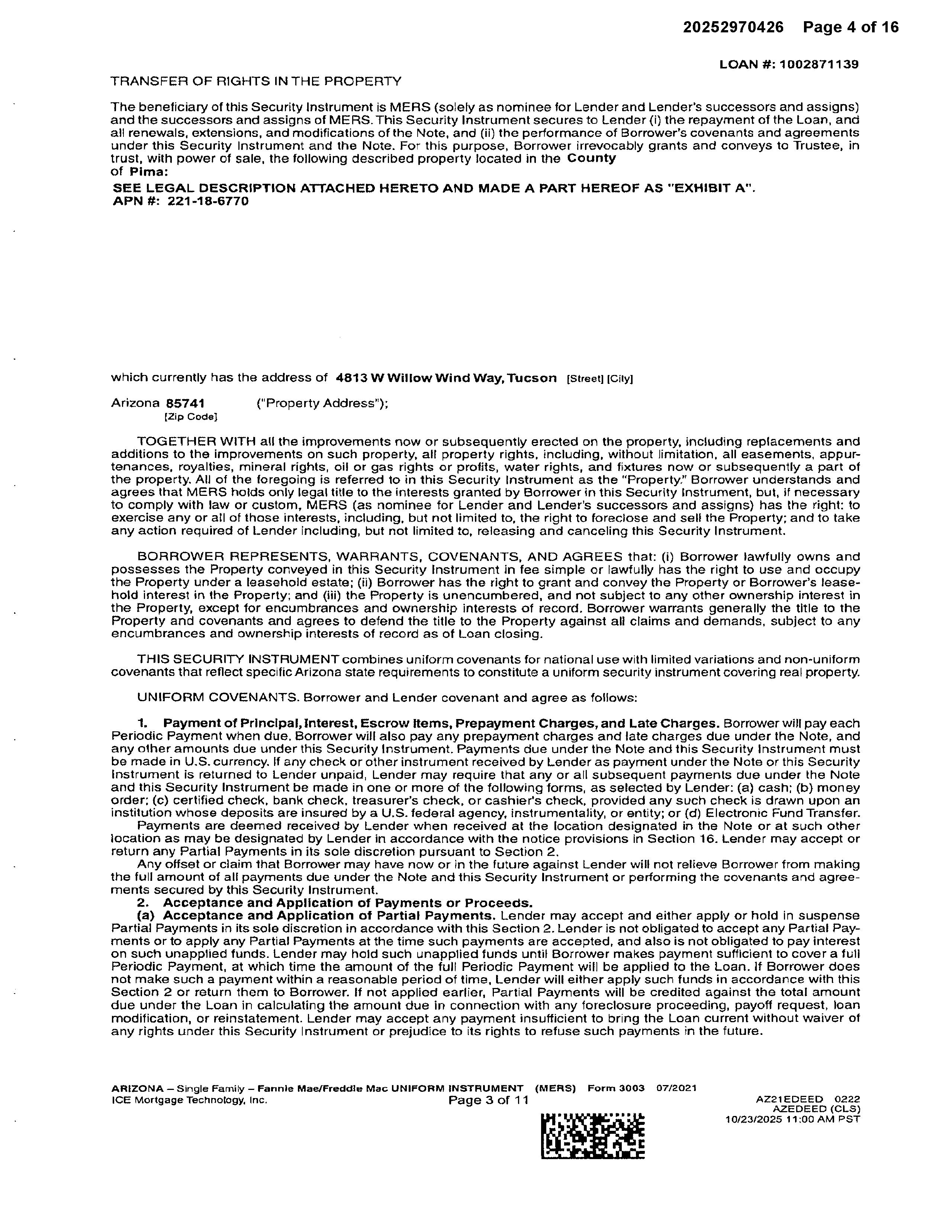 PropertyAddress 4813WWILLOWWINDWAY OrderID:R210467296 City,State&Zip TUCSON,AZ85741-3958