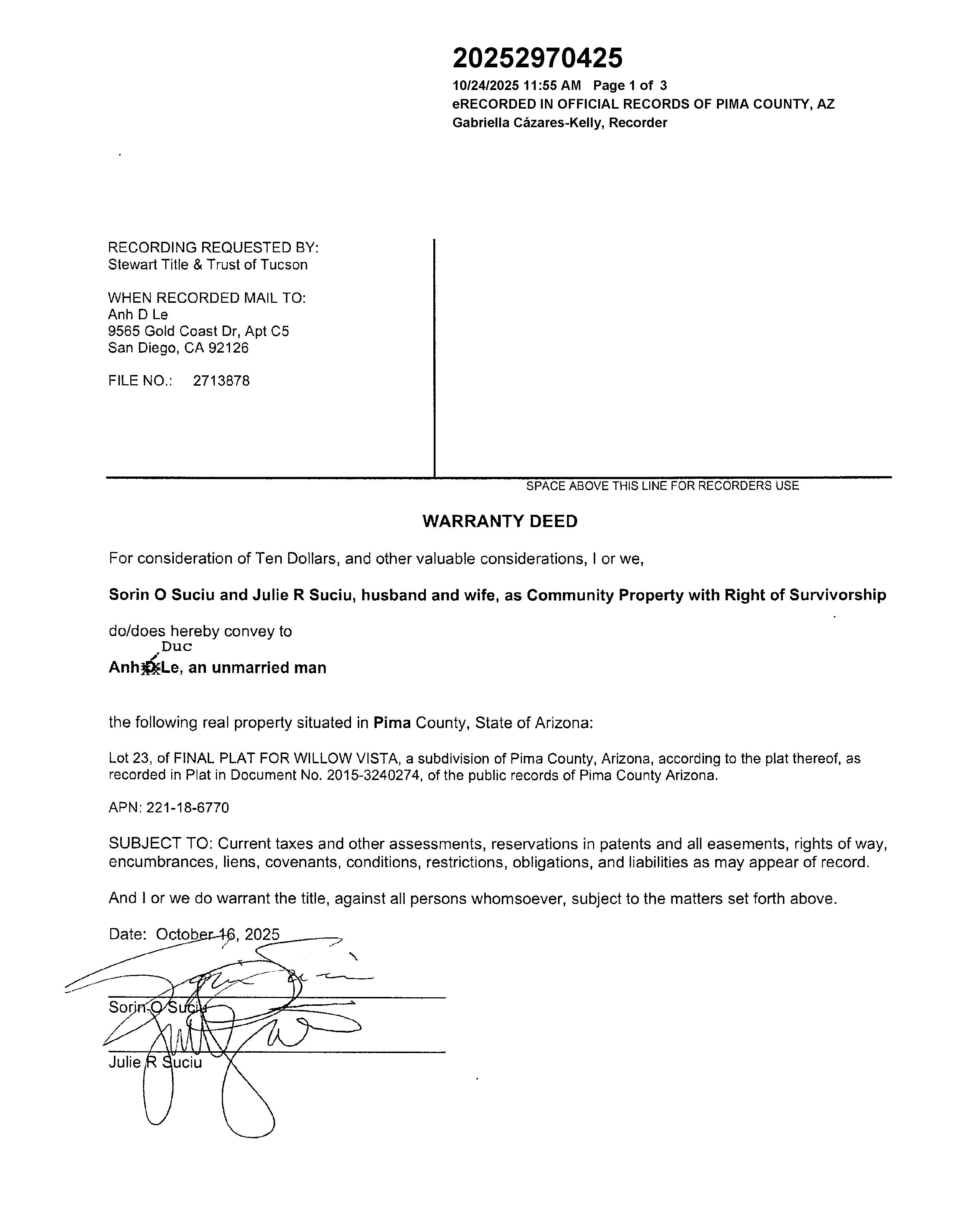 4813WWILLOWWINDWAY,TUCSON,AZ85741-3958 ParcelNumber 221-18-6770