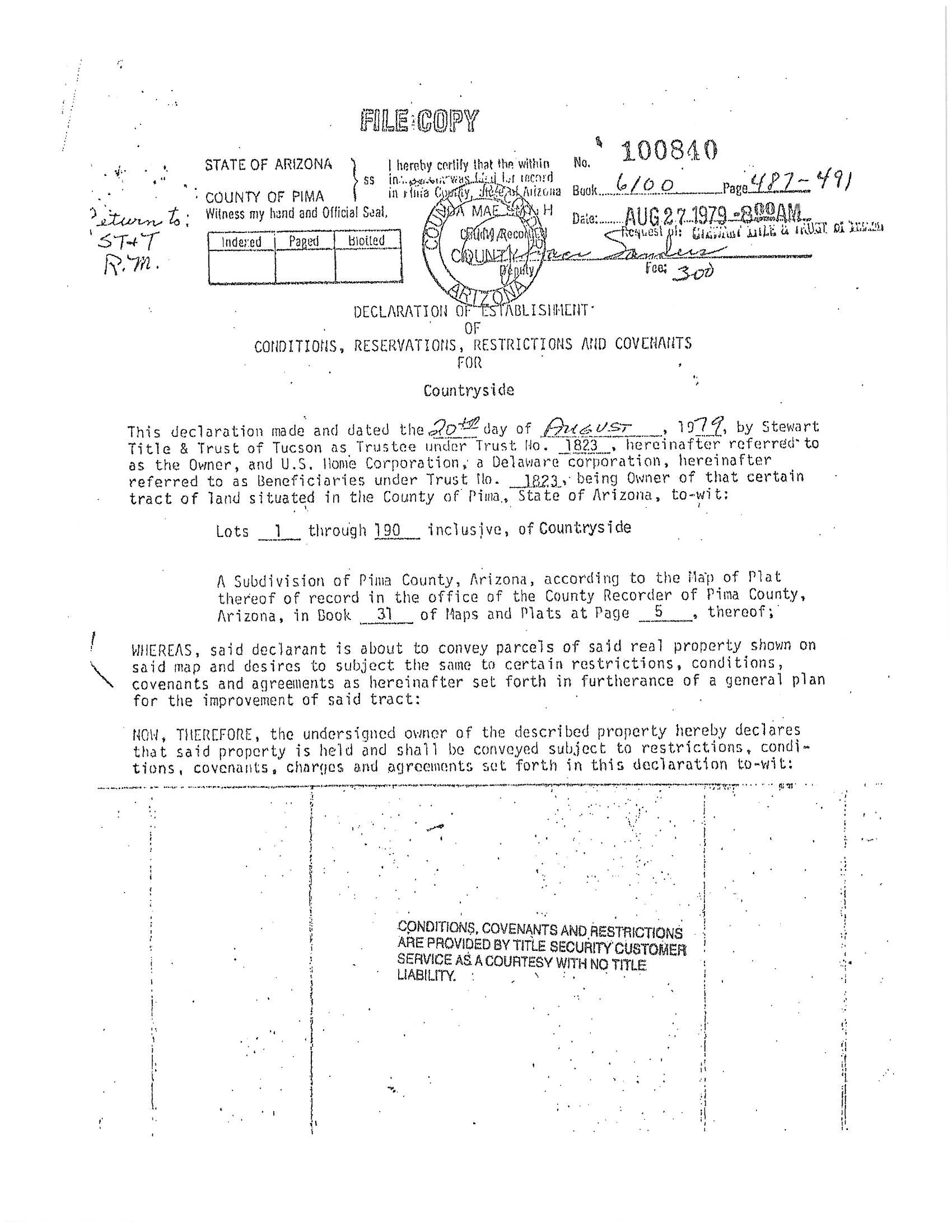 Mailing Address : 4871 W Condor Dr, Tucson AZ 85742-9633 R029