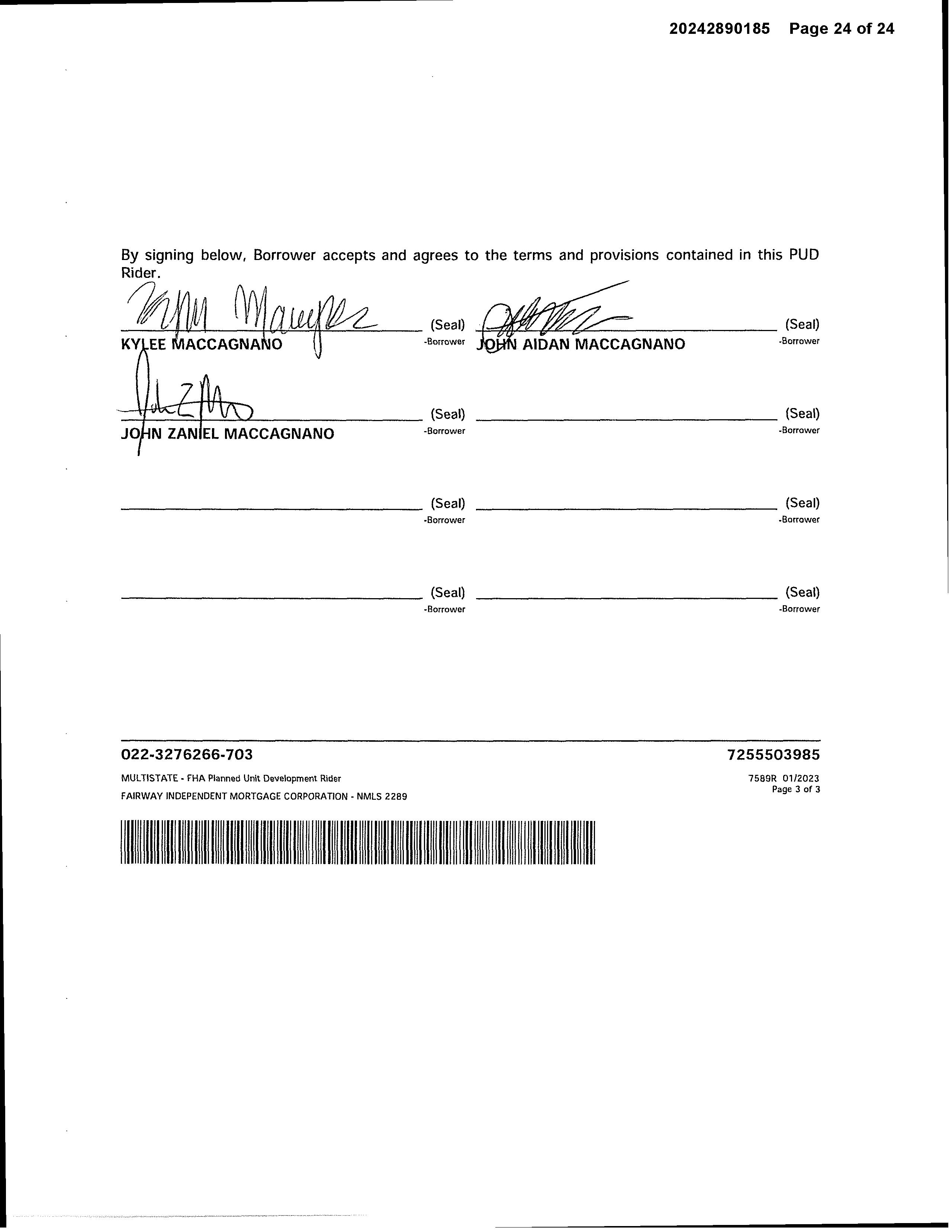OWNER: MACCAGNANO JOHN & KYLEE AFFIDAVIT 2024 2890183 10/15/2024