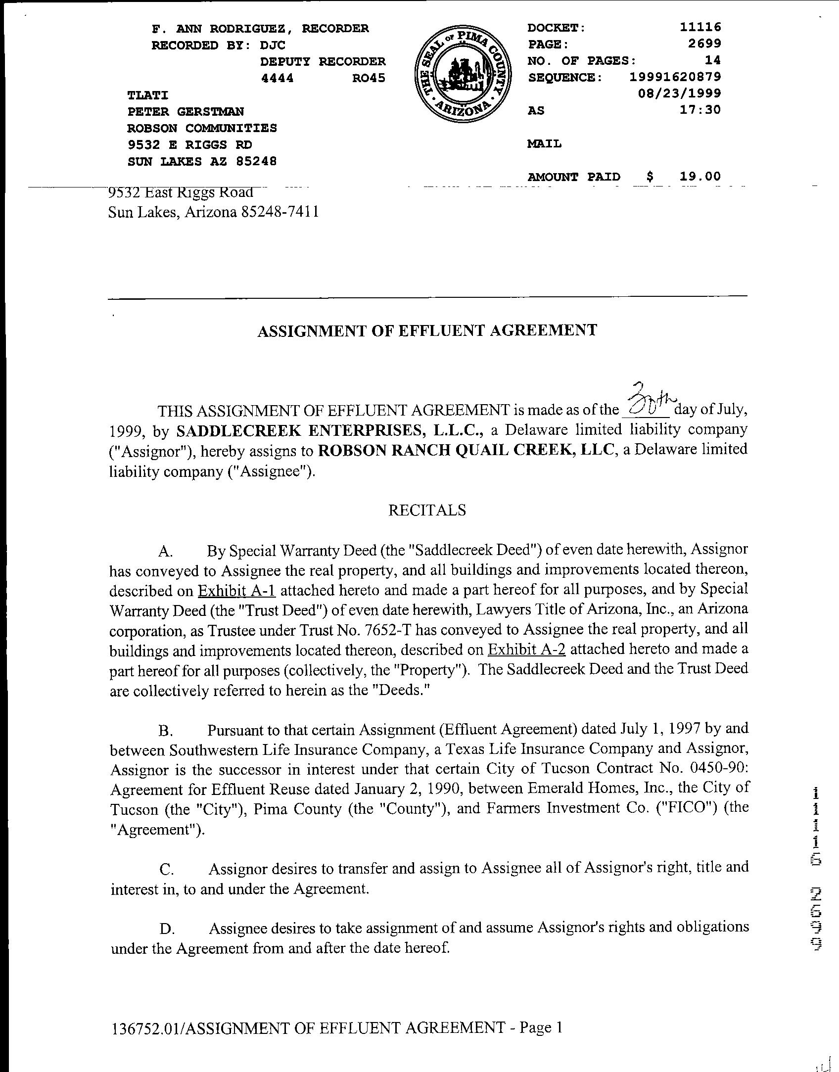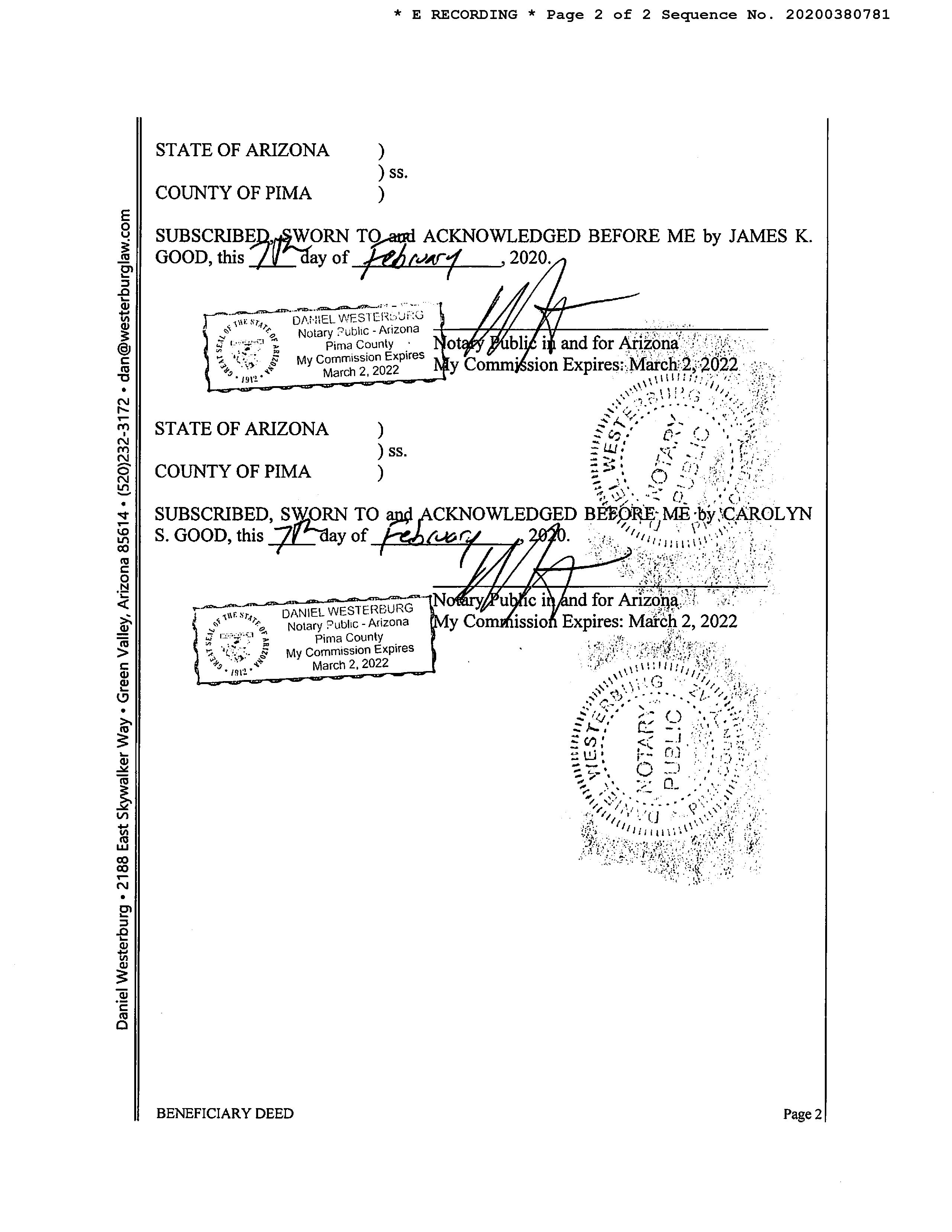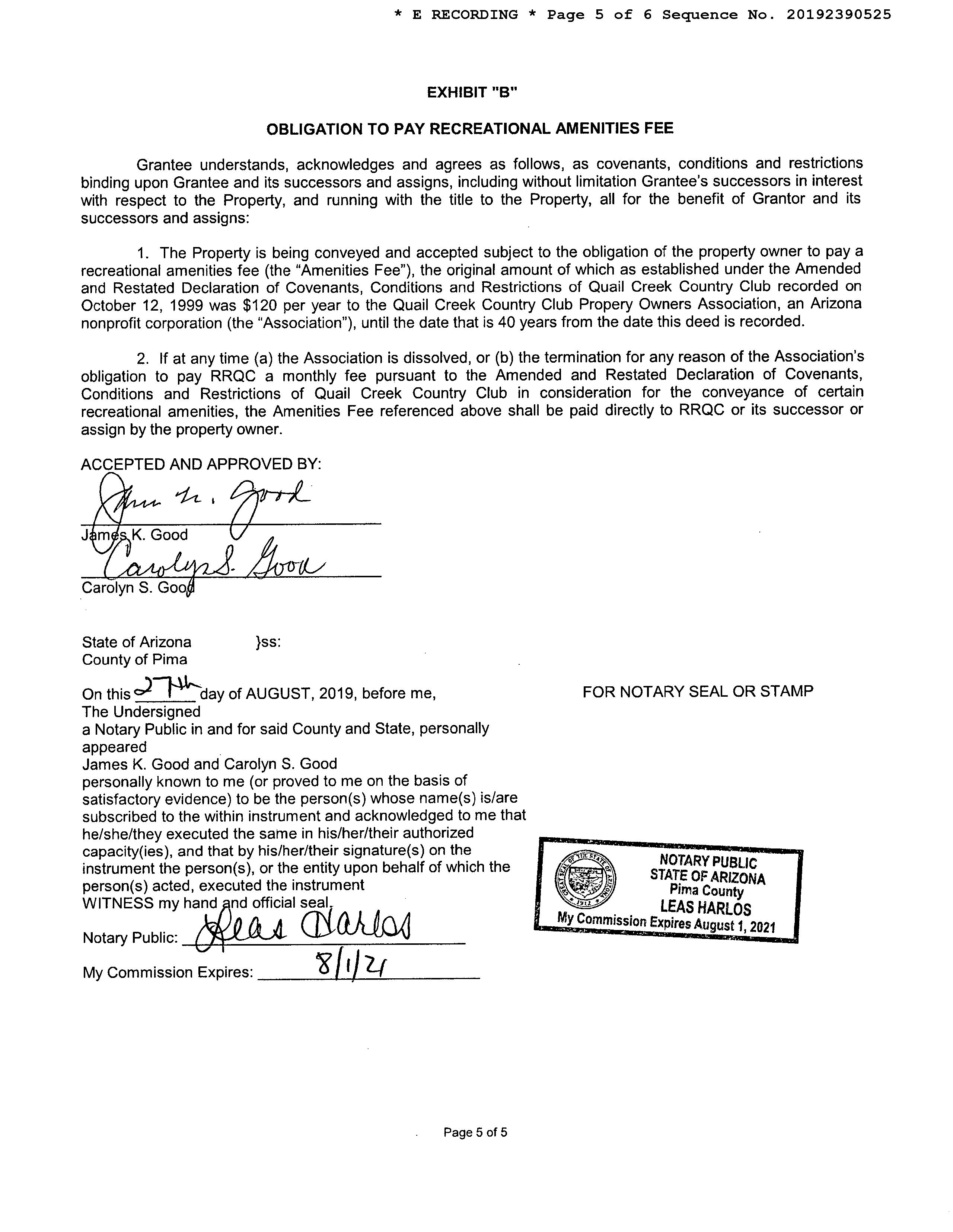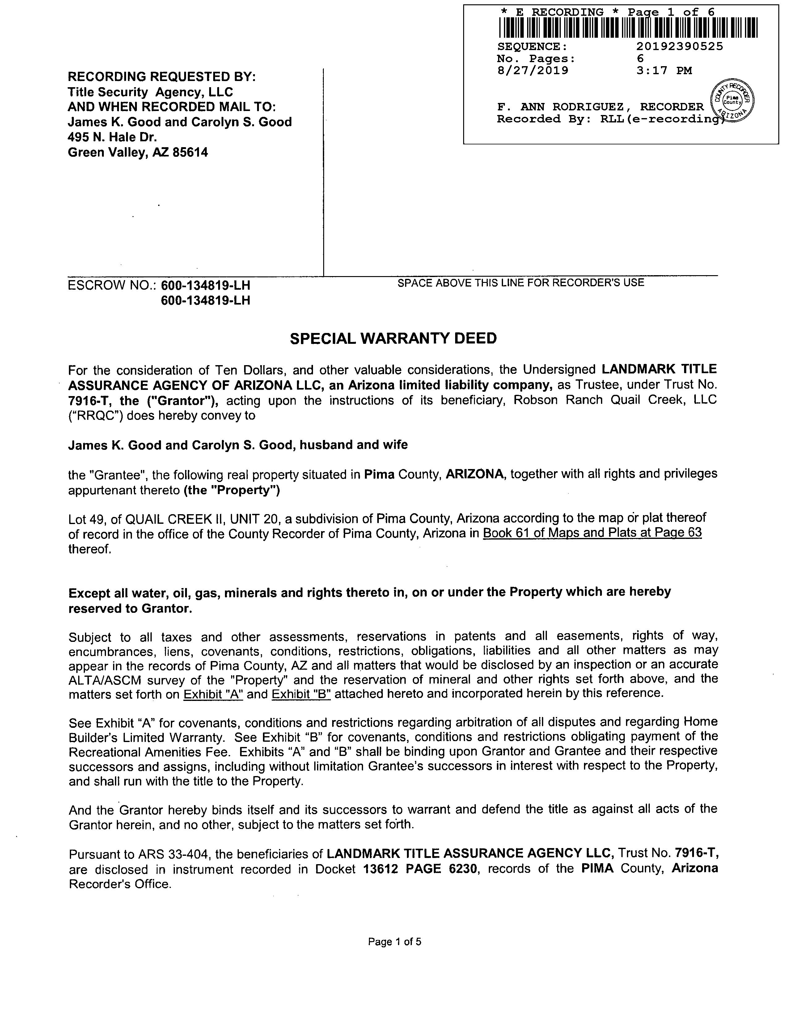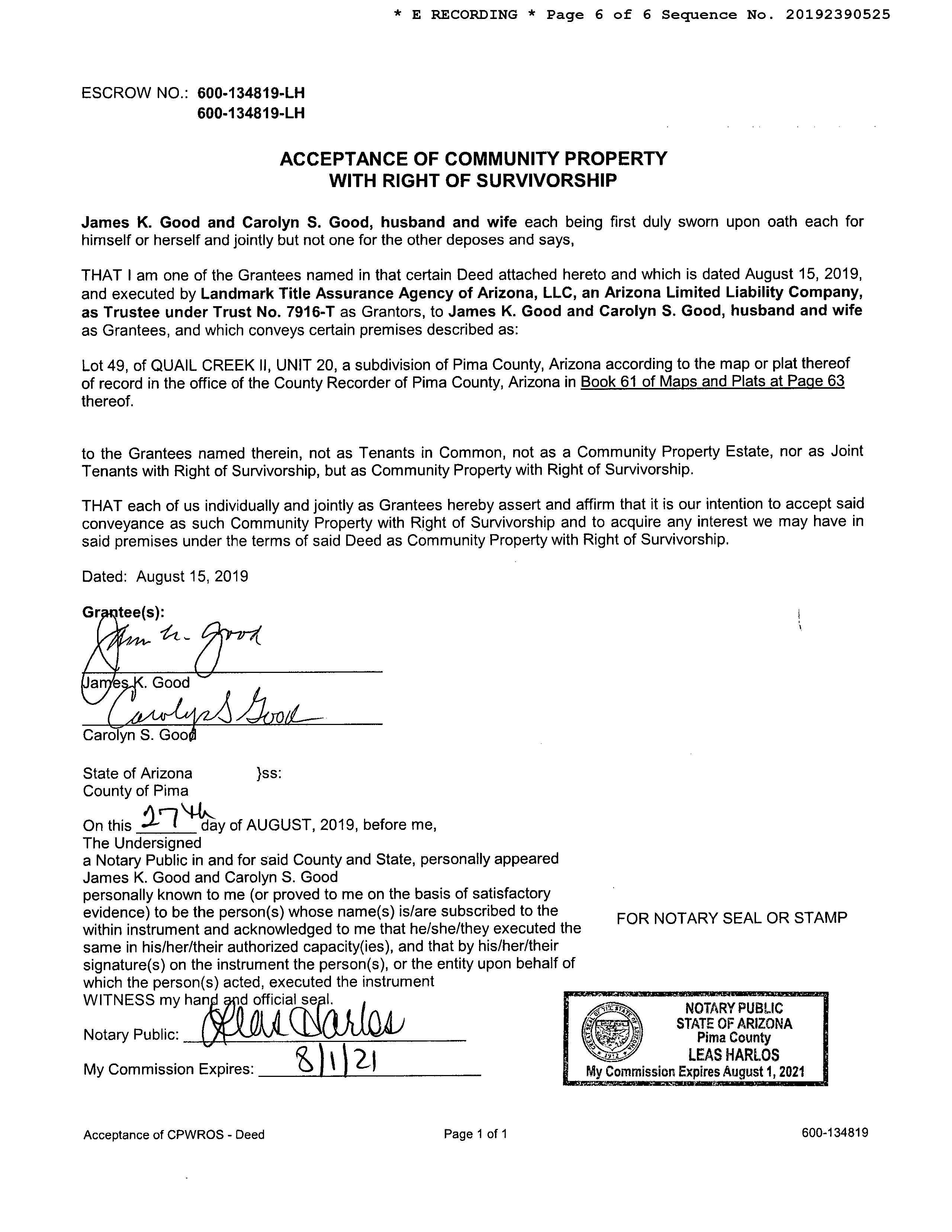 OWNER: GOOD JAMES K & CAROLYN S AFFIDAVIT 2019 2390525 08/27/2019