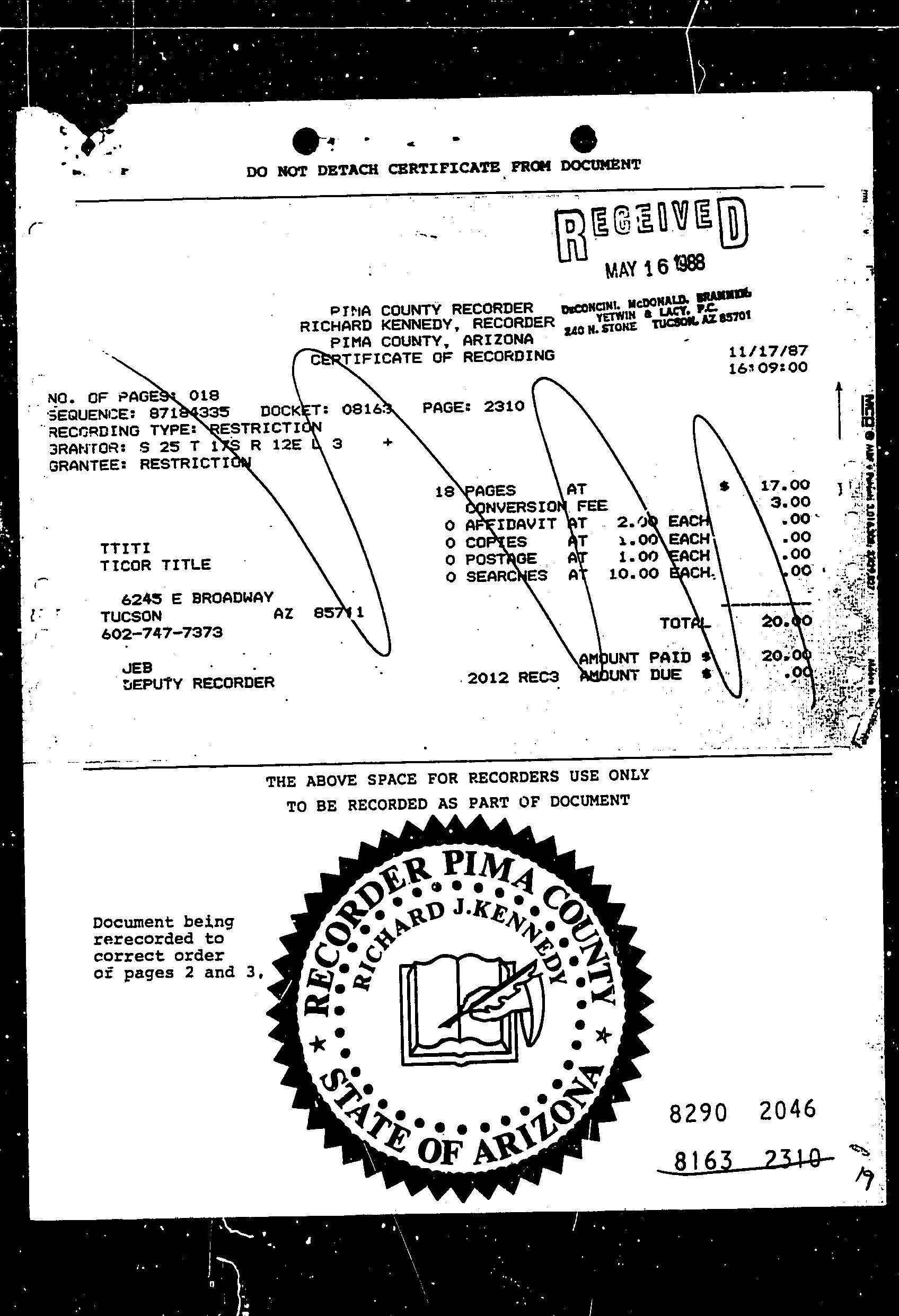 This information is furnished without fee and without benefit of a complete title search. No liability is assumed by First American Title. If it is desired that liability be assumed, you may apply for a policy of title insurance with First American Title Insurance Company.
