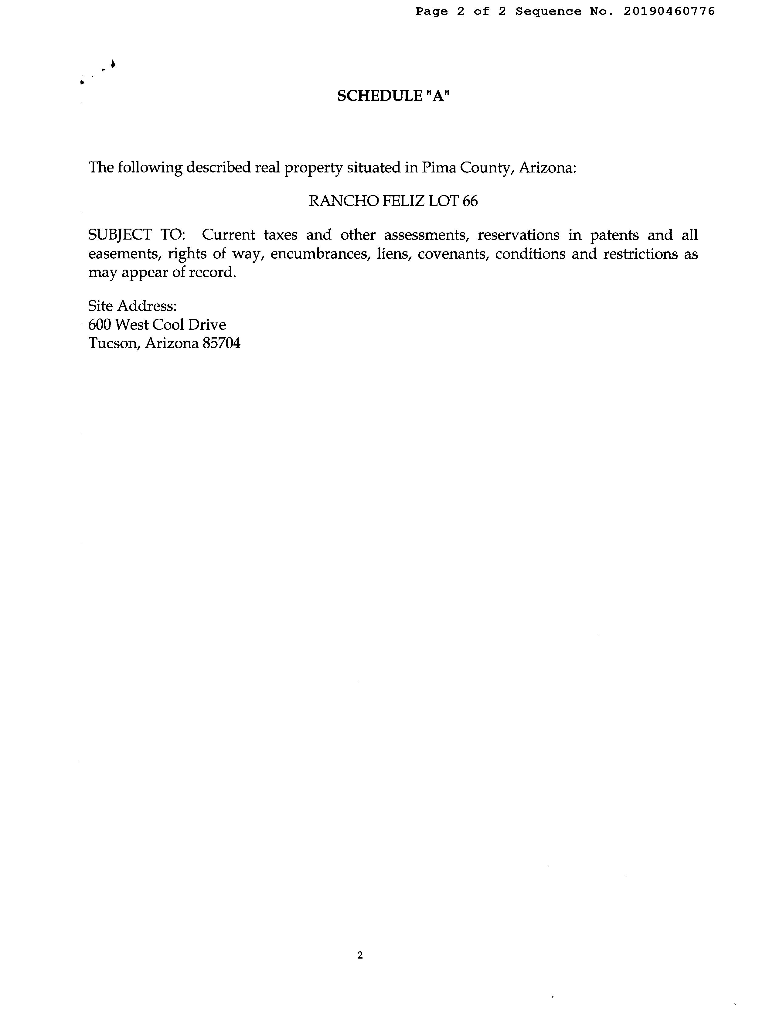 Mailing Address : 600 W Cool Dr, Tucson AZ 85704-4612 C014