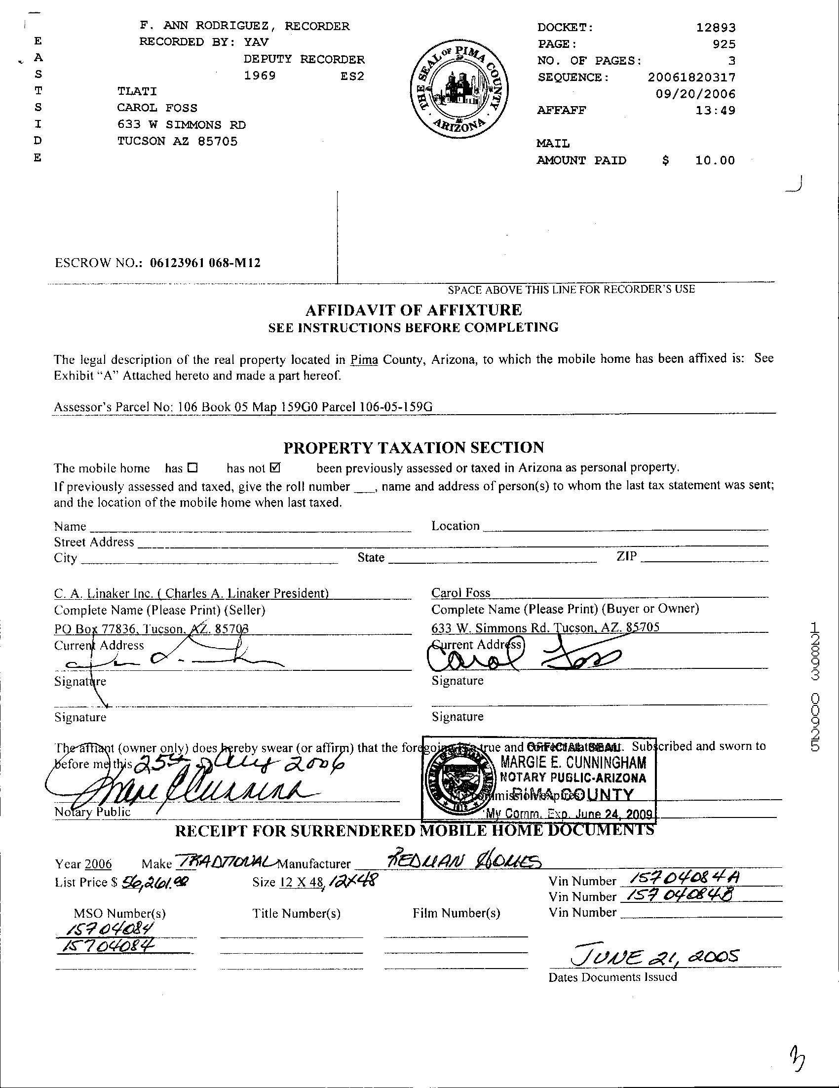 Prior Rec/Sale Date : 08/28/2006 / 08/16/2006