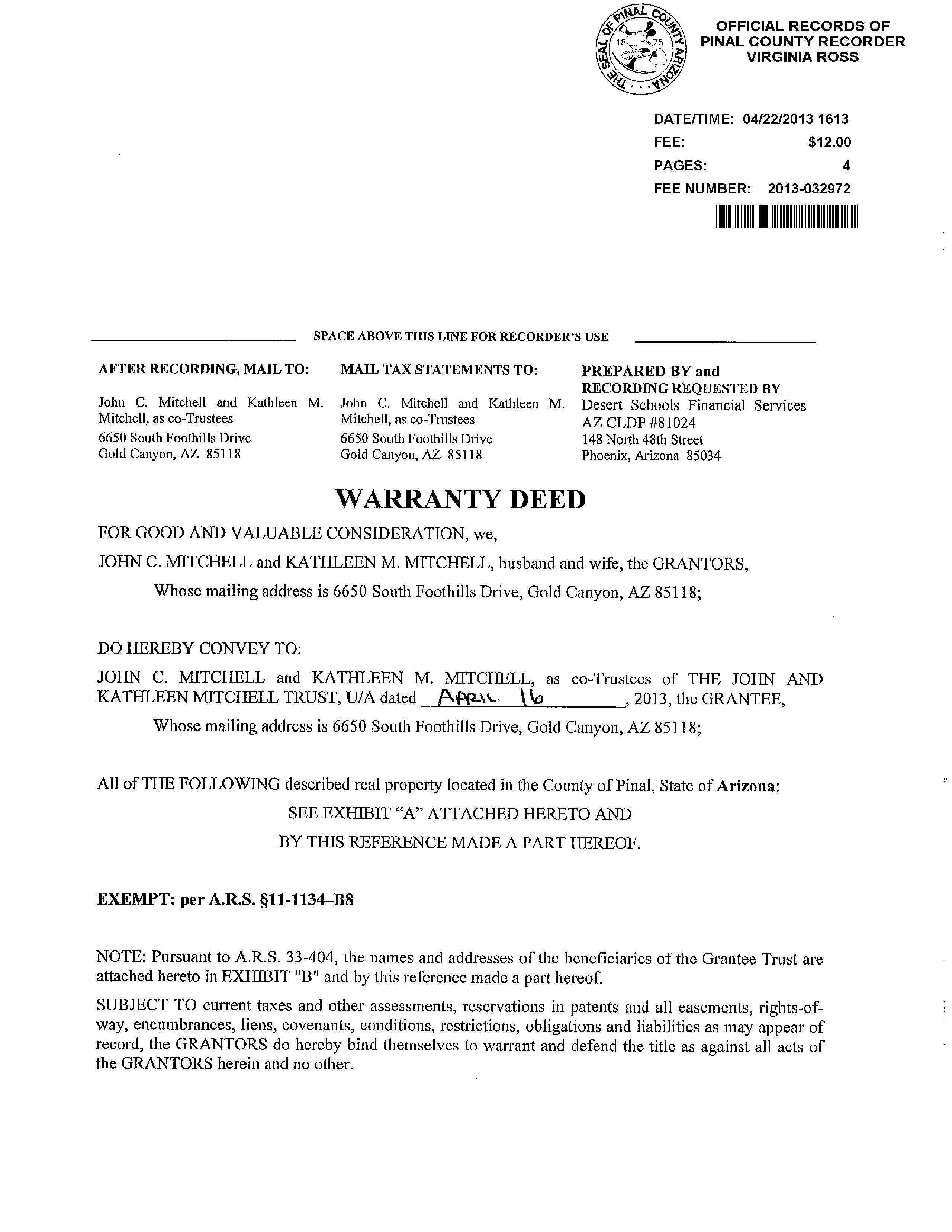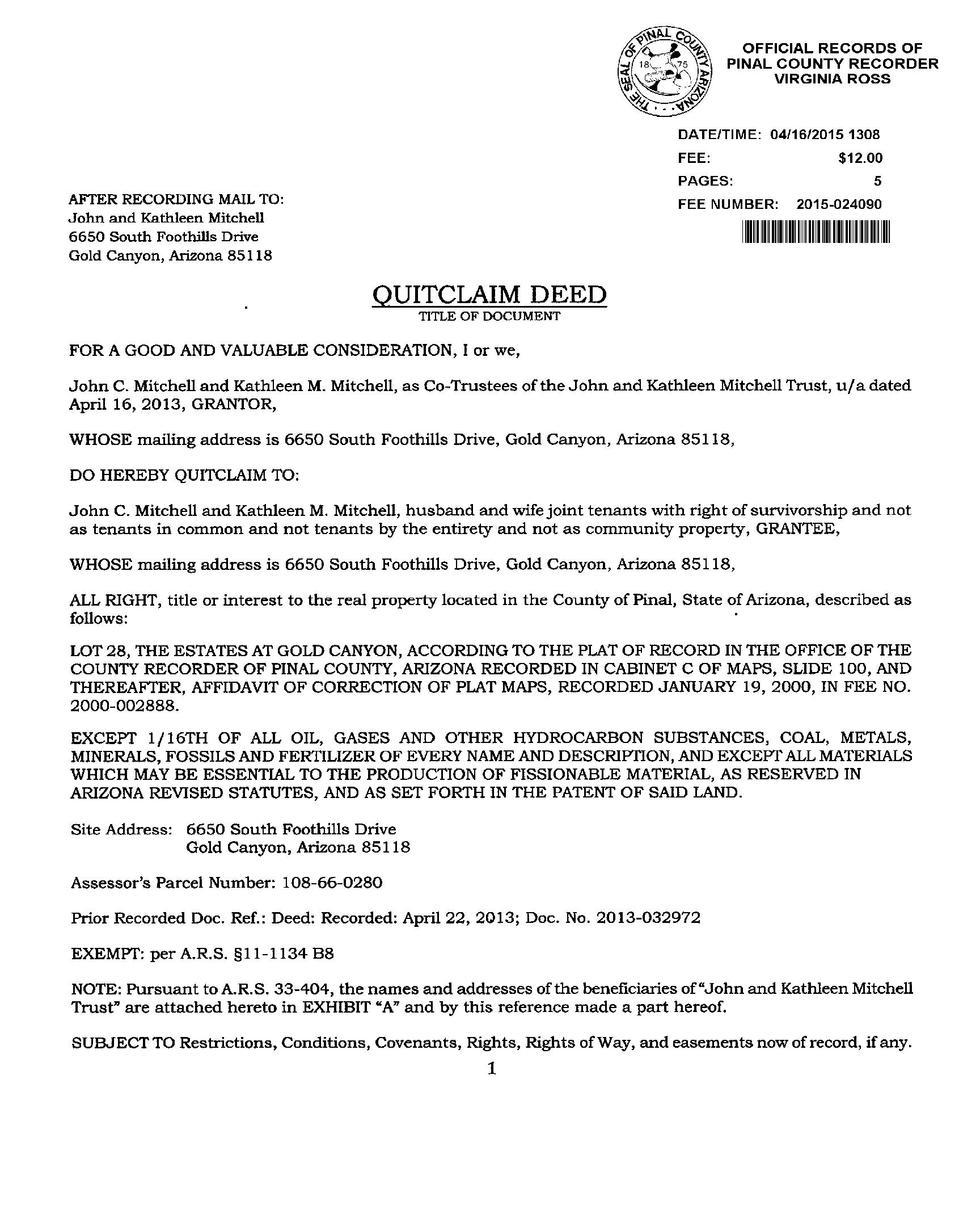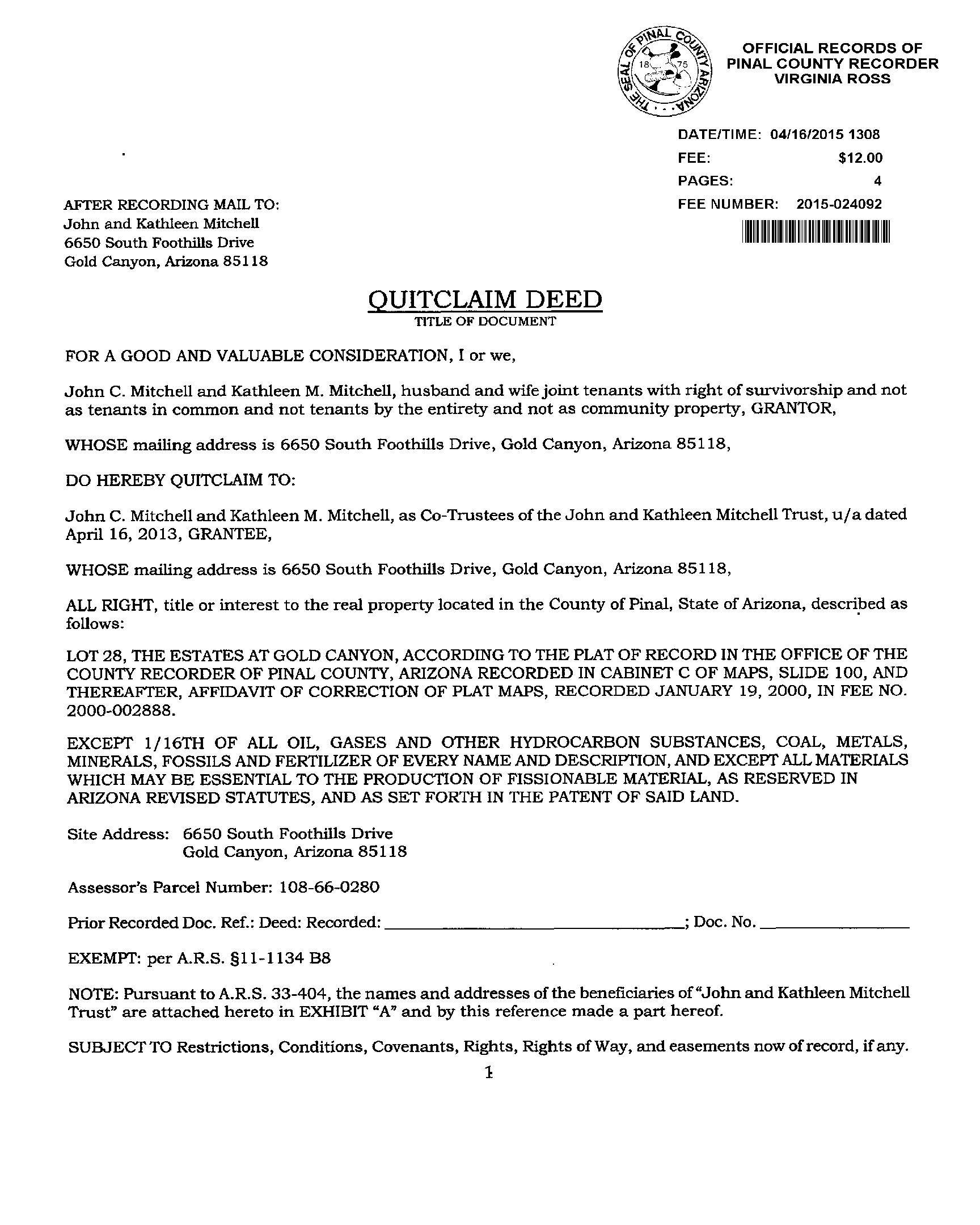 SITUS: 6650 S FOOTHILLS DR GOLD CANYON