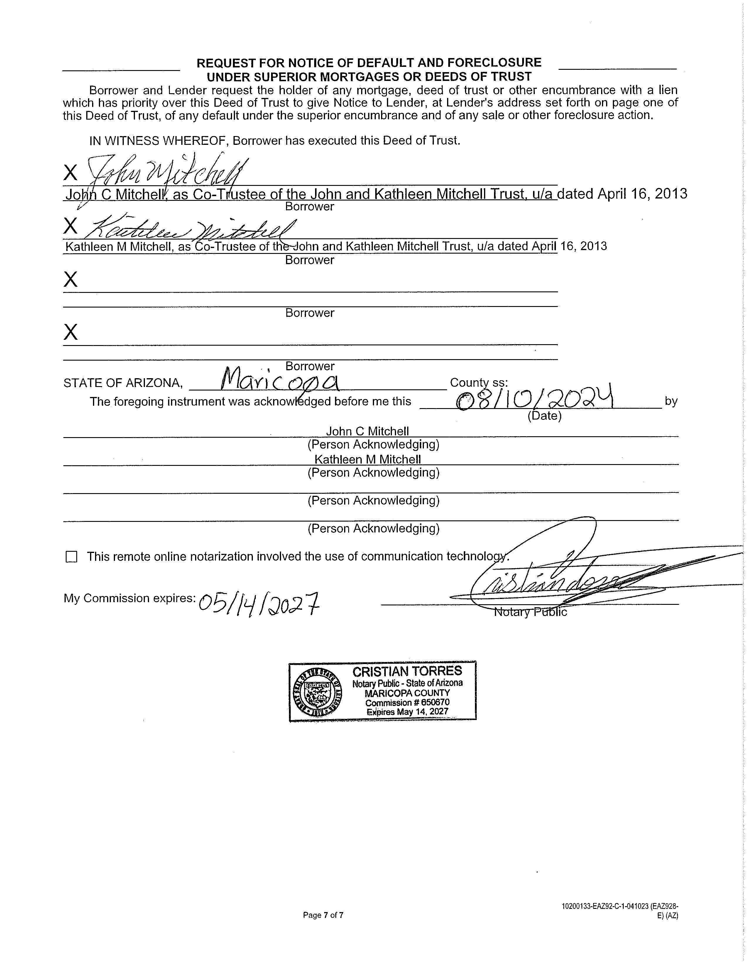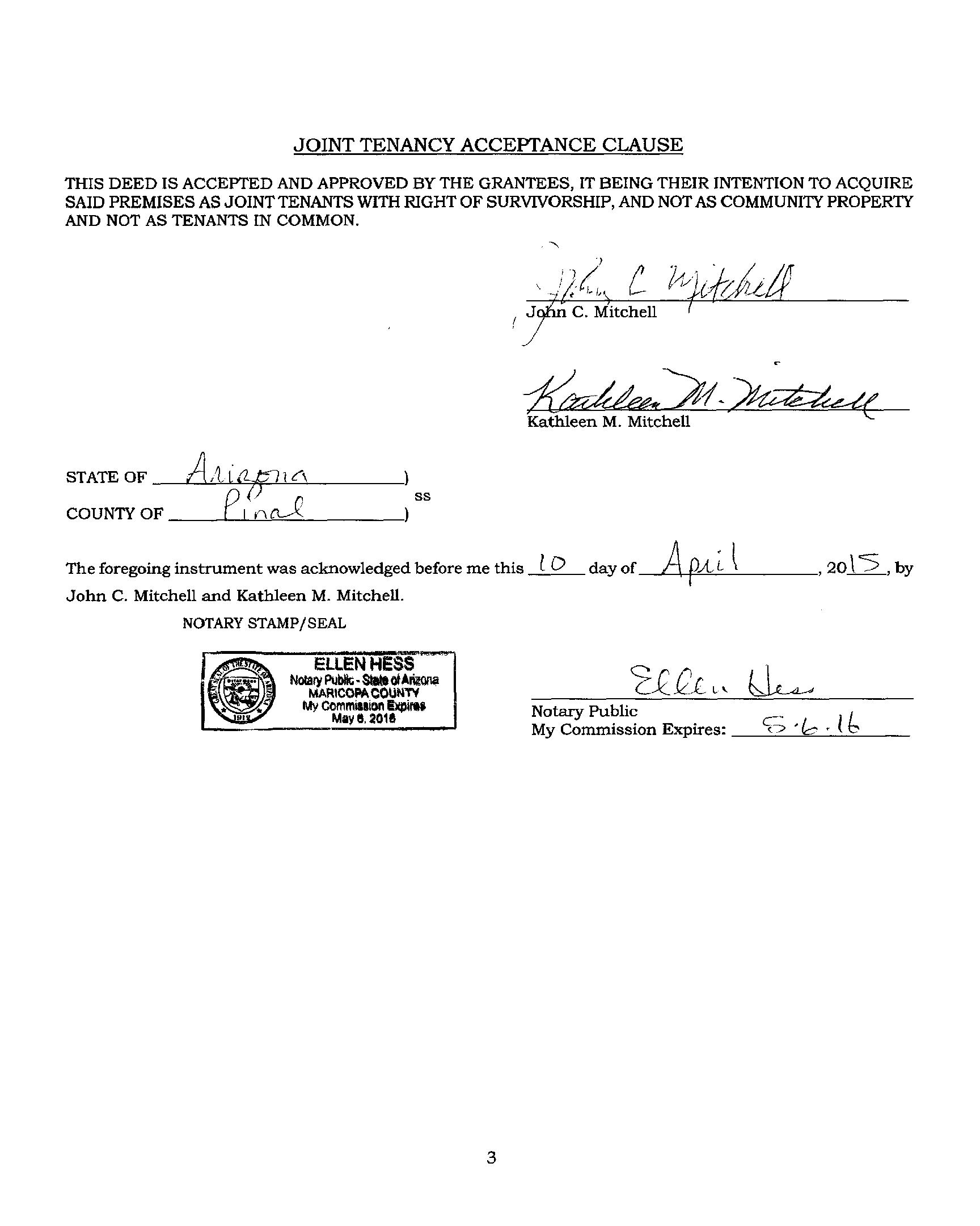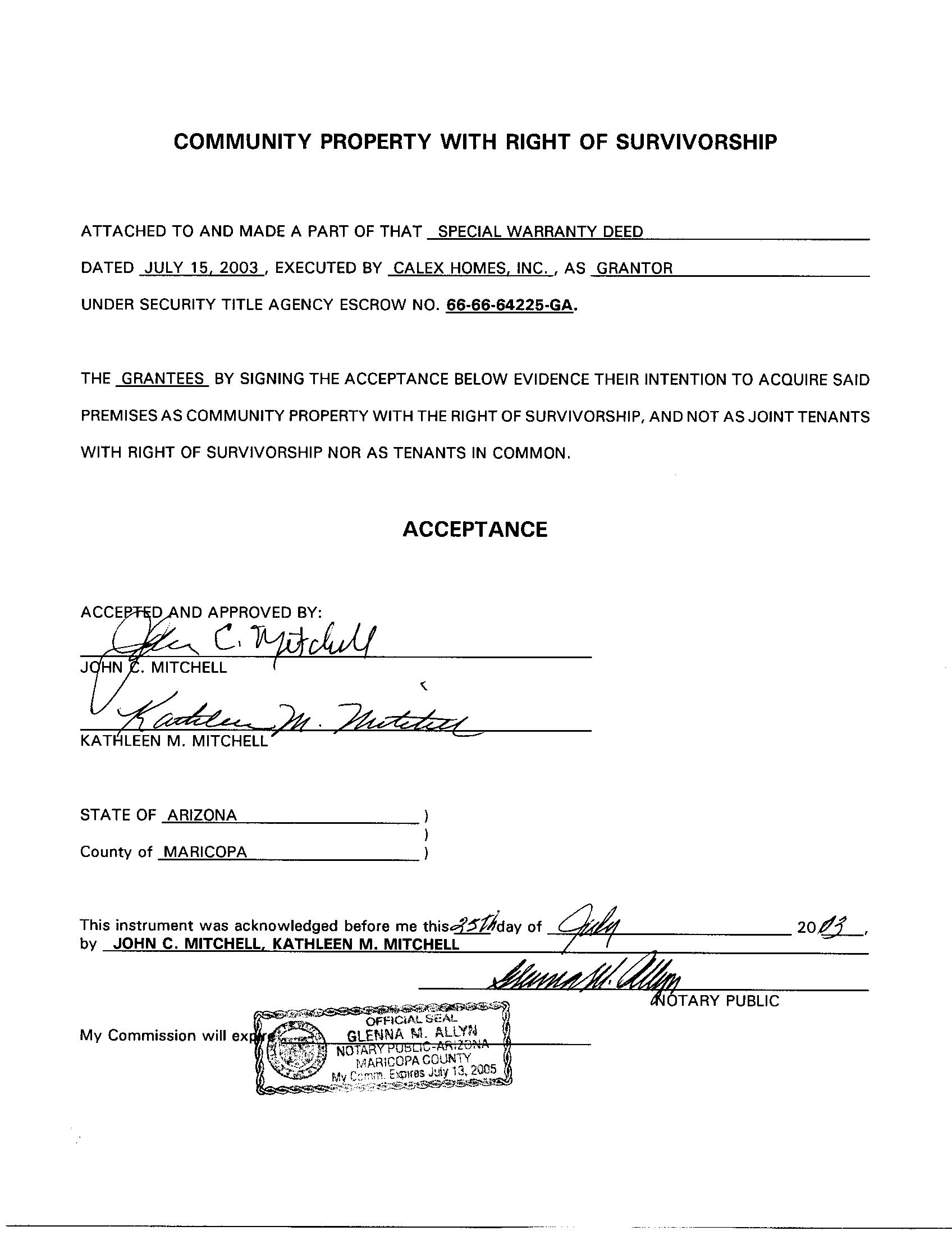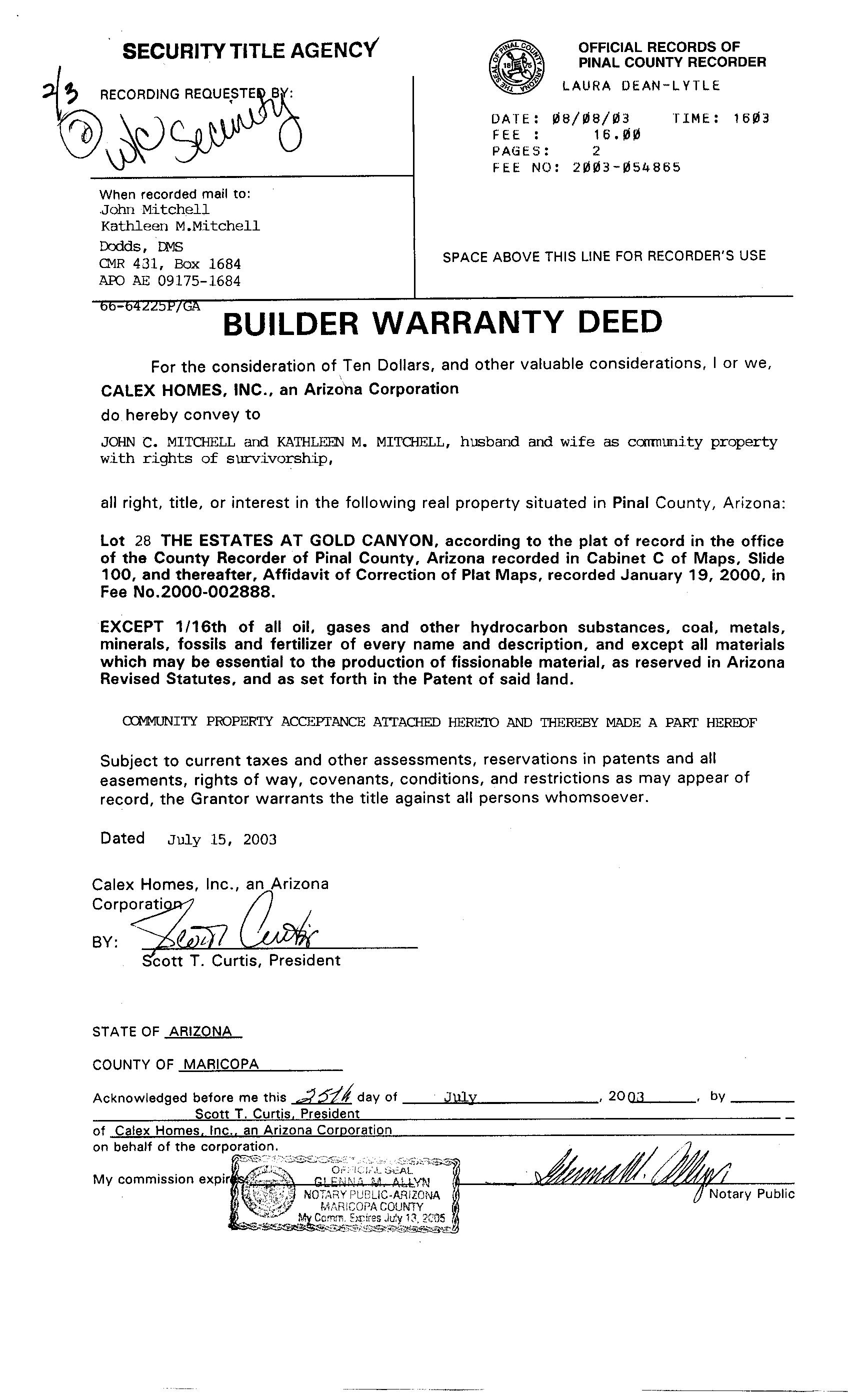 OWNER: MITCHELL JOHN C & KATHLEEN M 2003 54865 08/08/2003