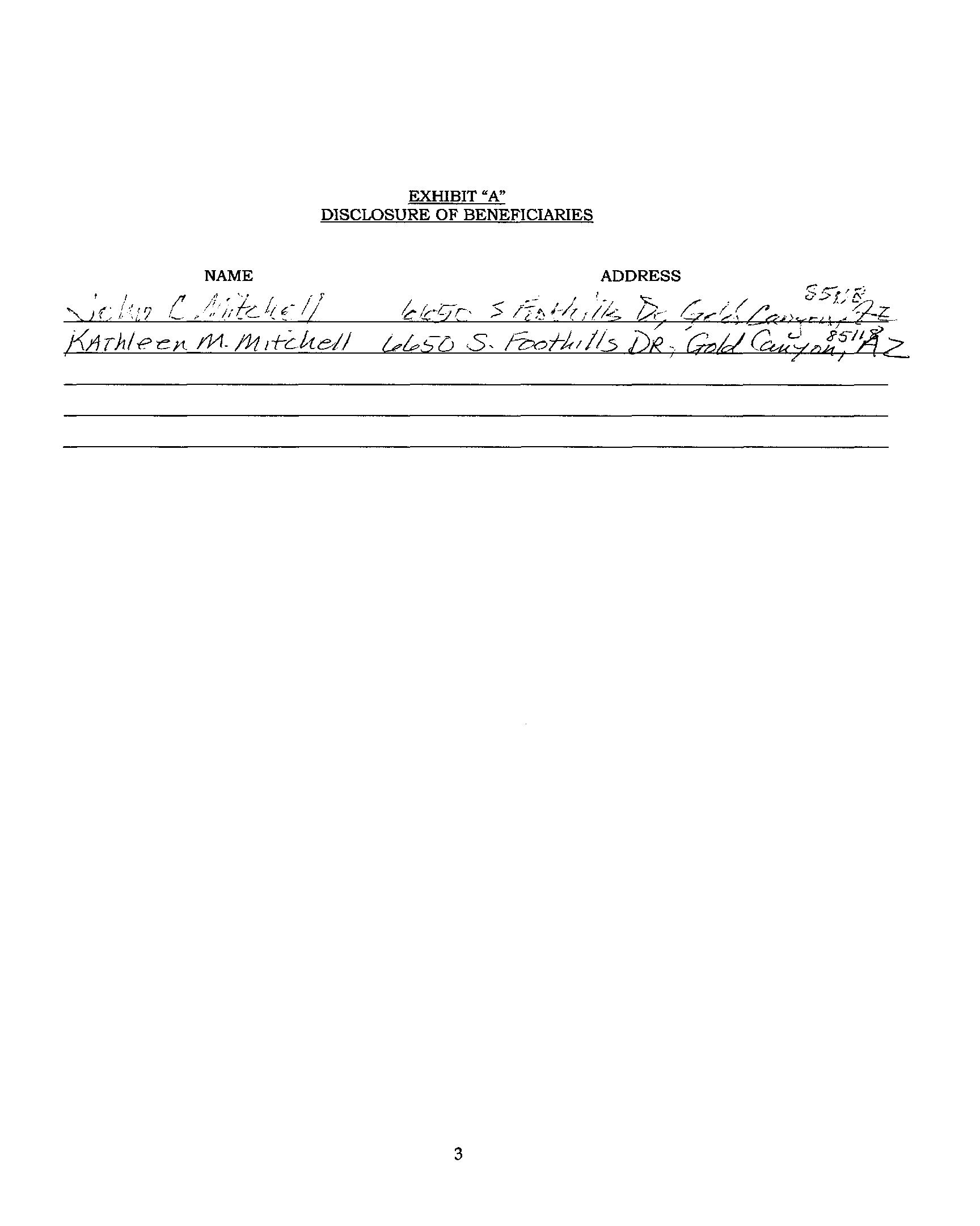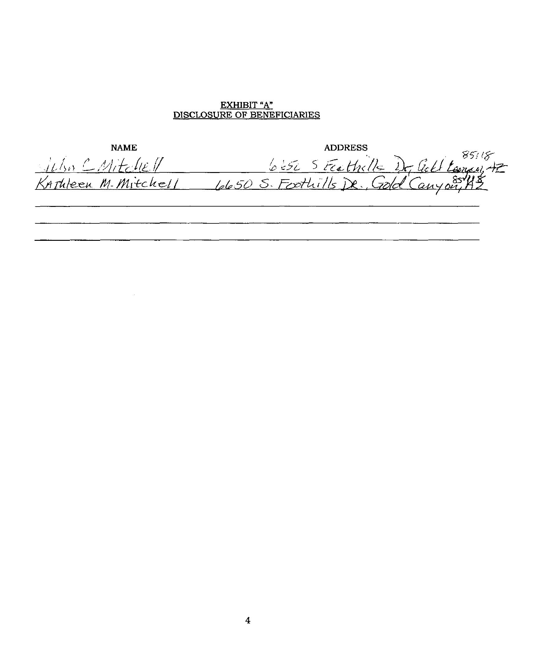 MAIL: 6650 S FOOTHILLS GOLD CANYON AZ 85118