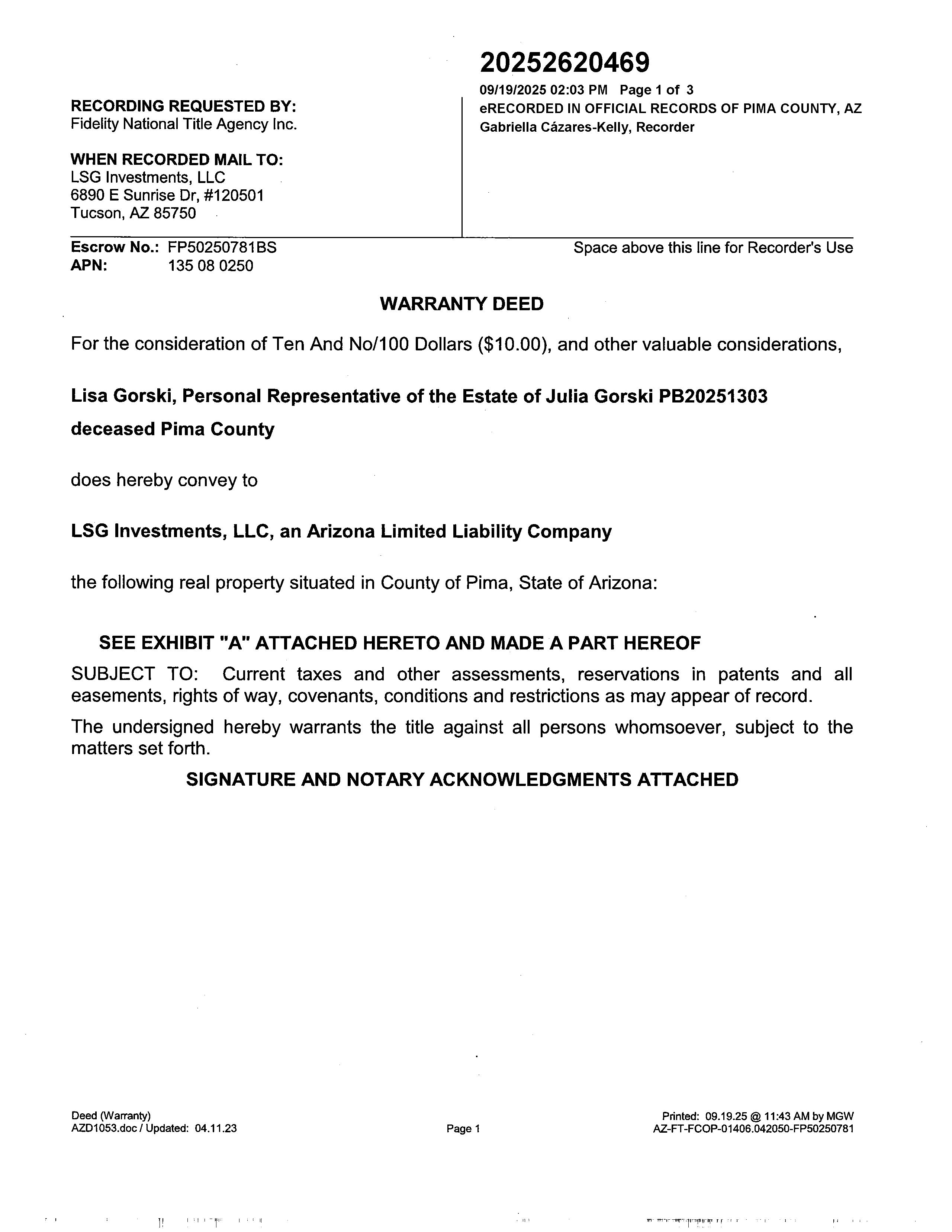 Title Insurance Policy. First American Title will deliver your policy and your recorded deed.
