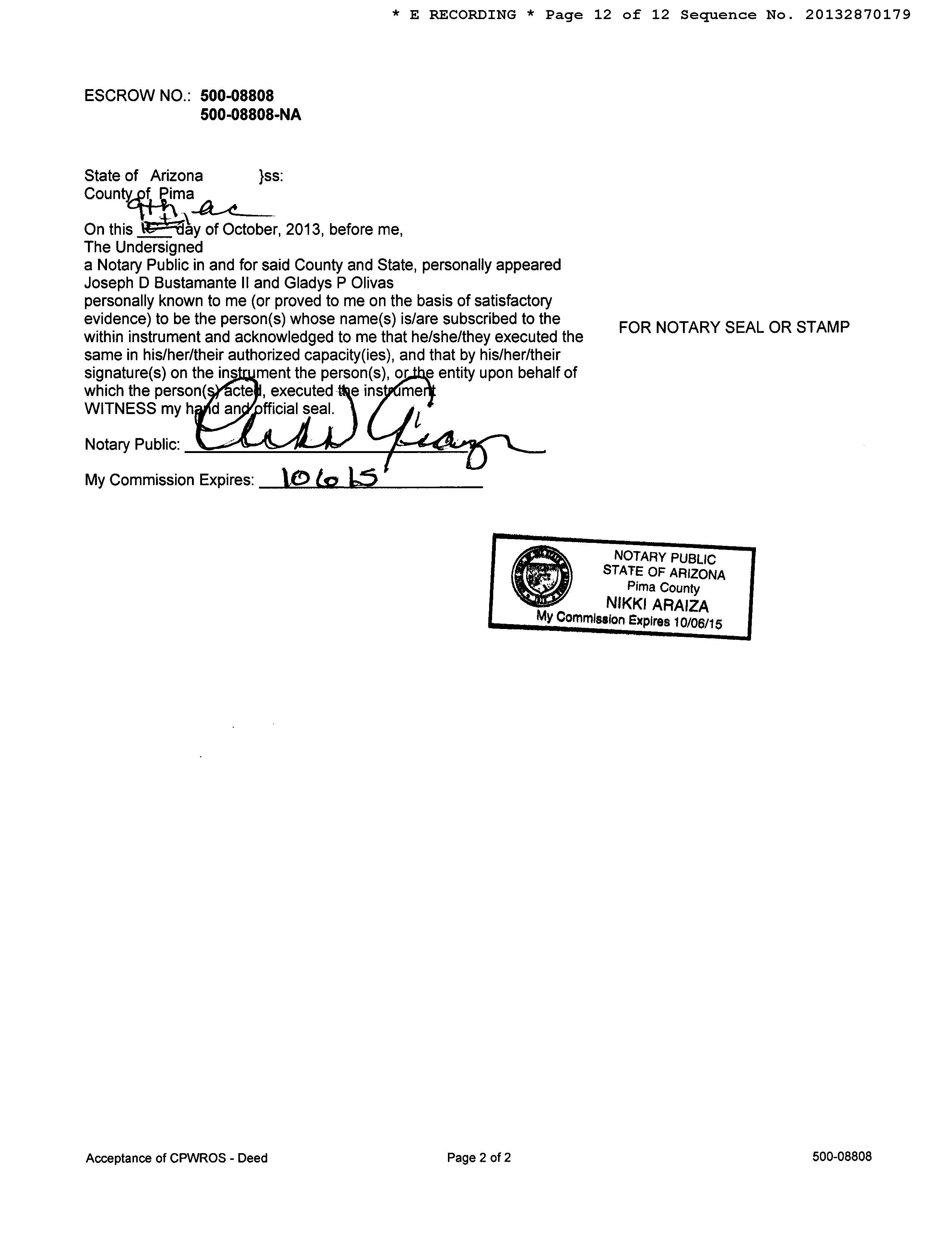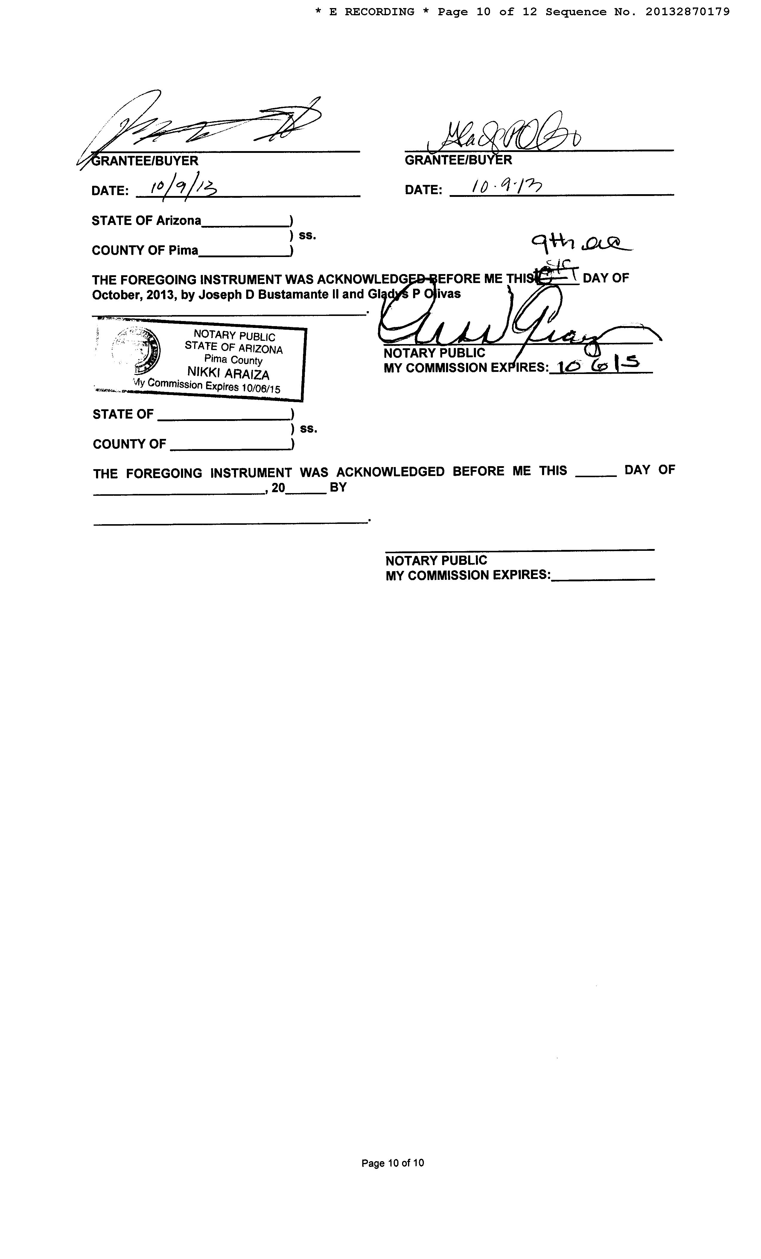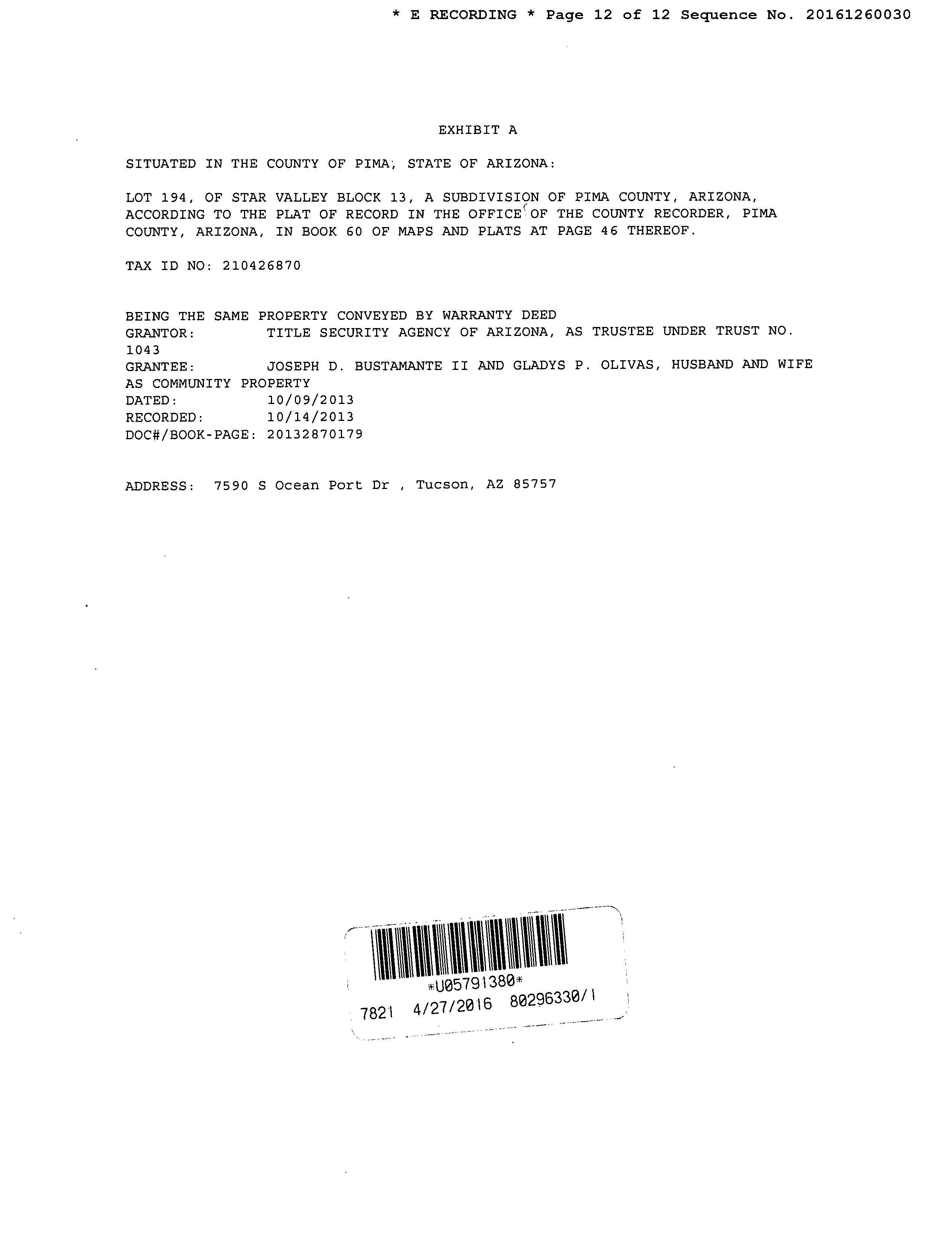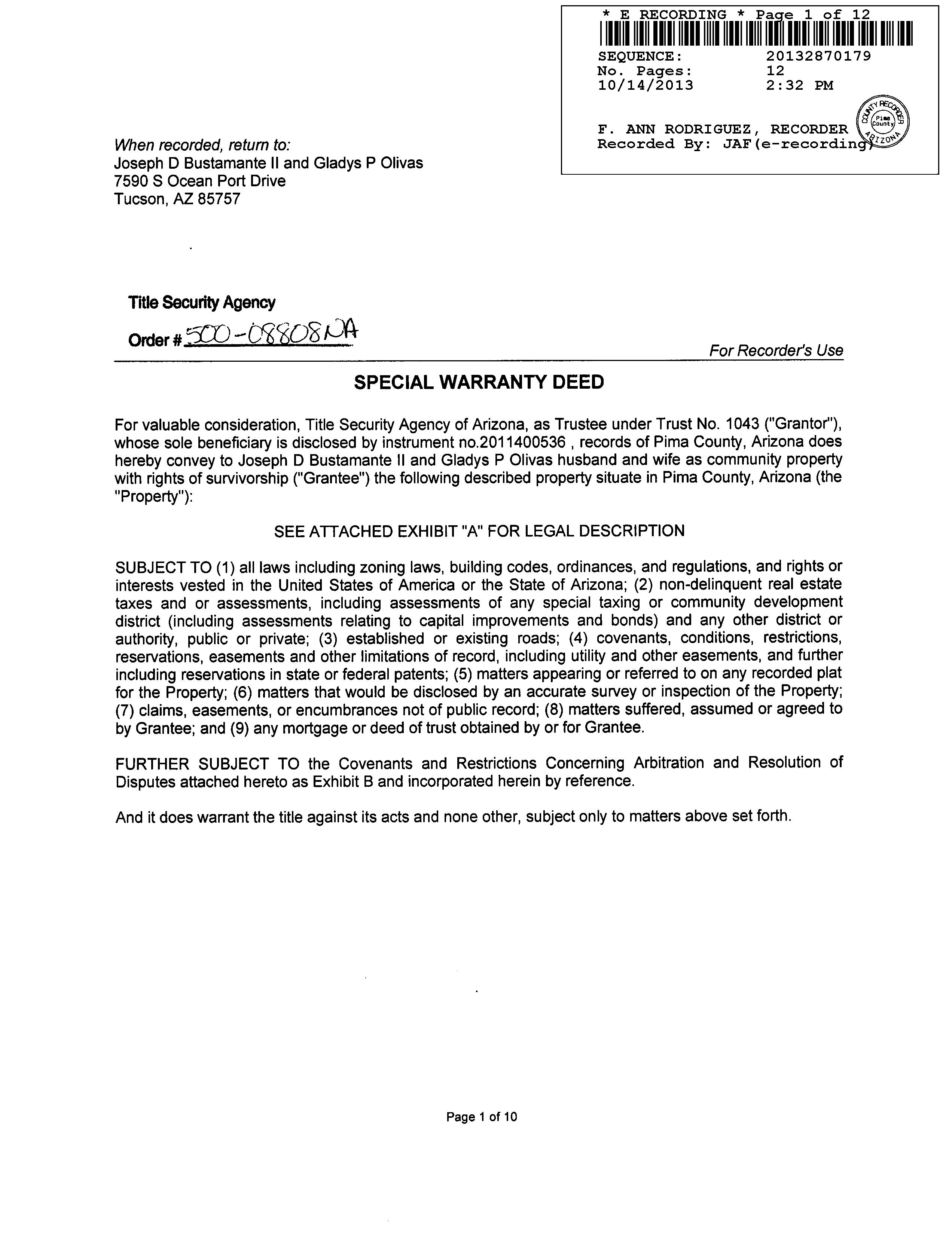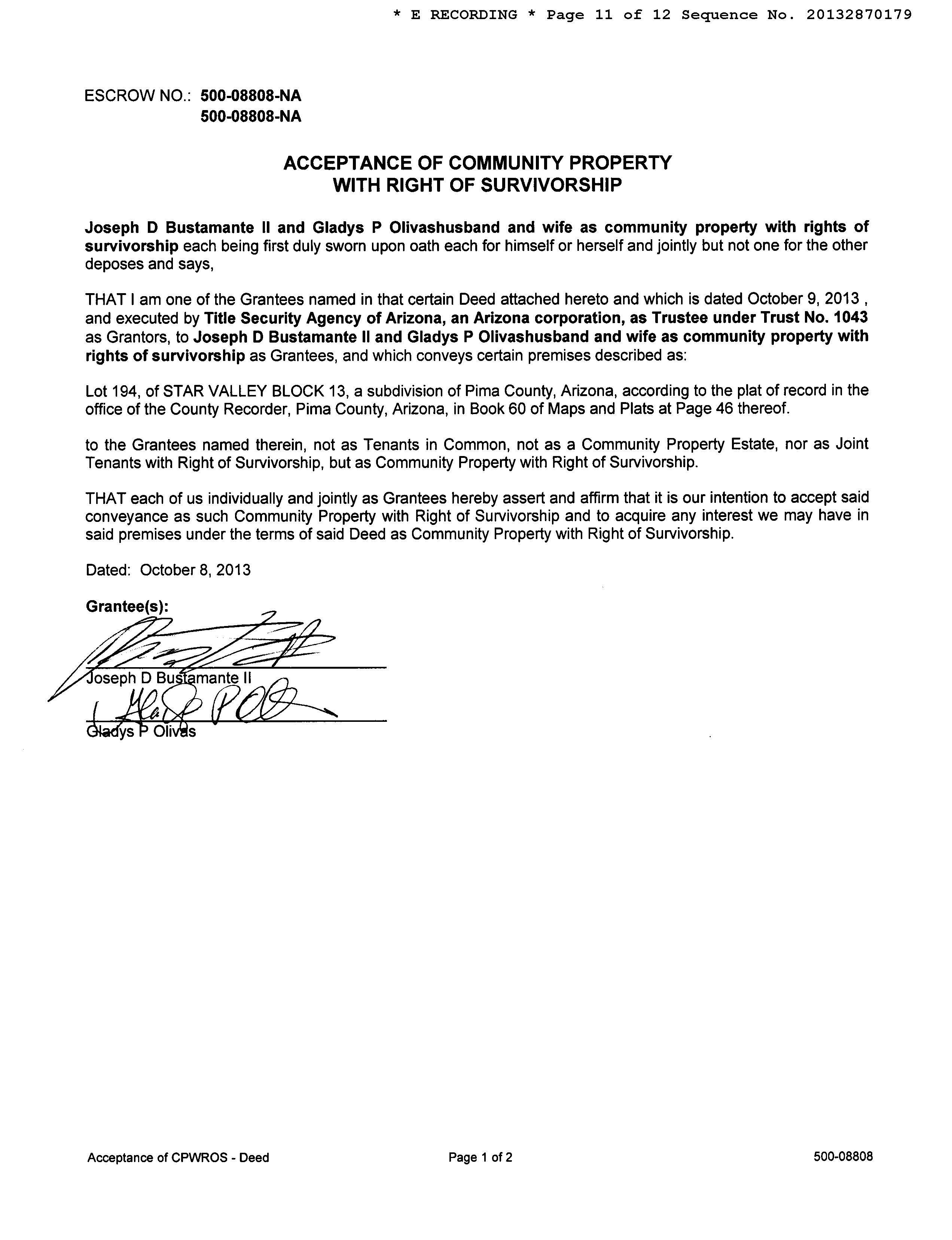OWNER: BUSTAMANTE JOSEPH D / AFFIDAVIT 2013 2870179 10/14/2013