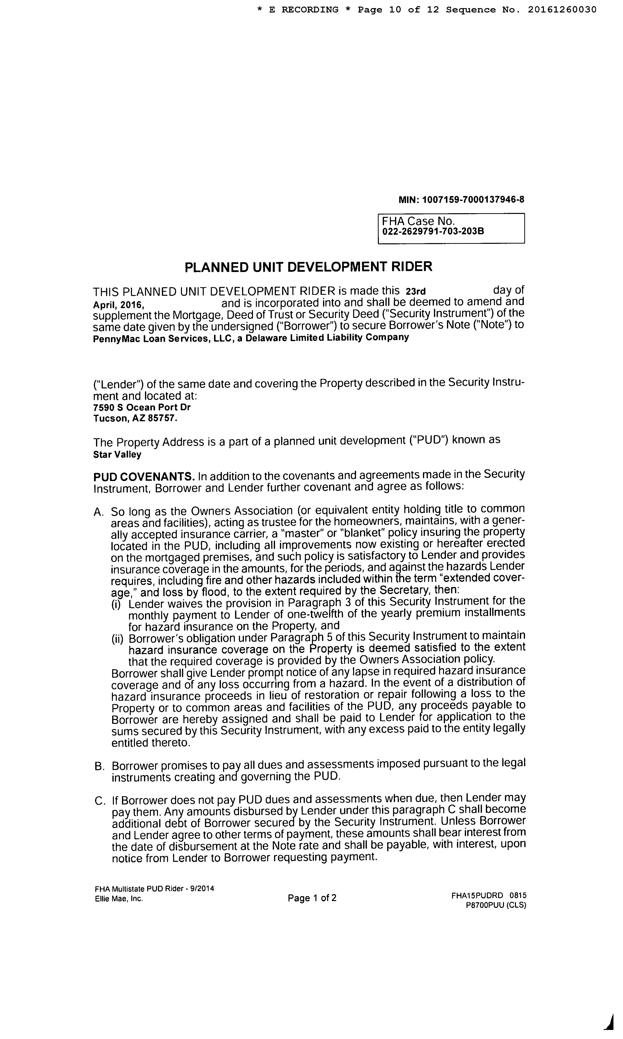 Mailing Address : 7590 S Ocean Port Dr, Tucson AZ 85757-8580 R099