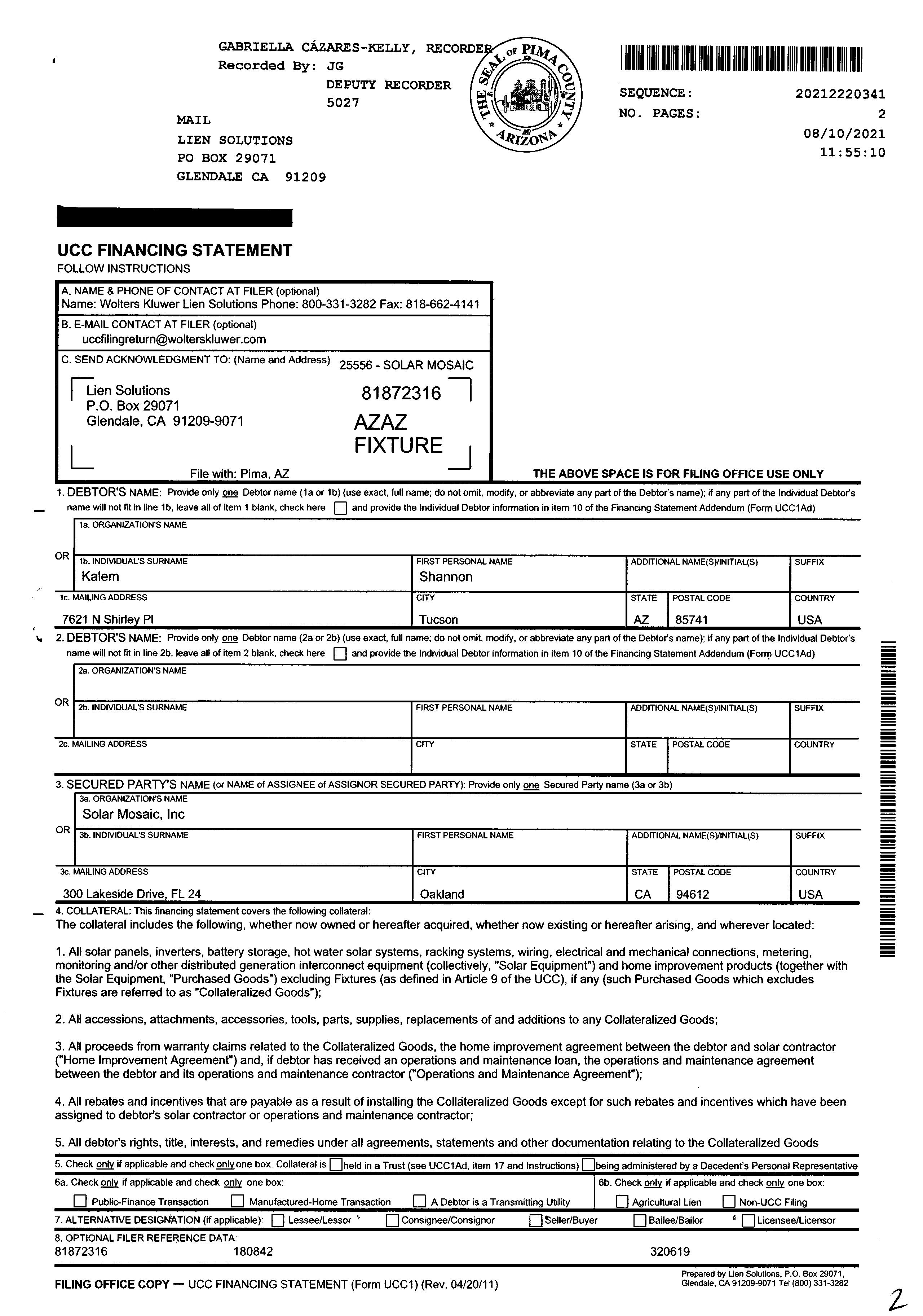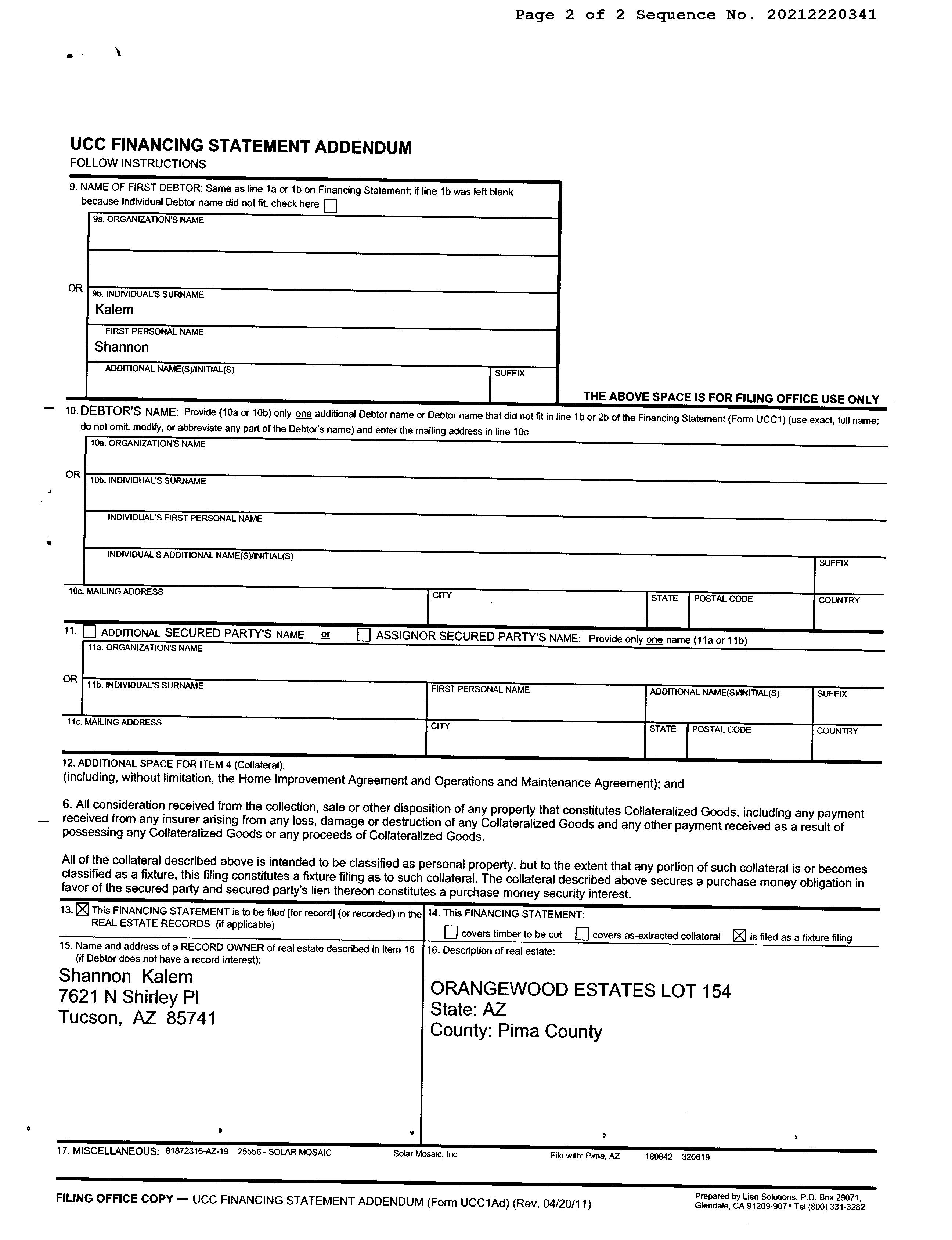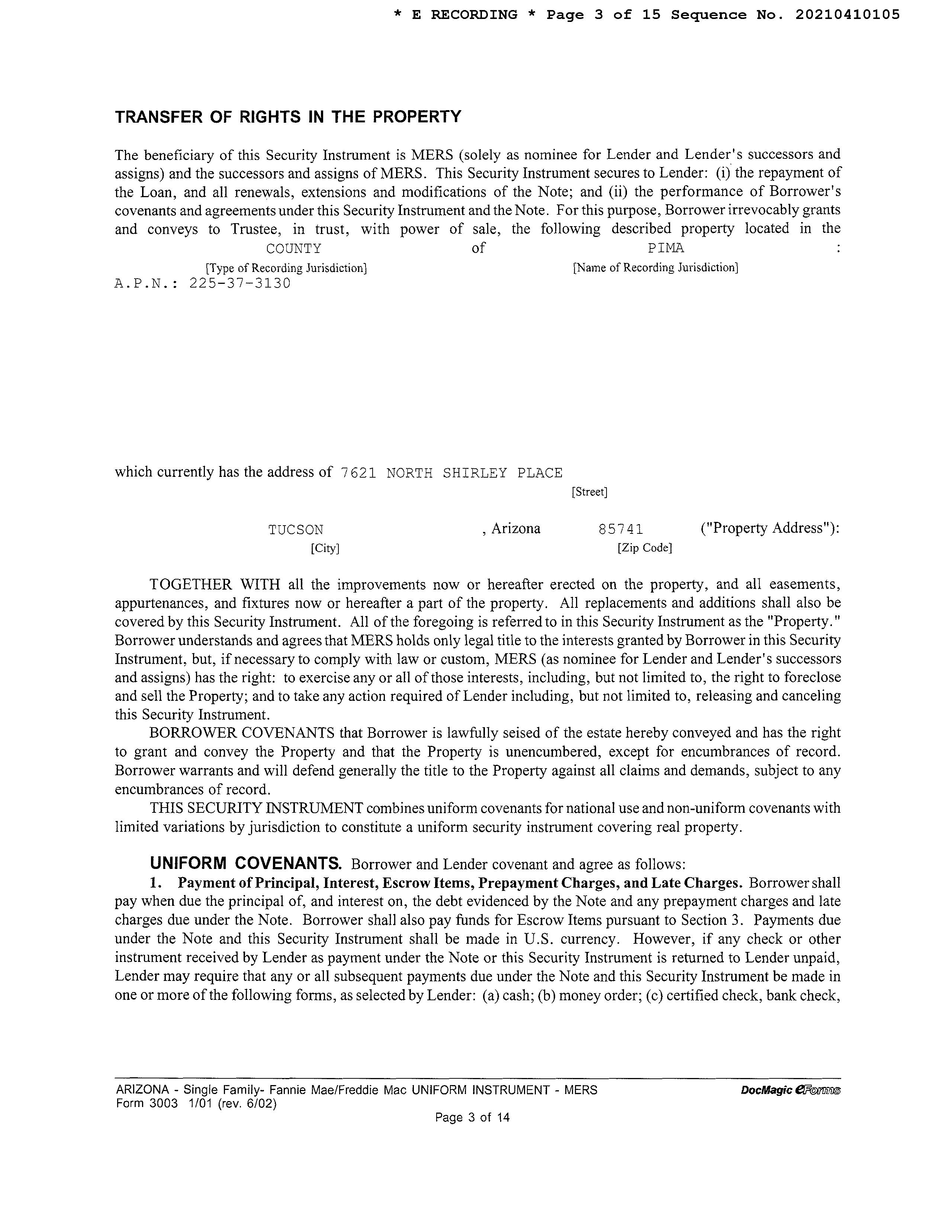 Mailing Address : 7621 N Shirley Pl, Tucson AZ 85741-1915 C008