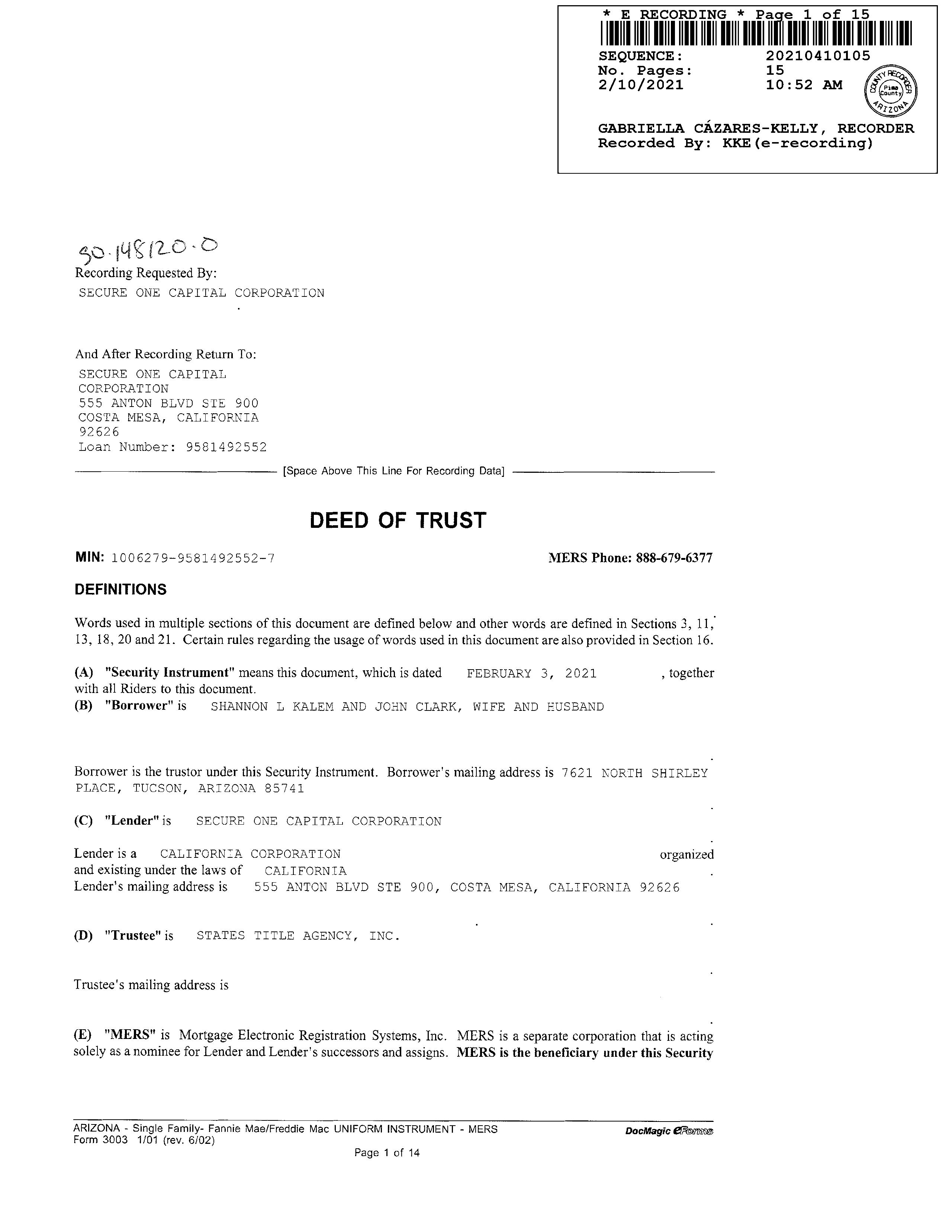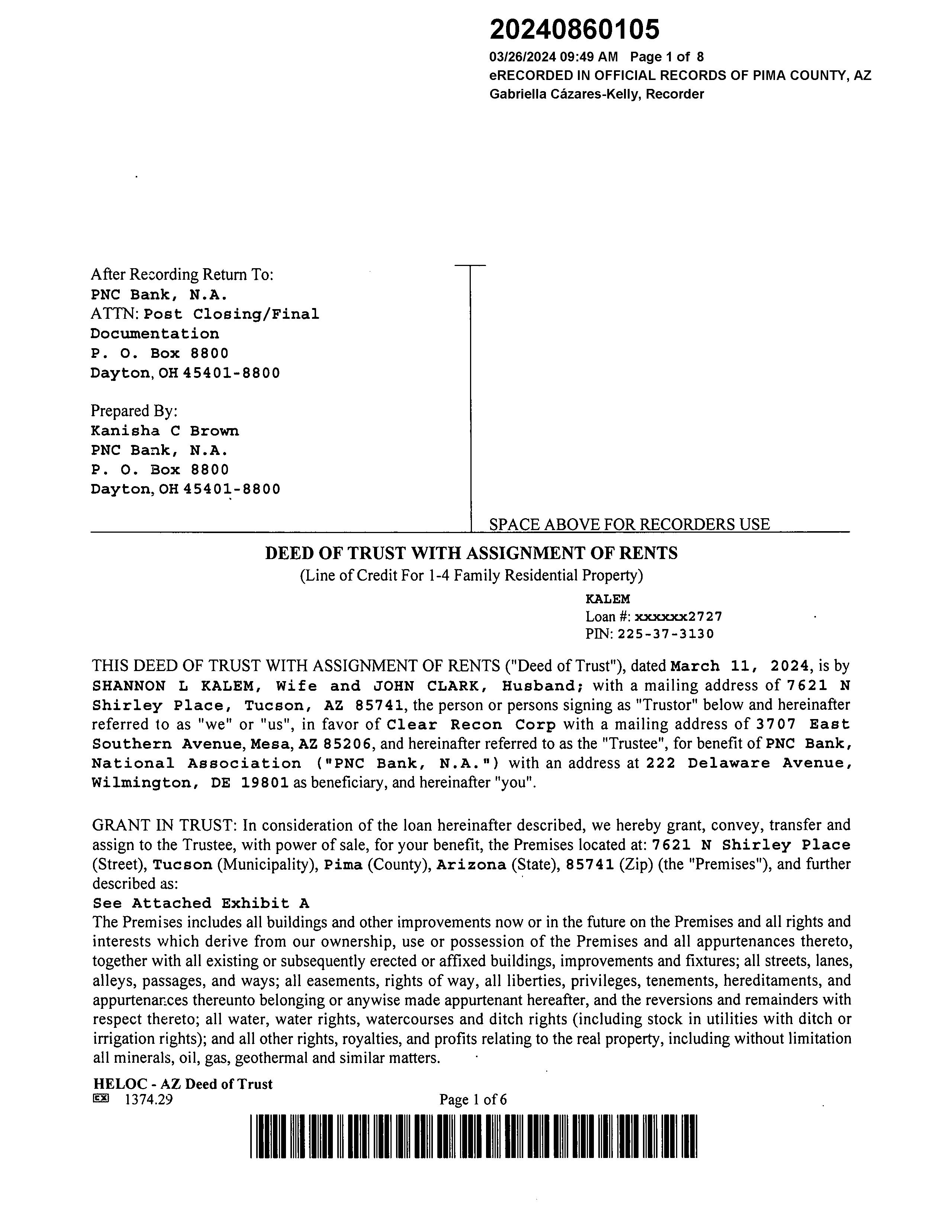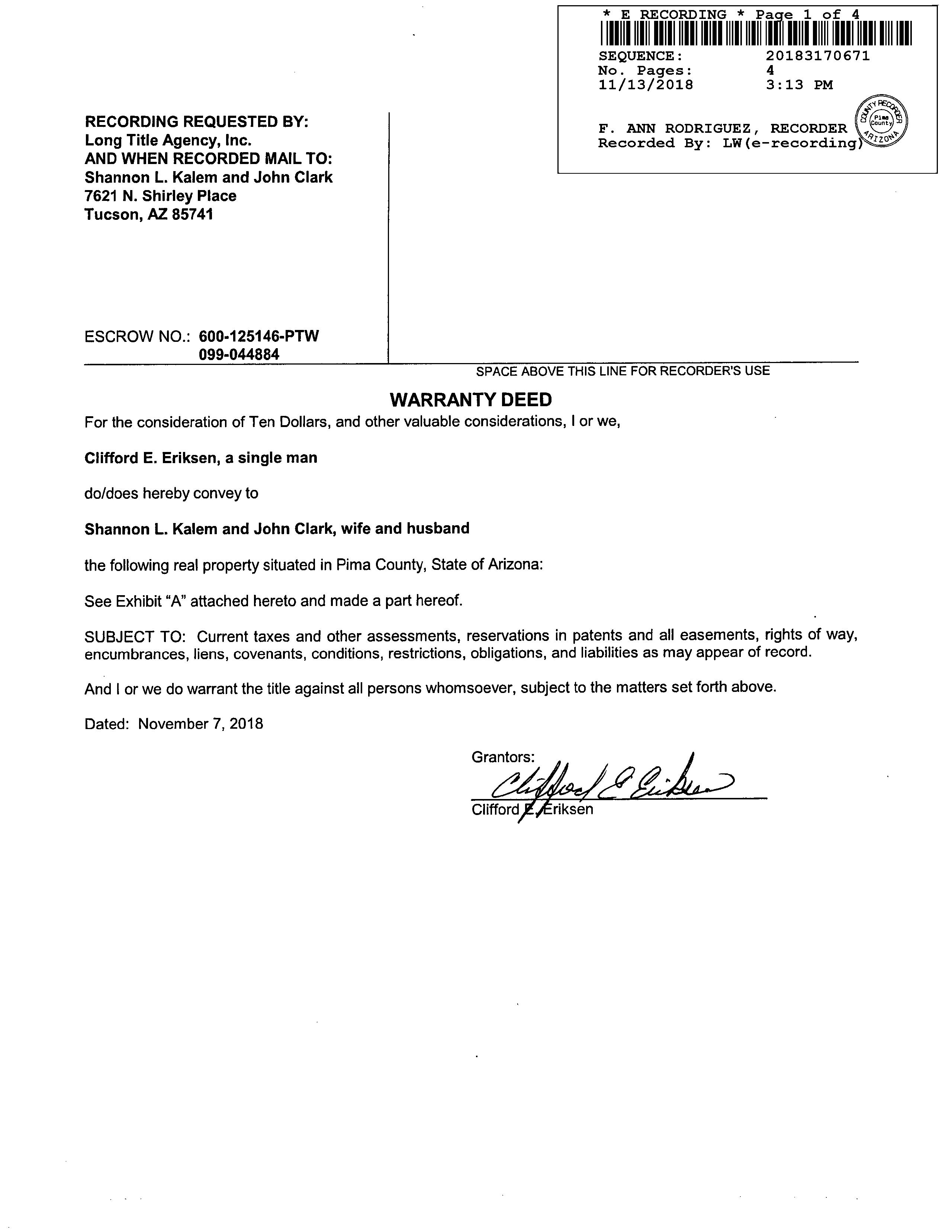OWNER: KALEM SHANNON L & CLARK JOH AFFIDAVIT 2018 3170671 11/13/2018