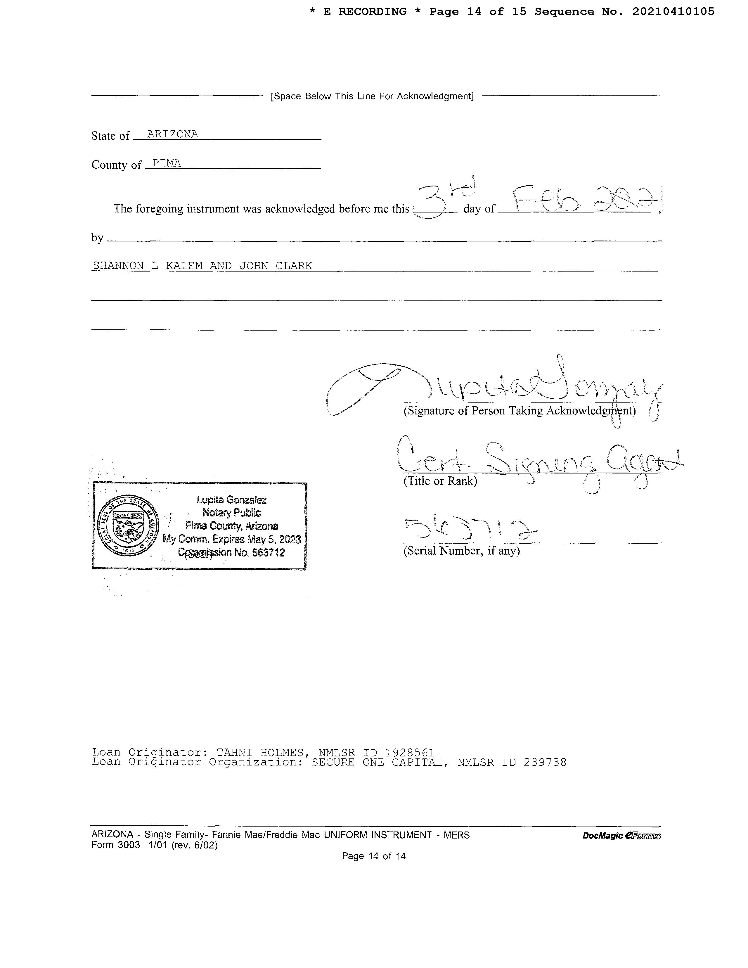 Subject Property : 7621 N Shirley Pl Tucson AZ 85741