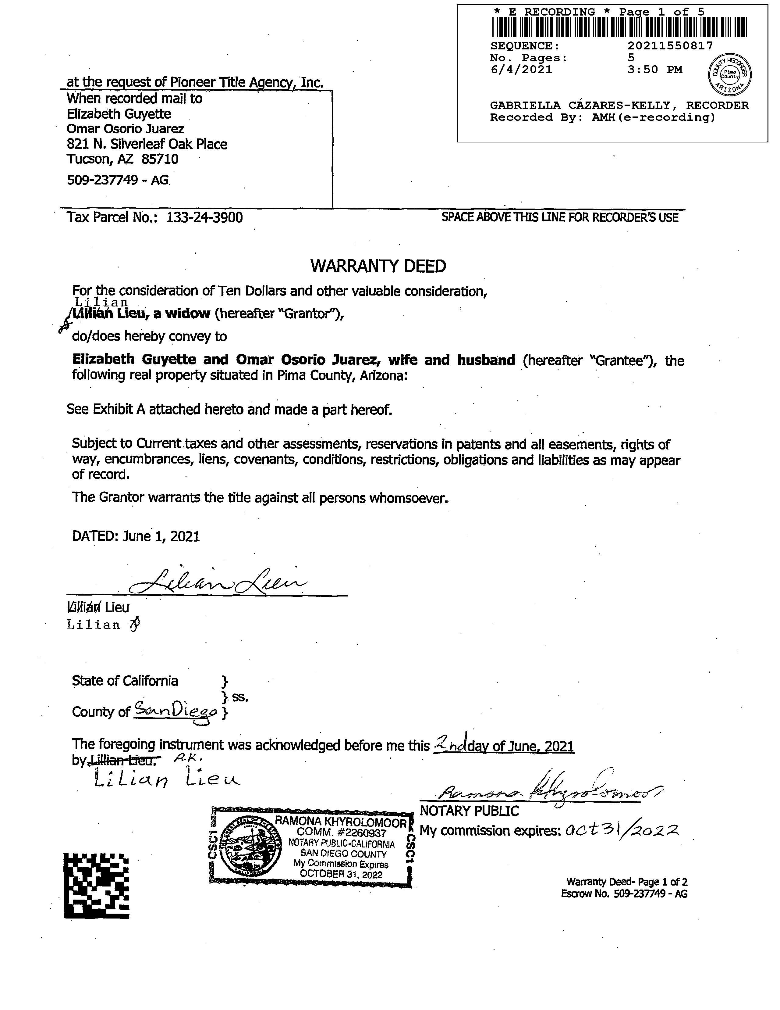 Title Insurance Policy. First American Title will deliver your policy and your recorded deed.