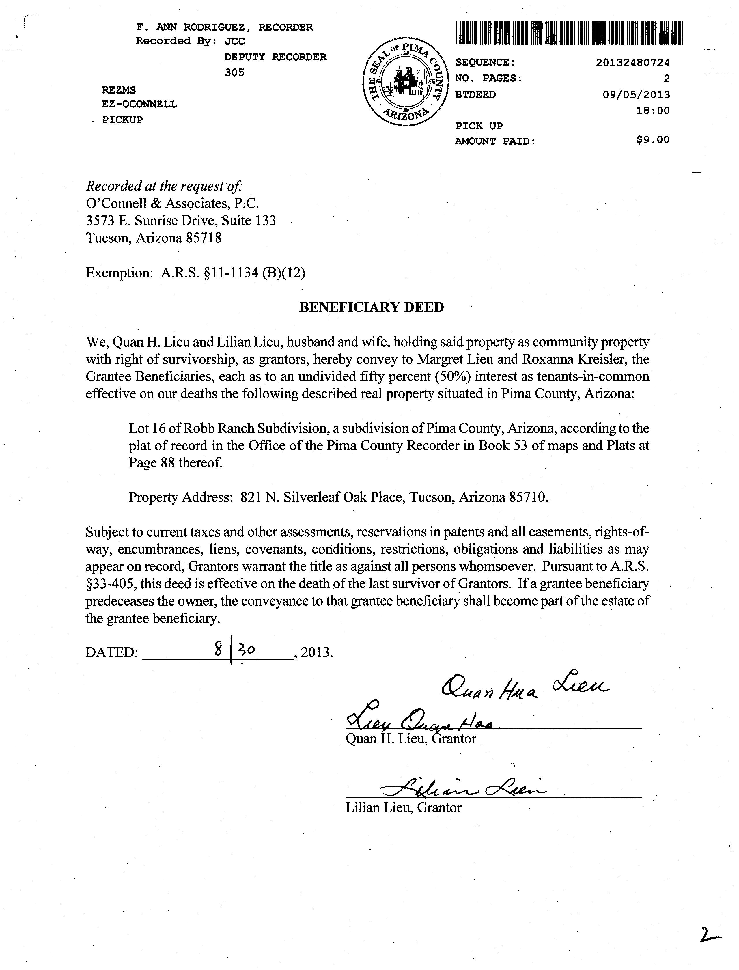This information is furnished without fee and without benefit of a complete title search. No liability is assumed by First American Title. If it is desired that liability be assumed, you may apply for a policy of title insurance with First American Title Insurance Company.