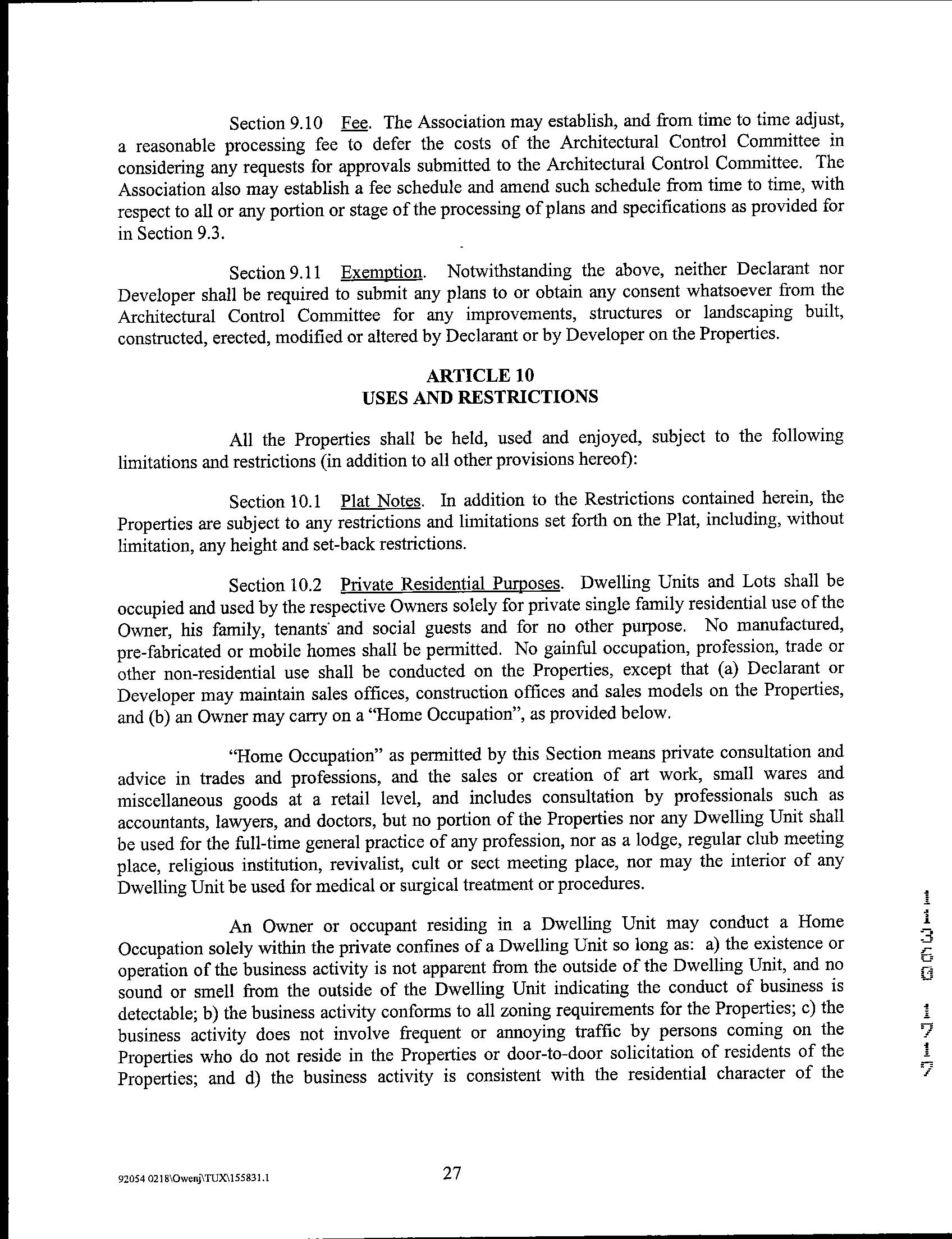 Covenants, Conditions & Restrictions