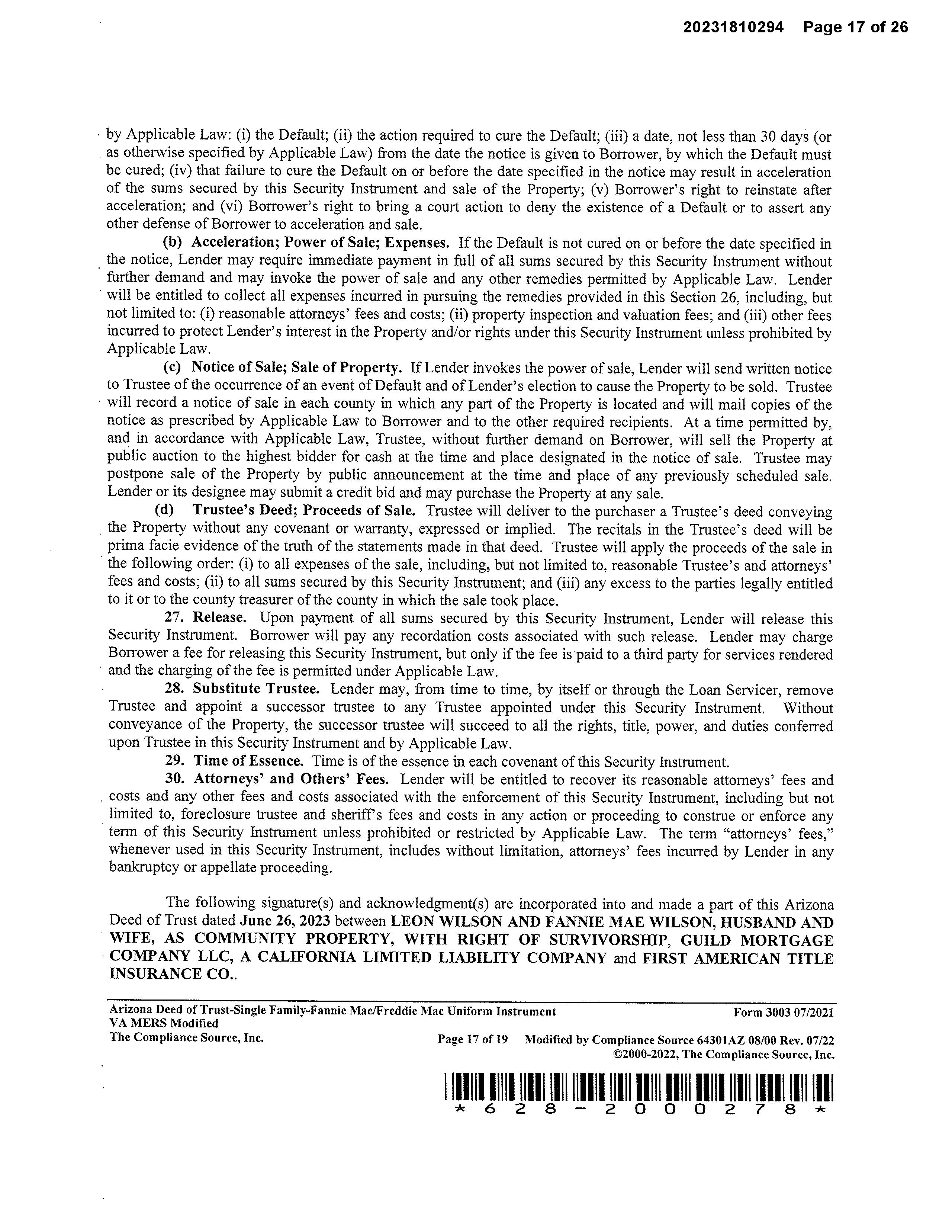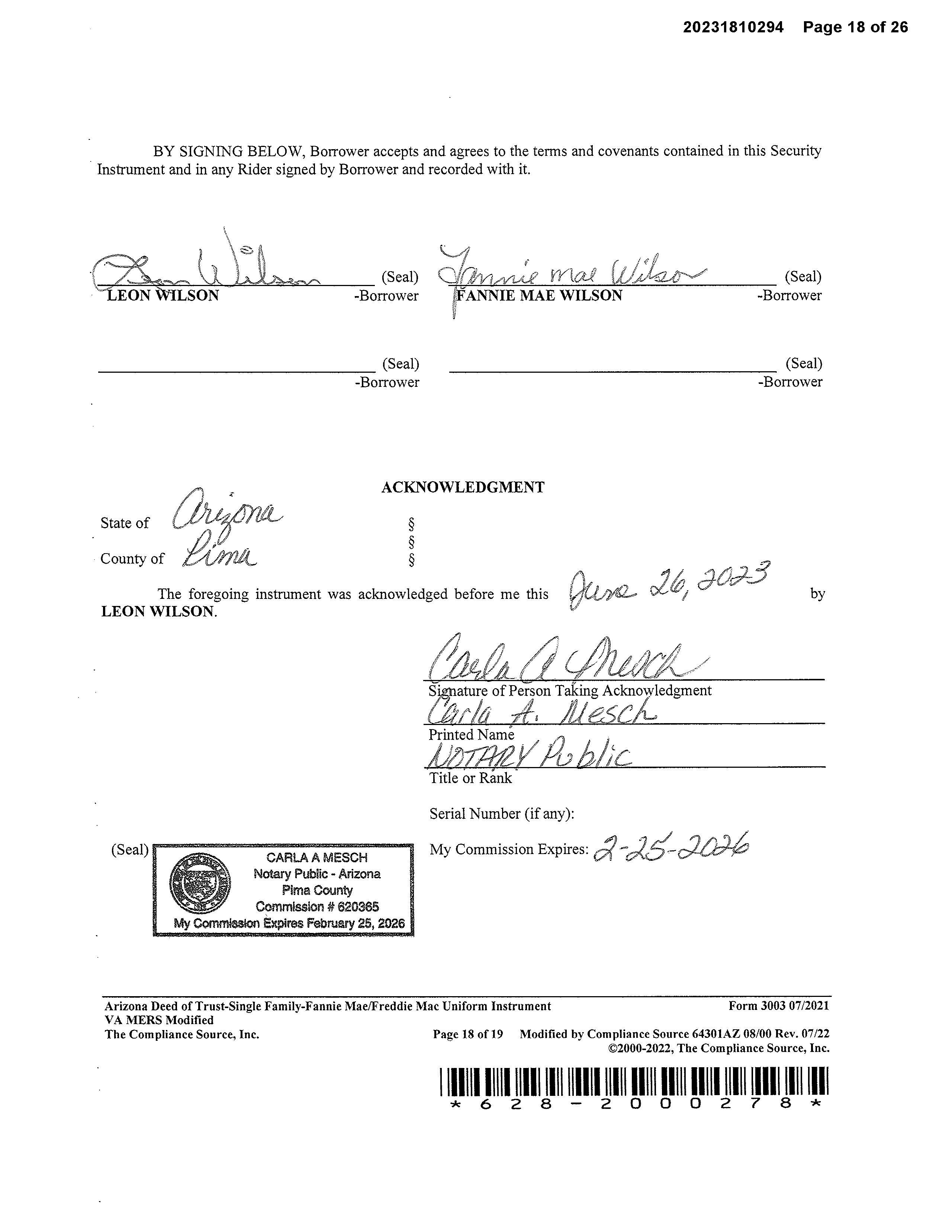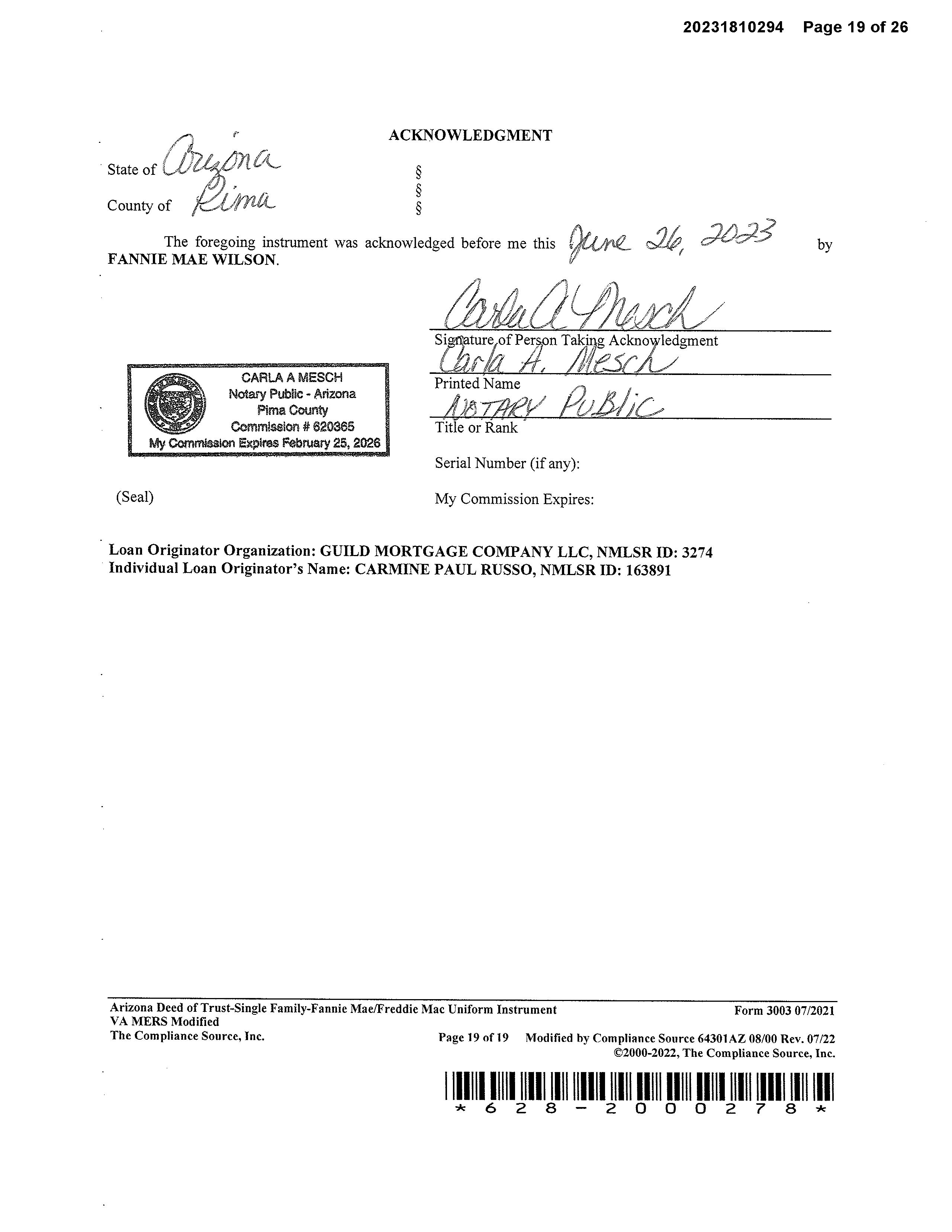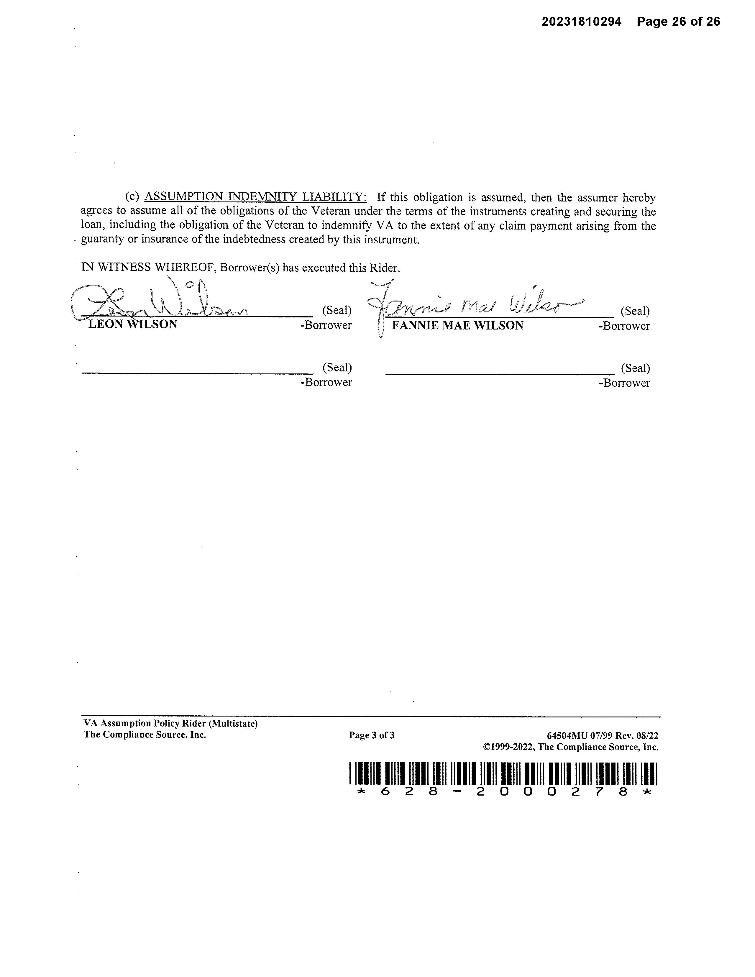 OWNER: WILSON LEON & FANNIE MAE AFFIDAVIT 2019 2690709 09/26/2019