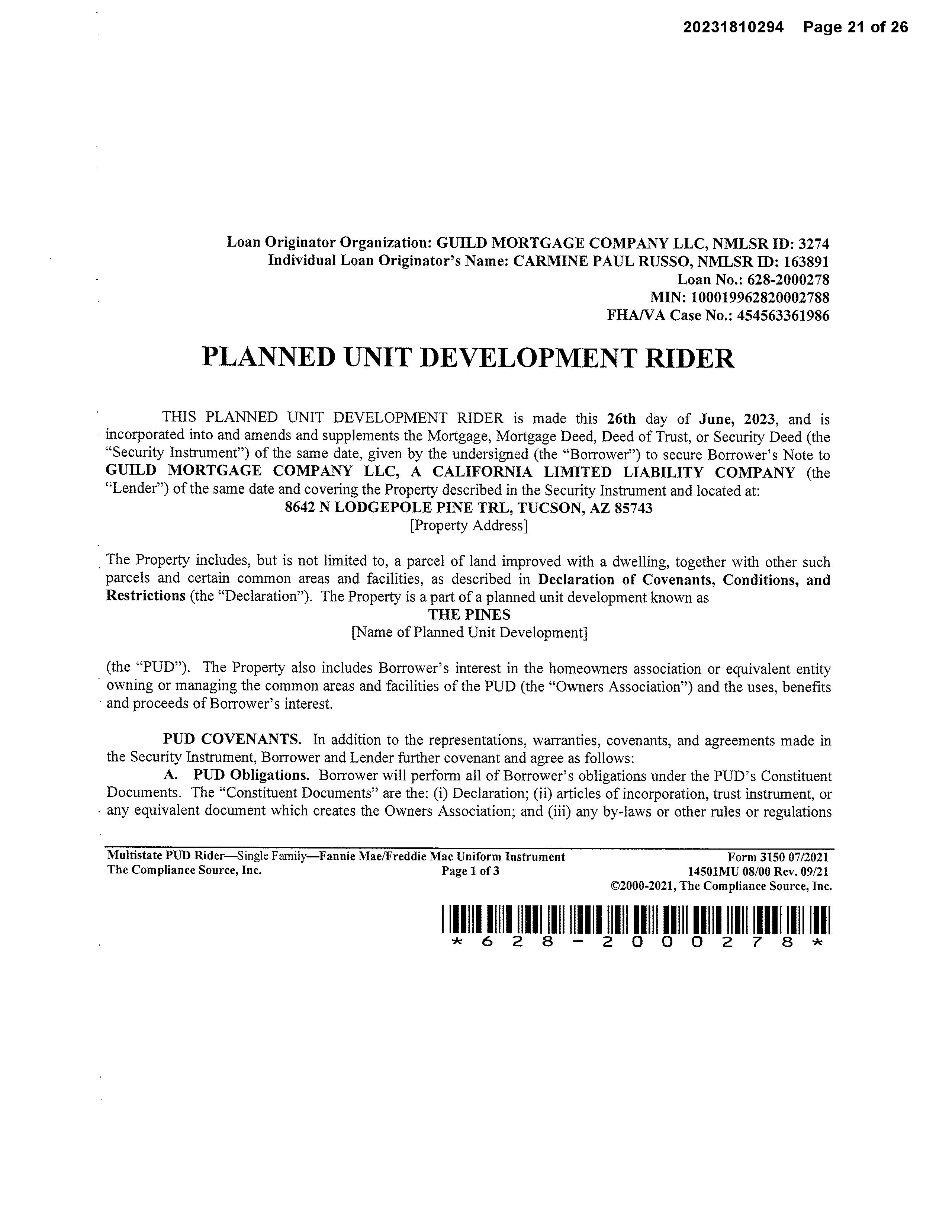 SITUS: 8642 N LODGEPOLE PINE TR MAR