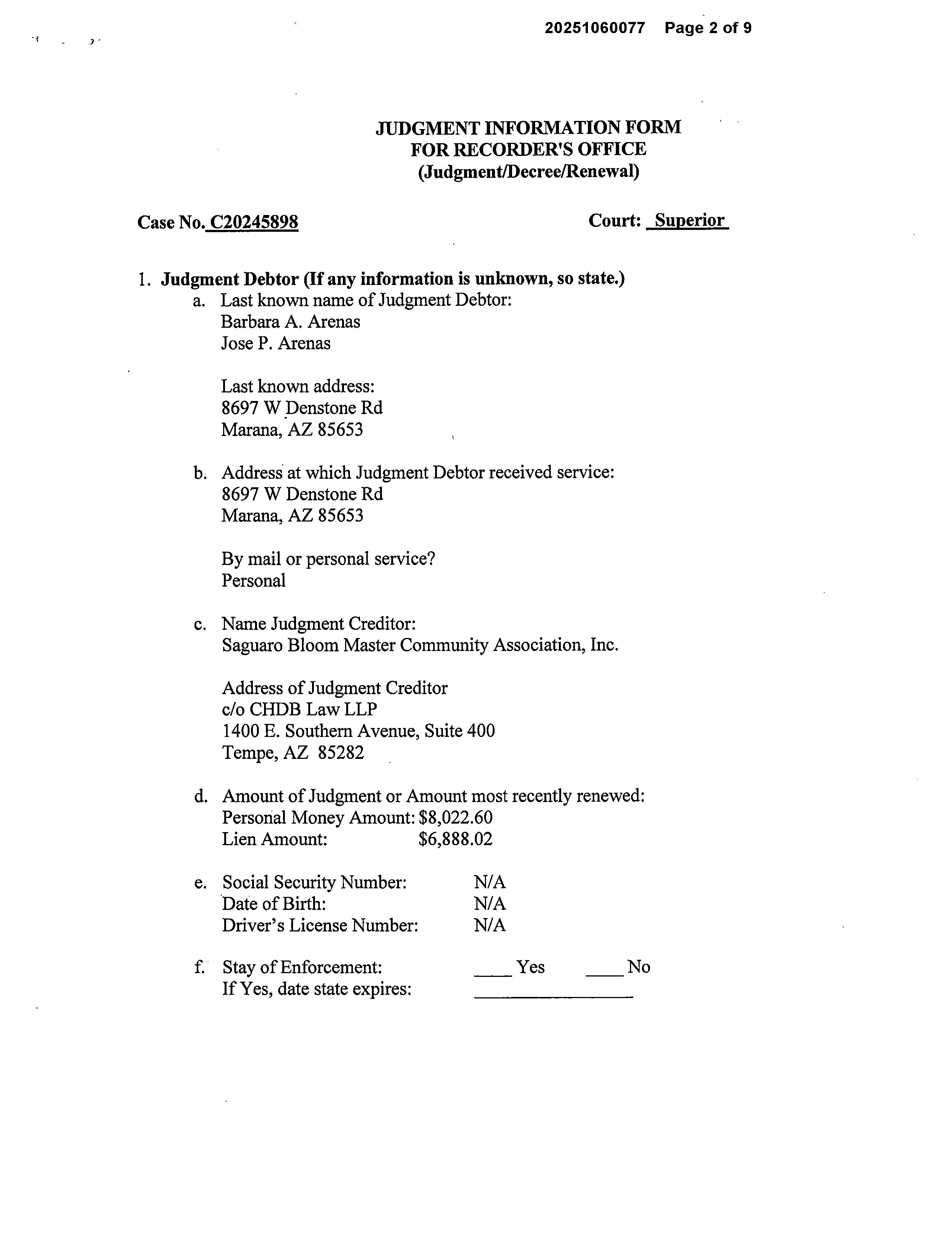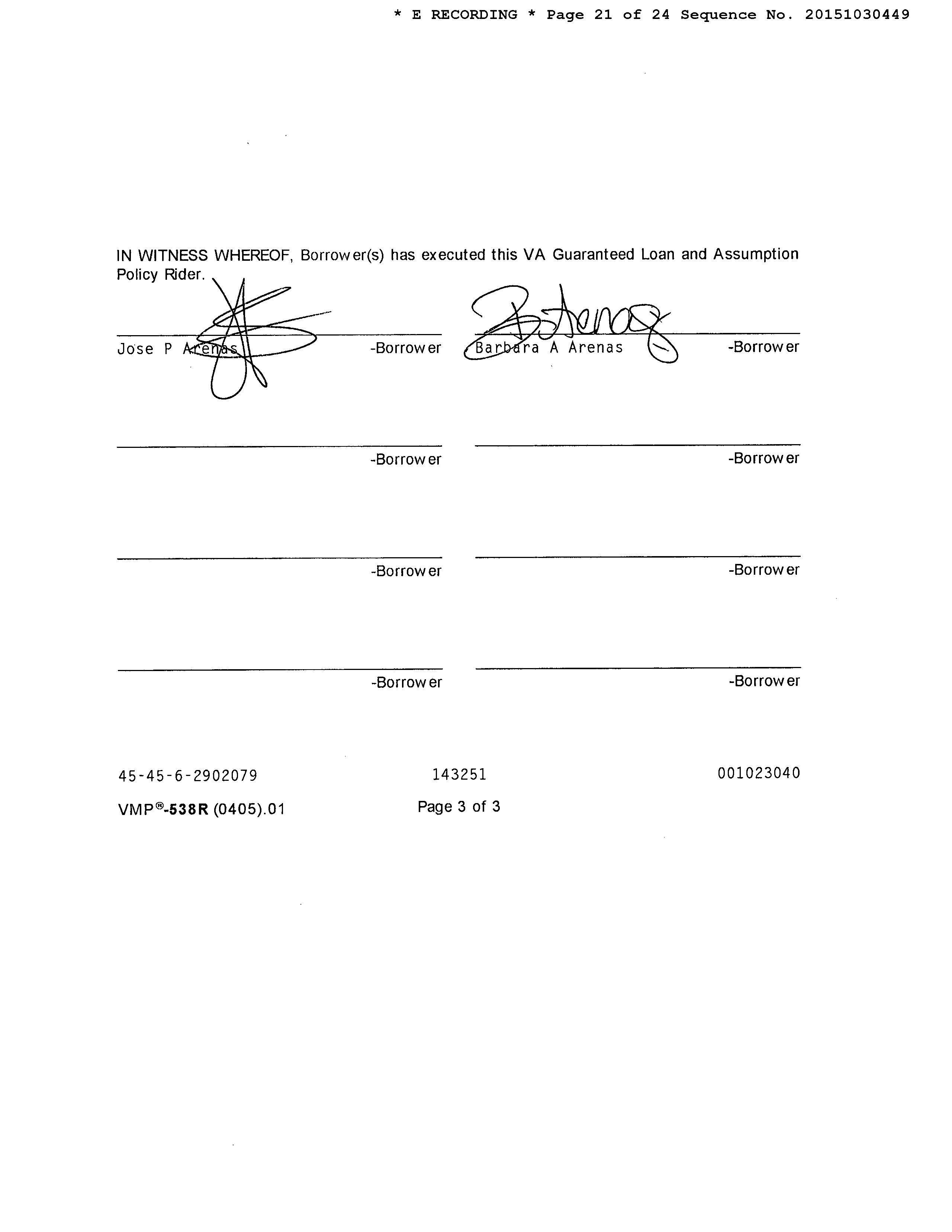 OWNER: ARENAS JOSE P/BARBARA A AFFIDAVIT 2015 1030448 04/13/2015