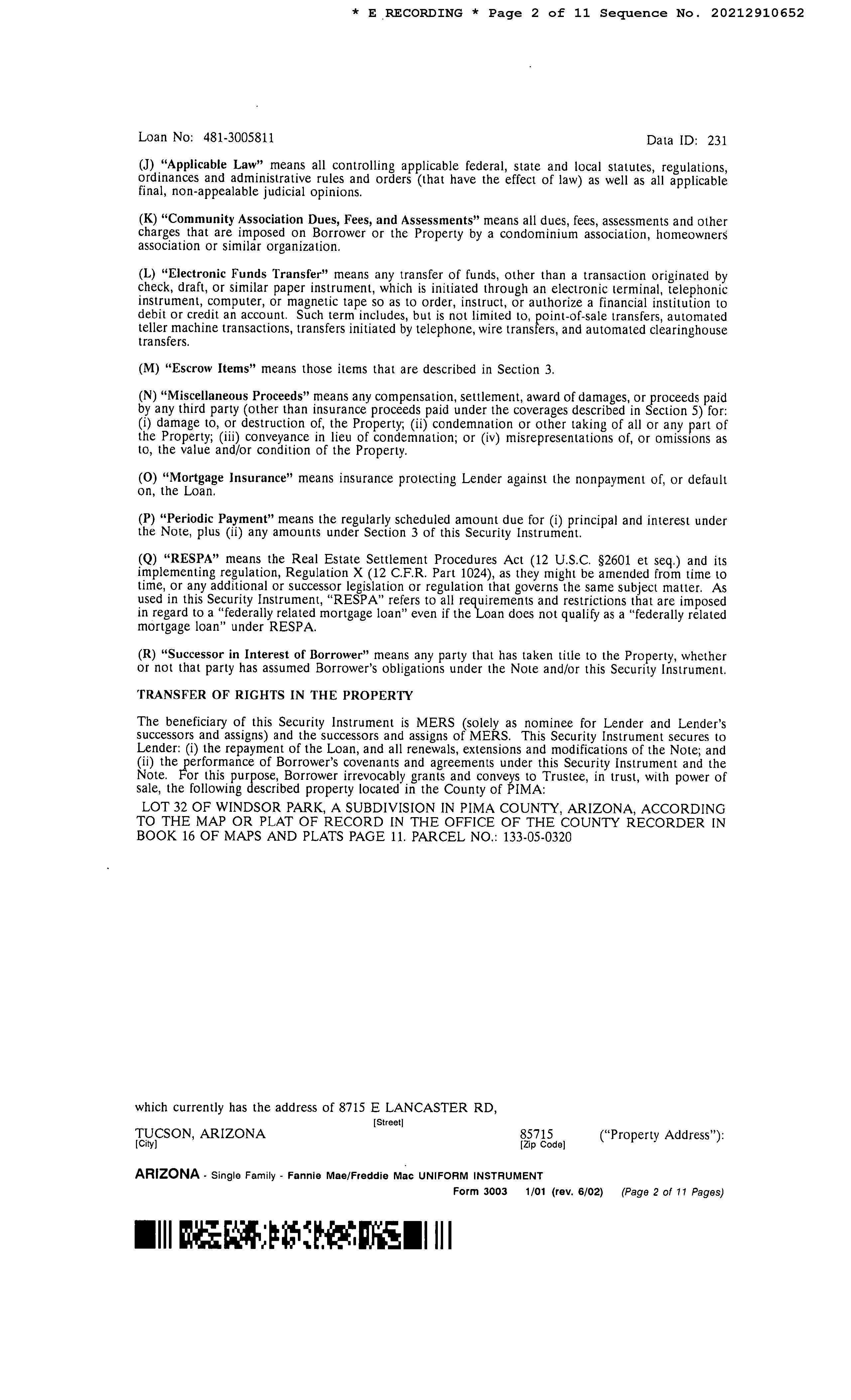 SITUS: 8715 E LANCASTER RD TUC