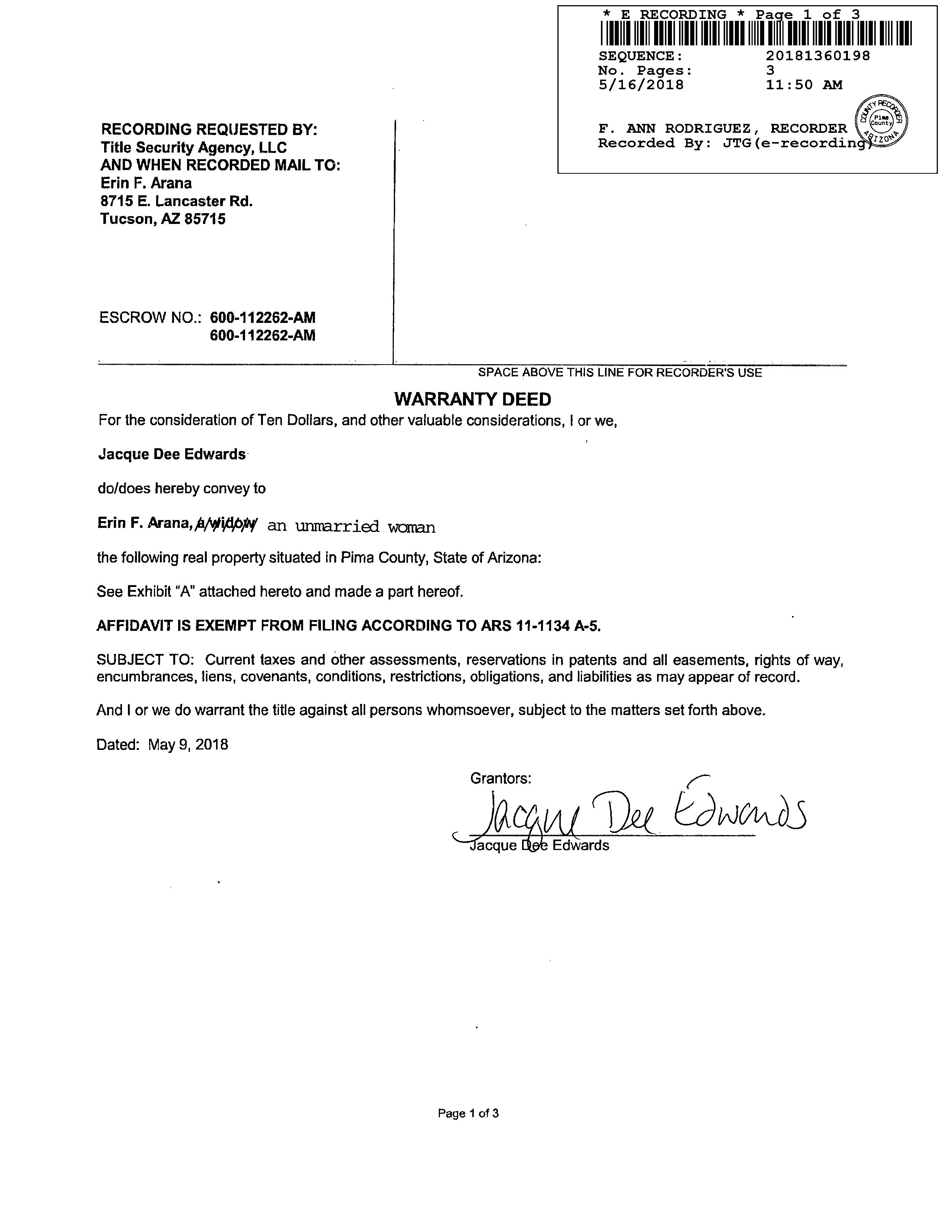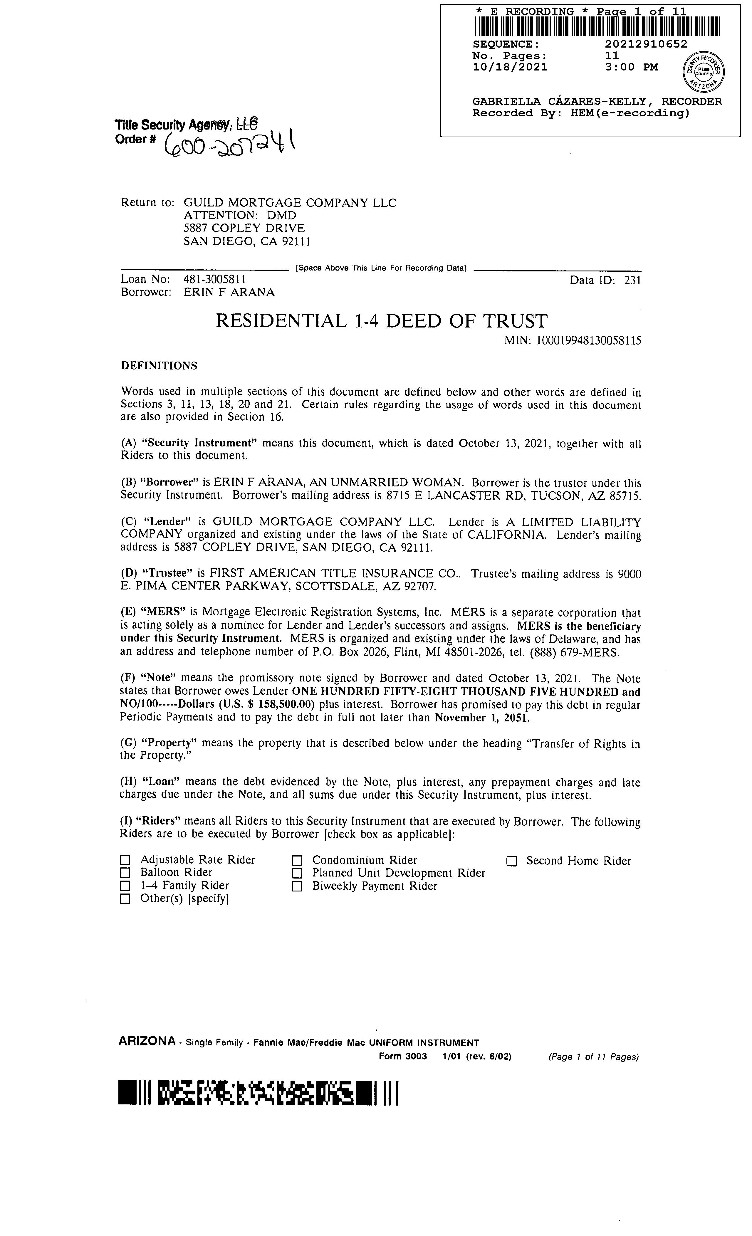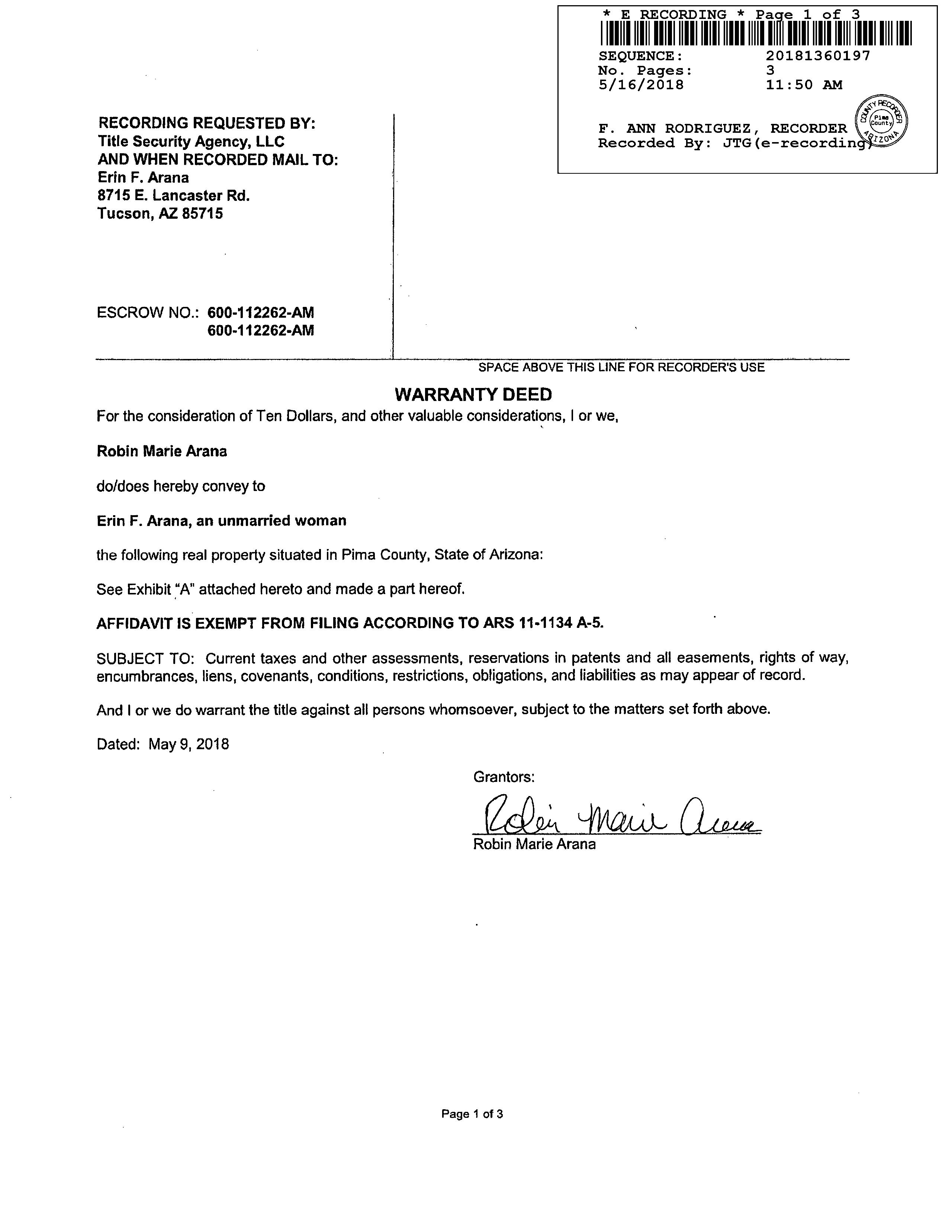 OWNER: ARANA ERIN F