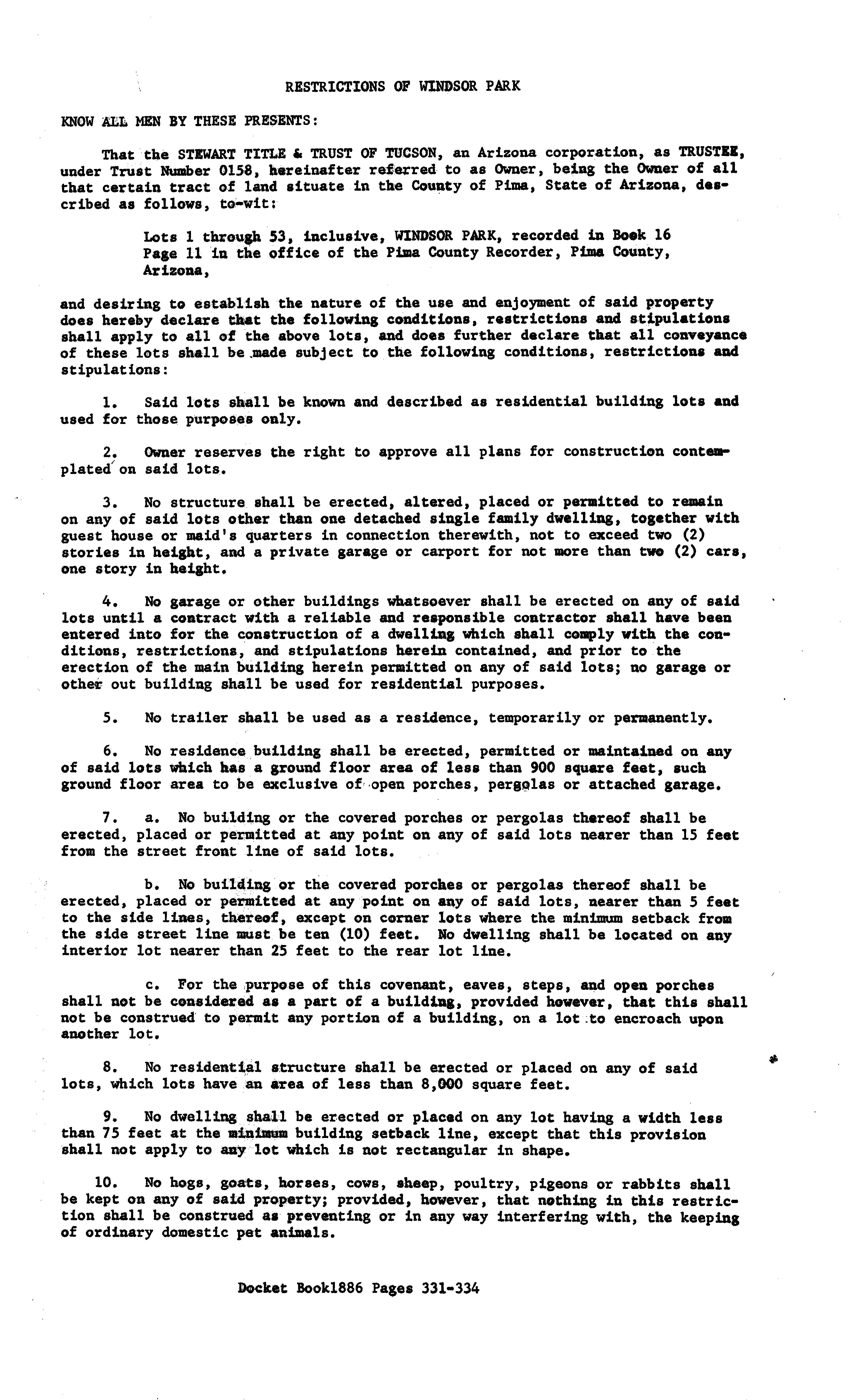 Covenants, Conditions & Restrictions