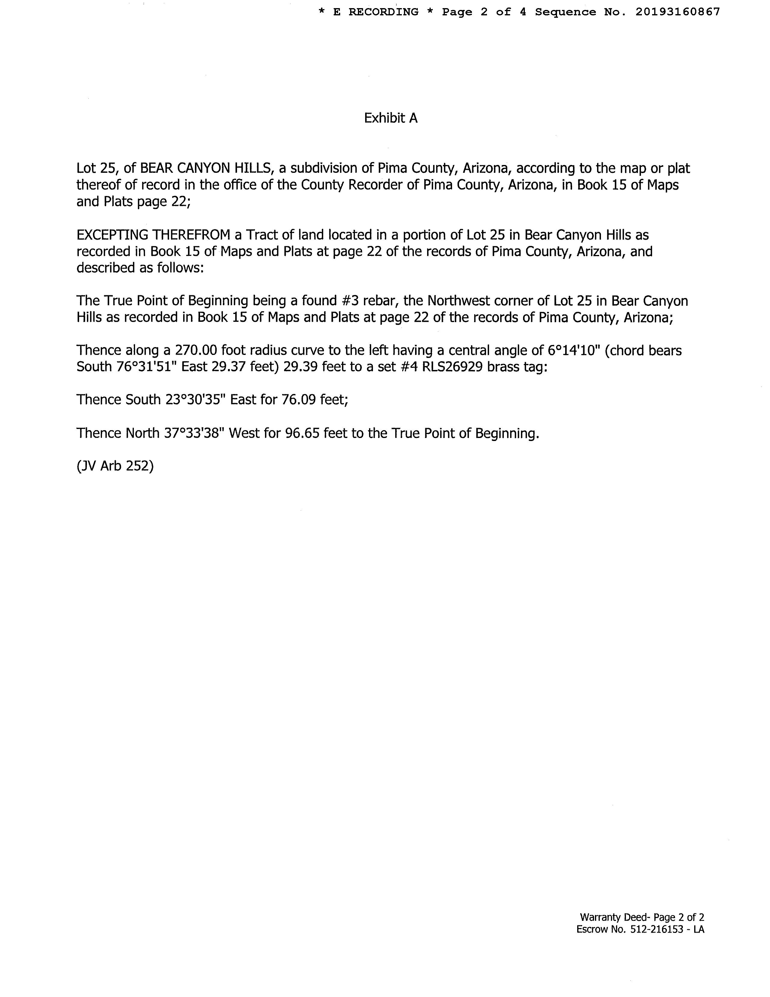 LEGAL: BEAR CANYON HILLS LOT 25 EXC NWLY TRI PTN
