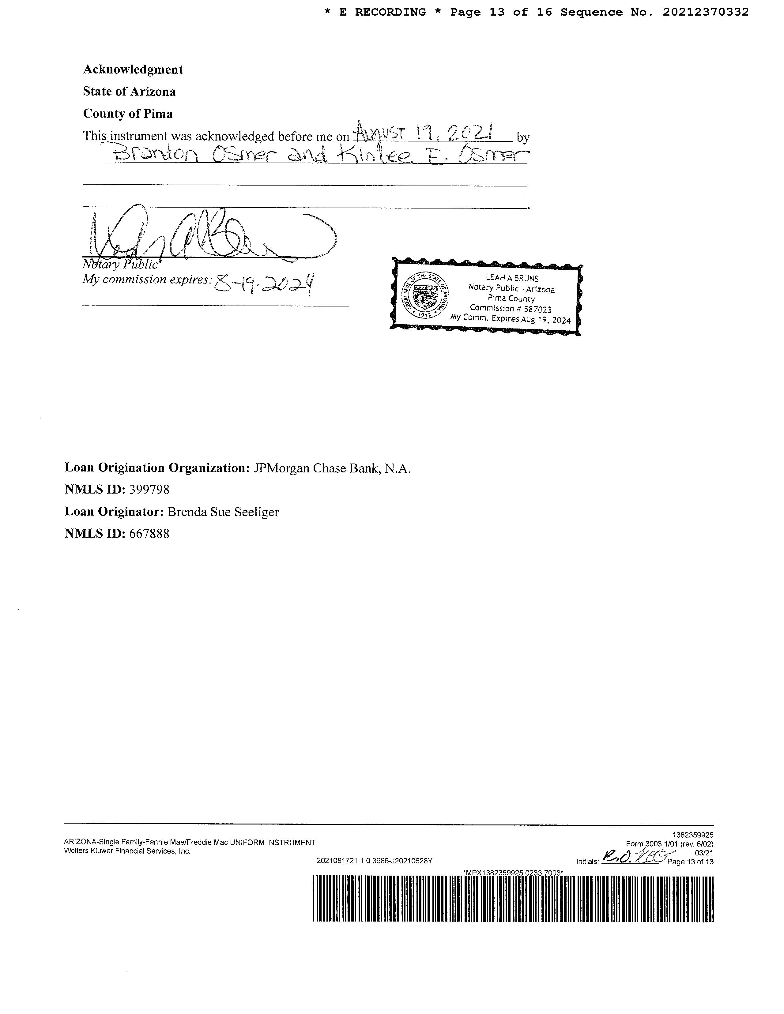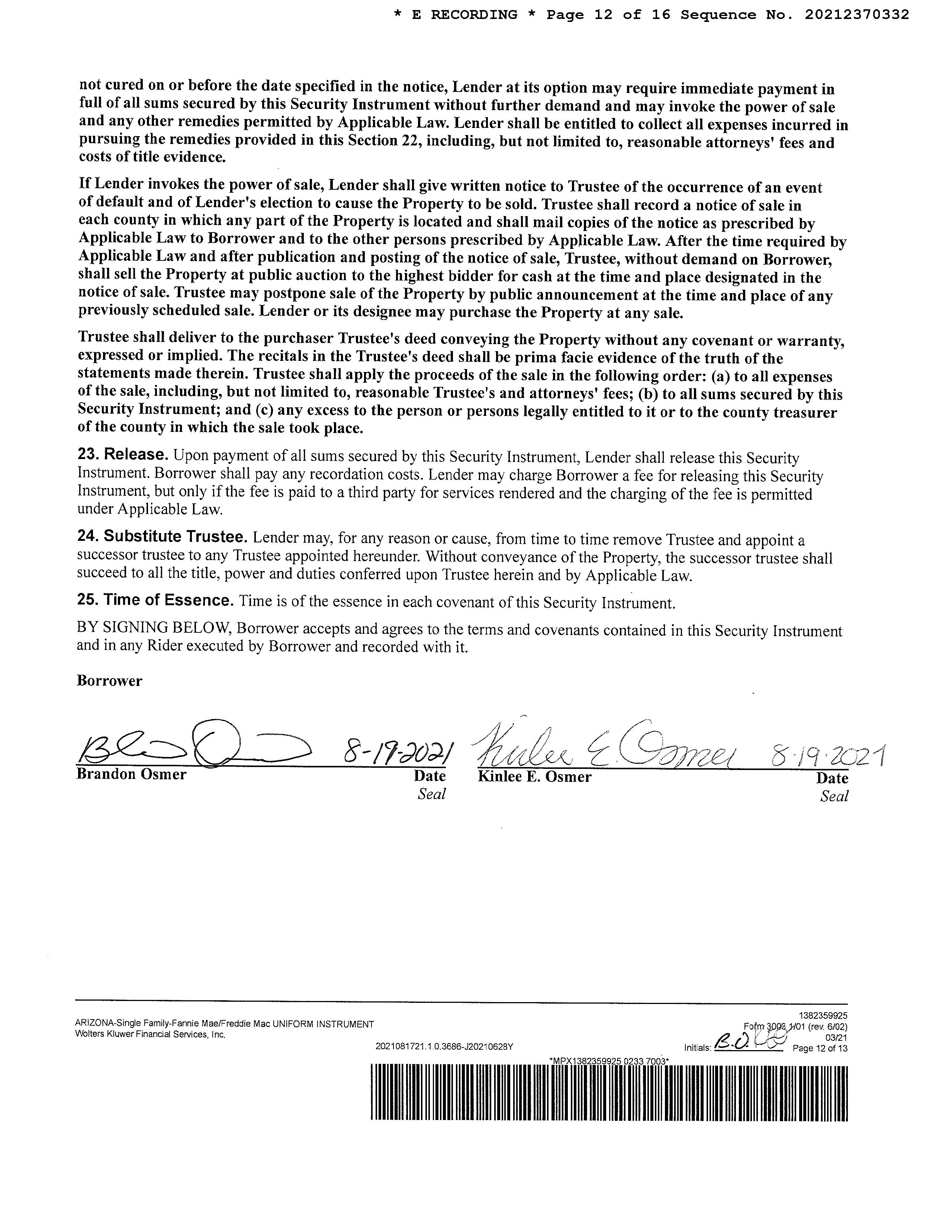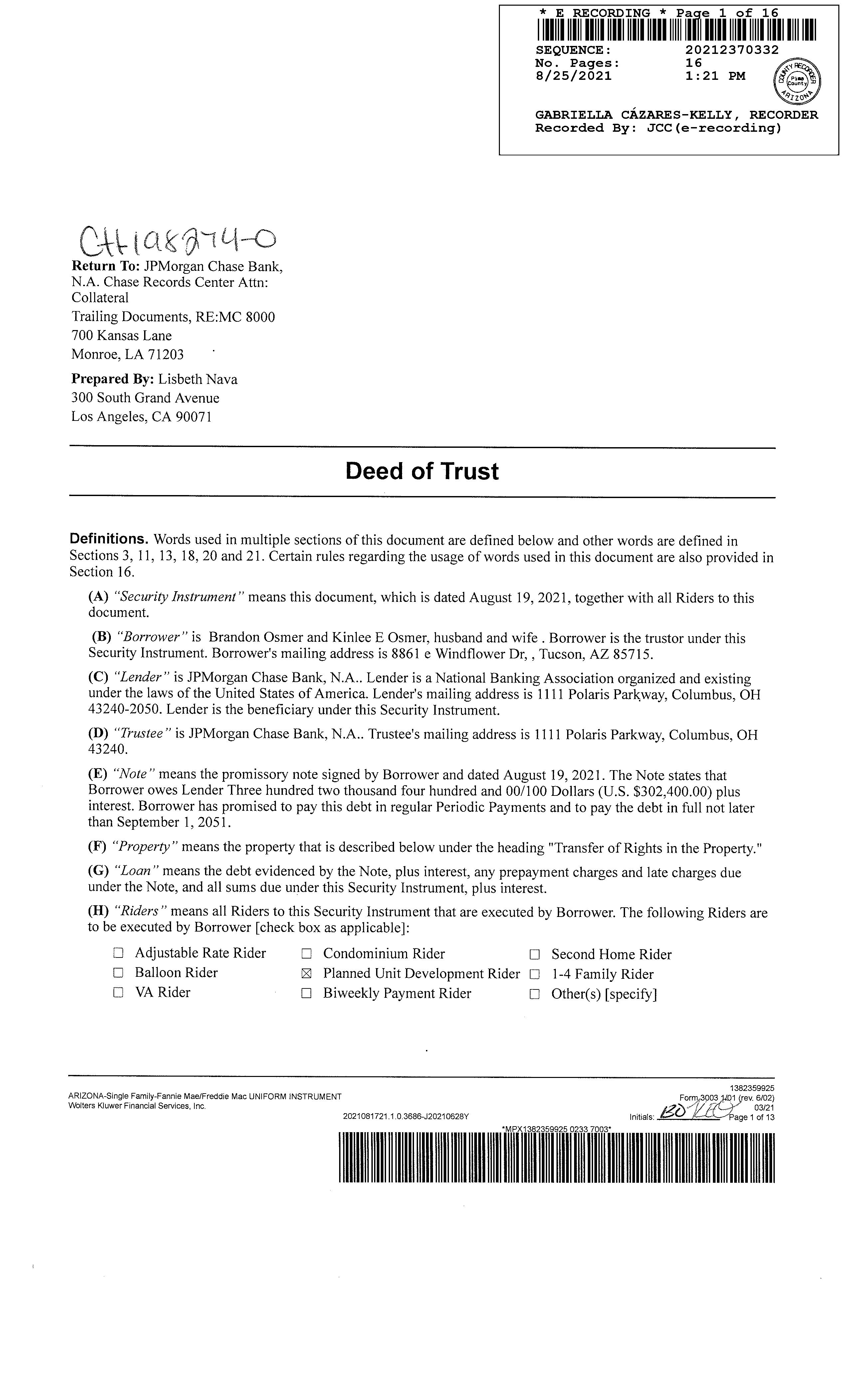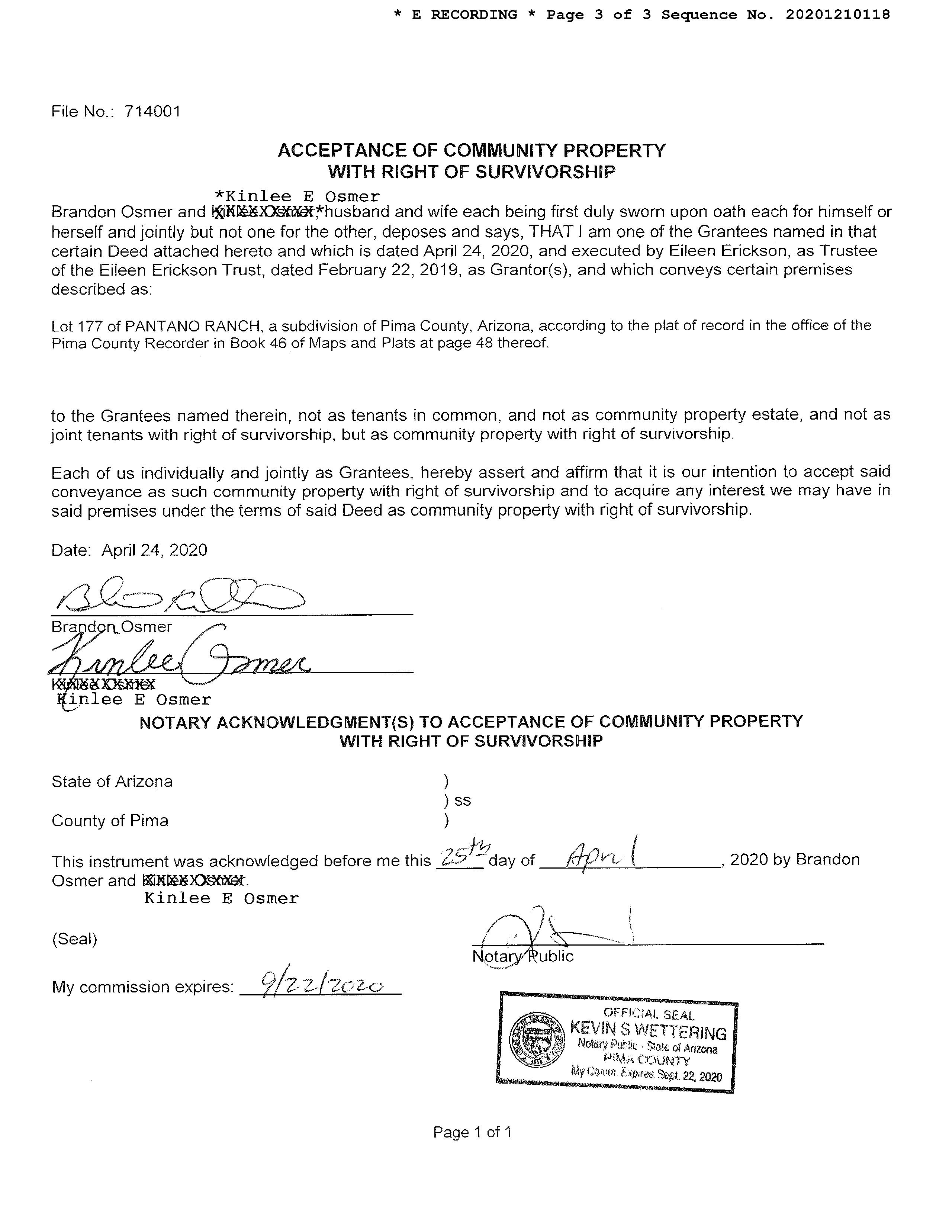 OWNER: OSMER BRANDON & KINLEE E AFFIDAVIT