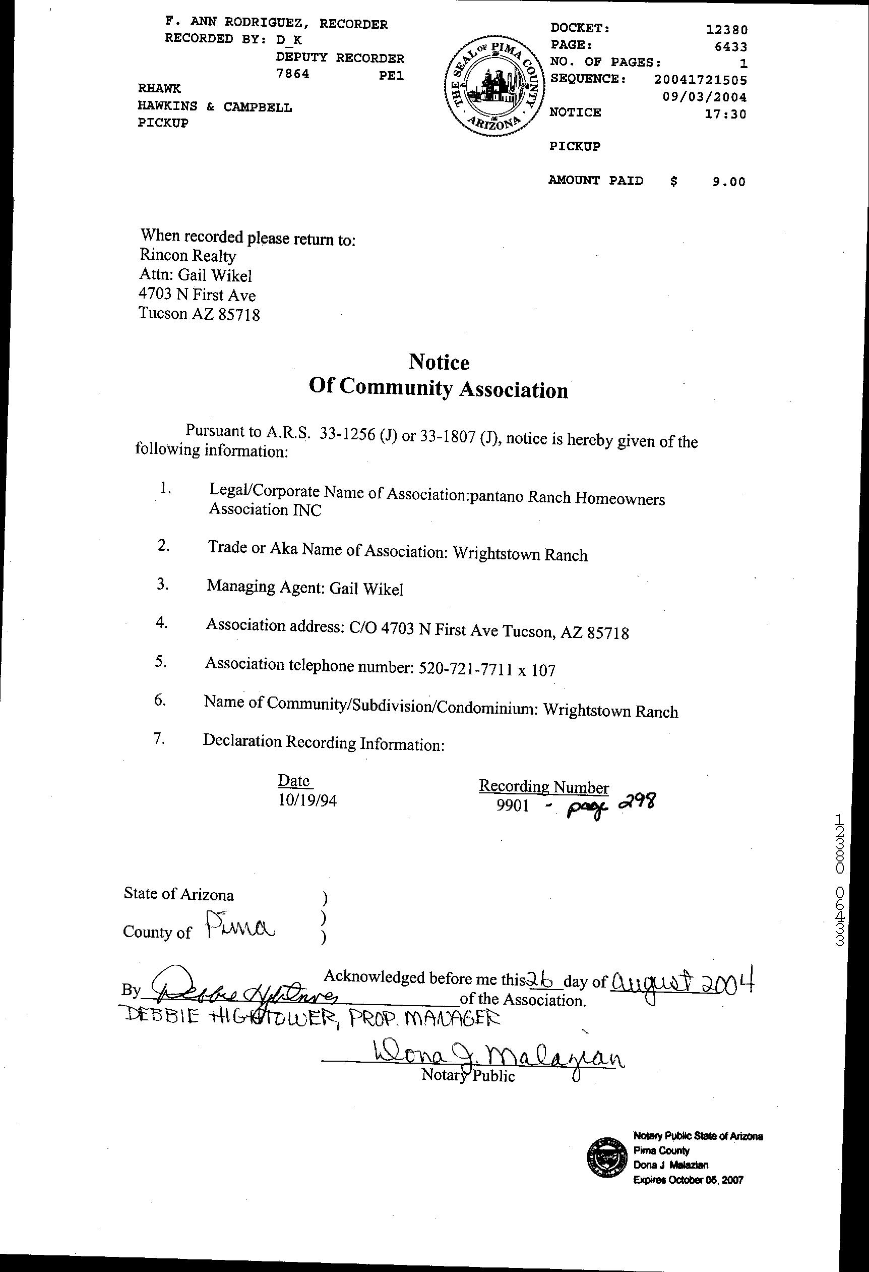 LEGAL: PANTANO RANCH LOT 0177