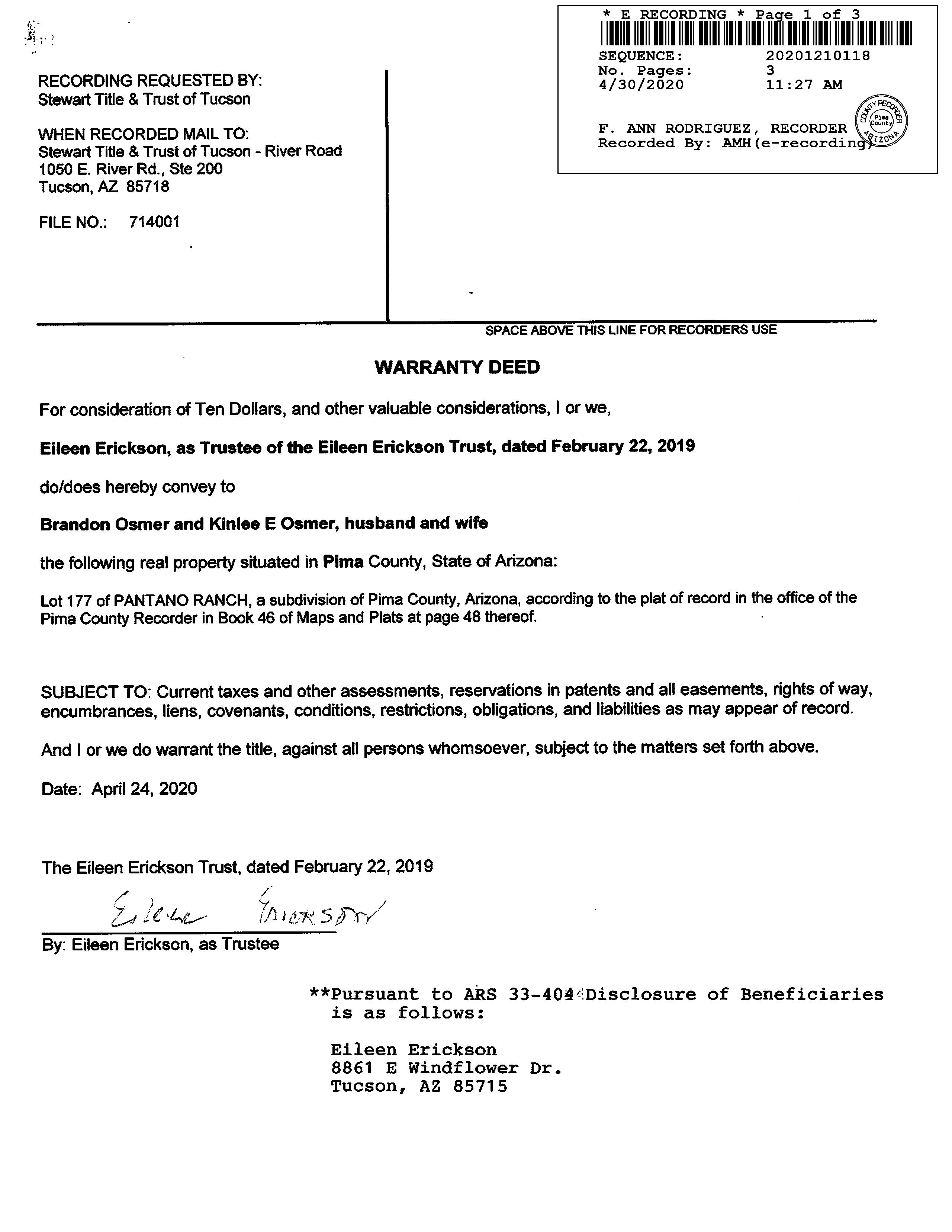 2020 1210118 WD ERICKSON EILEEN & EILEENN