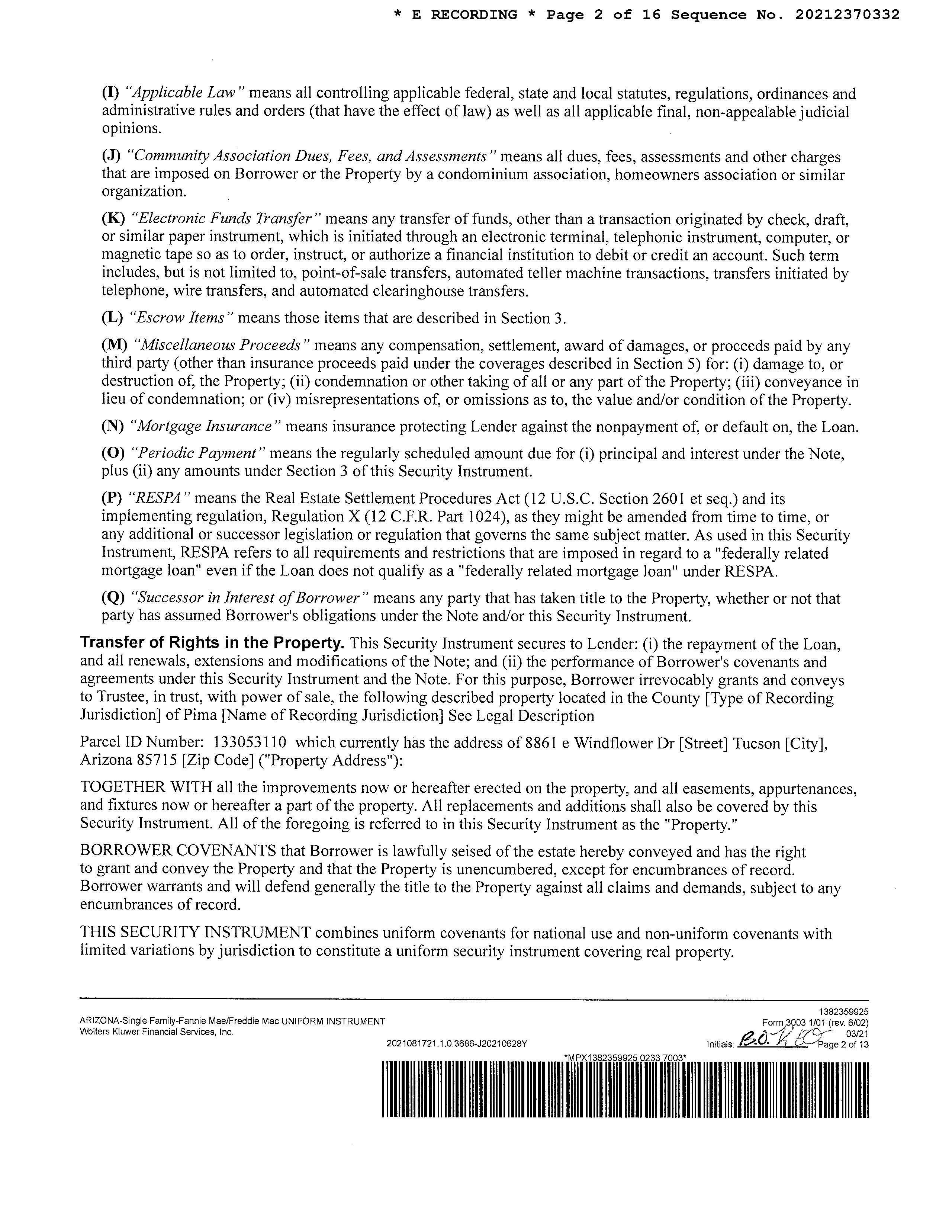 SITUS: 8861 E WINDFLOWER DR TUC
