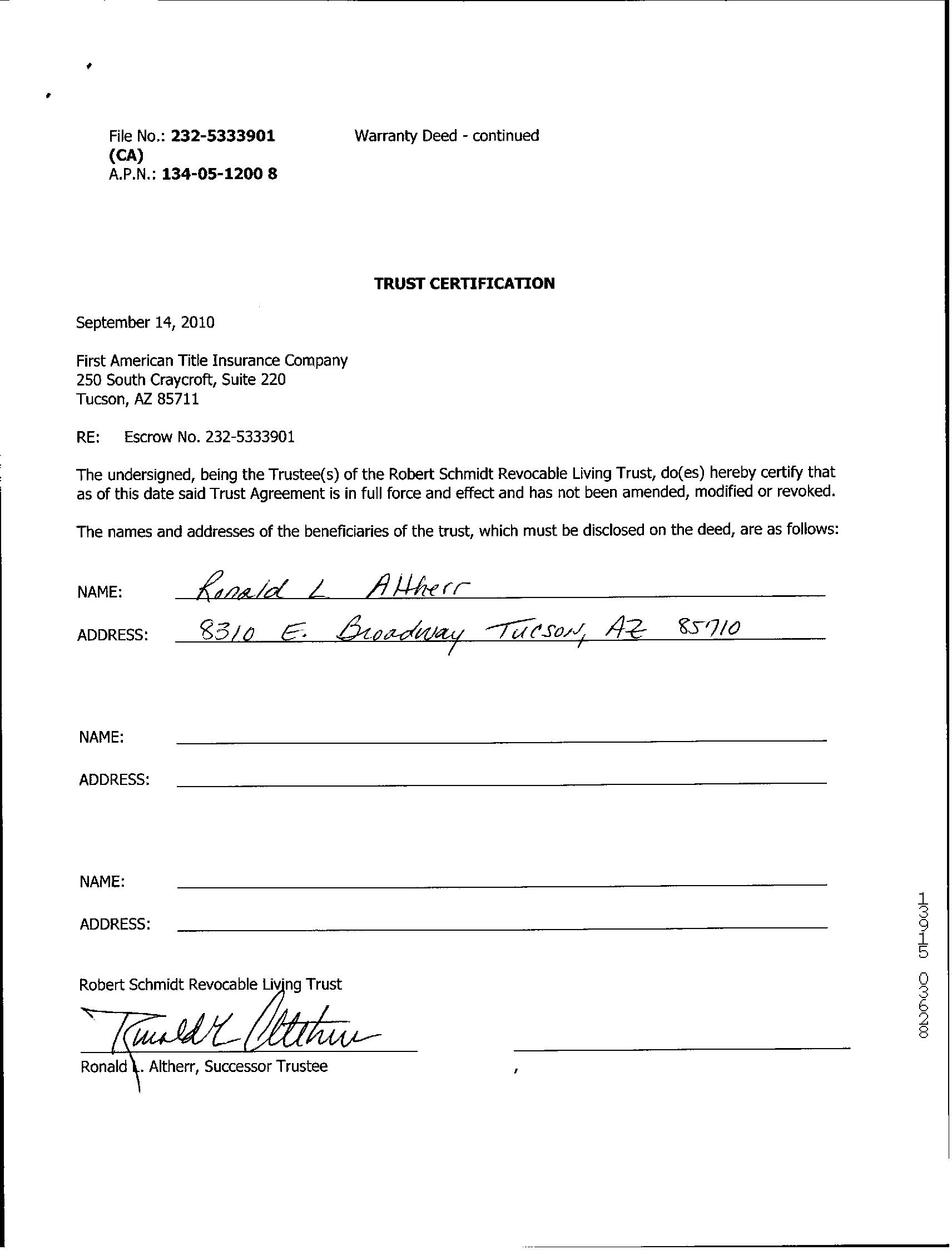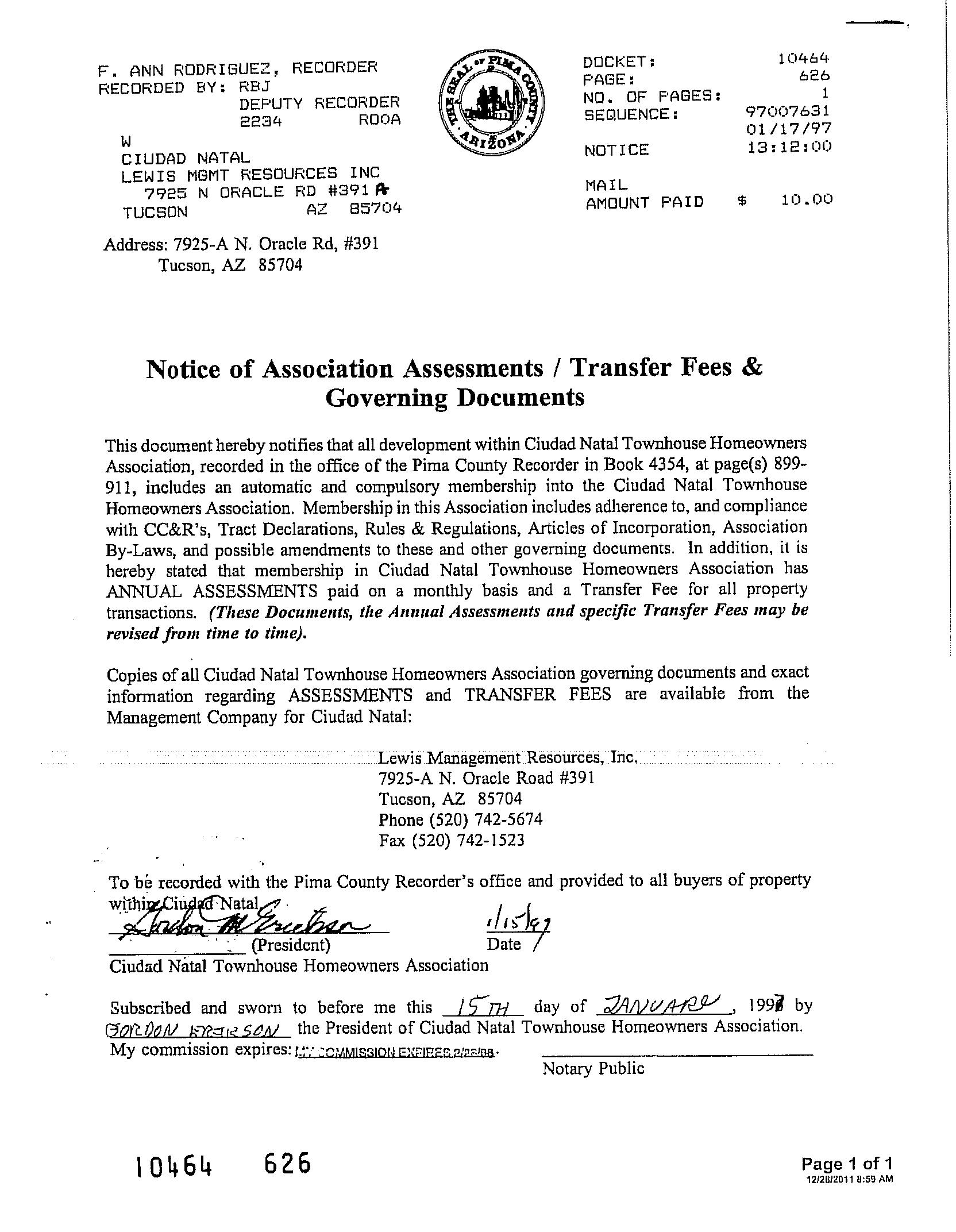 Mailing Address : 890 S Ciudad Cir, Tucson AZ 85710 C032