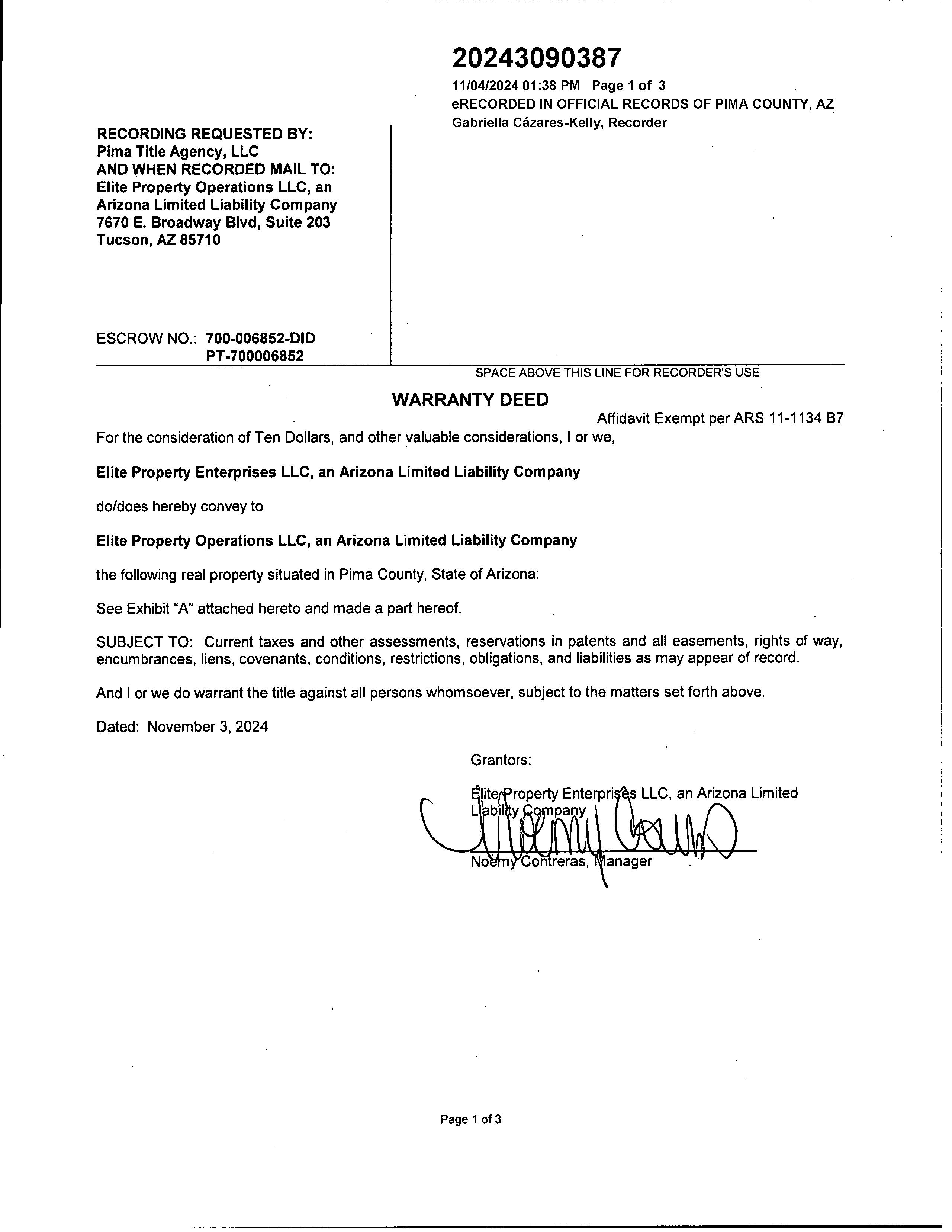 OWNER: ELITE PROPERTY OPERATIONS L AFFIDAVIT 2024 3090387 11/04/2024