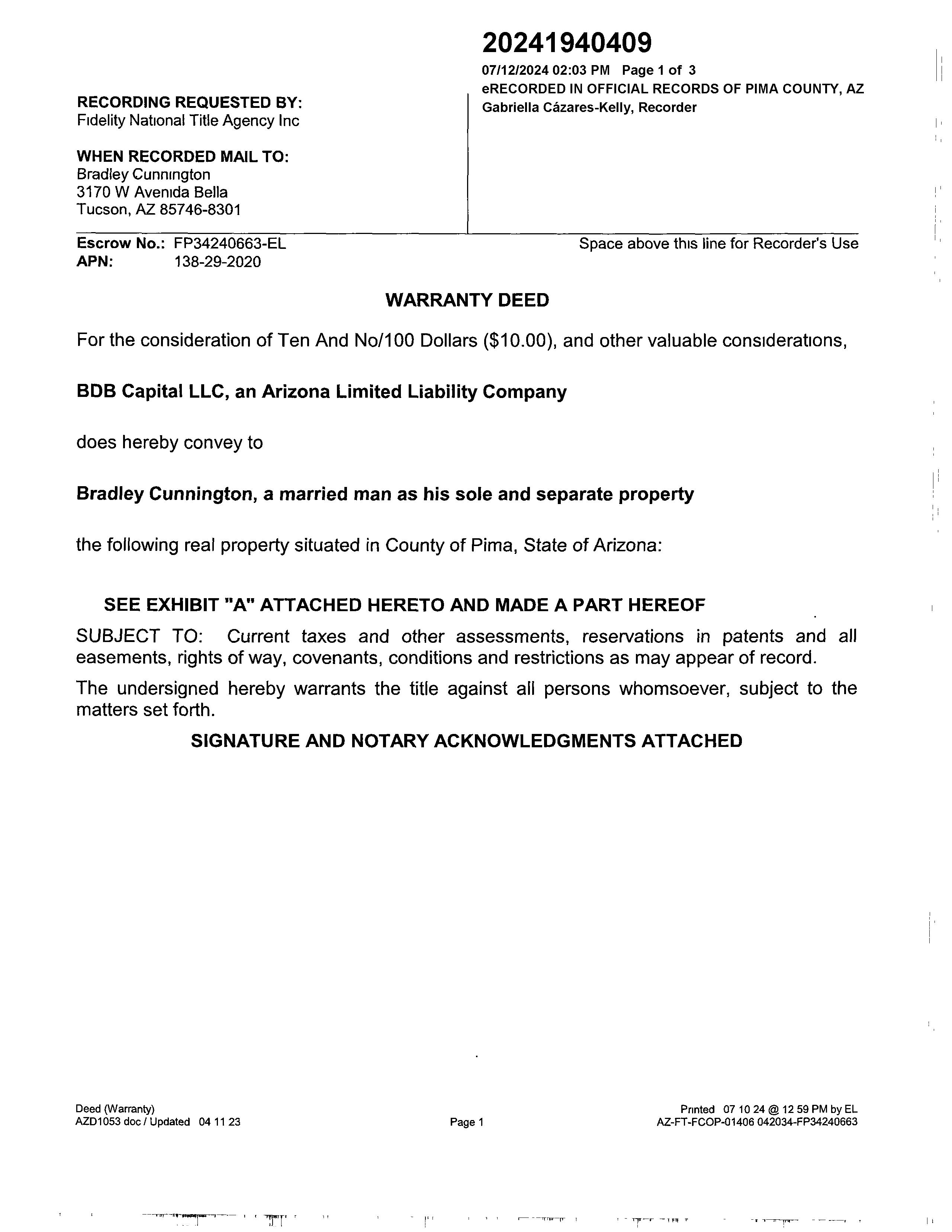 07/12/2024 328,000 2024 1940409 WD BDB CAPITAL LLC