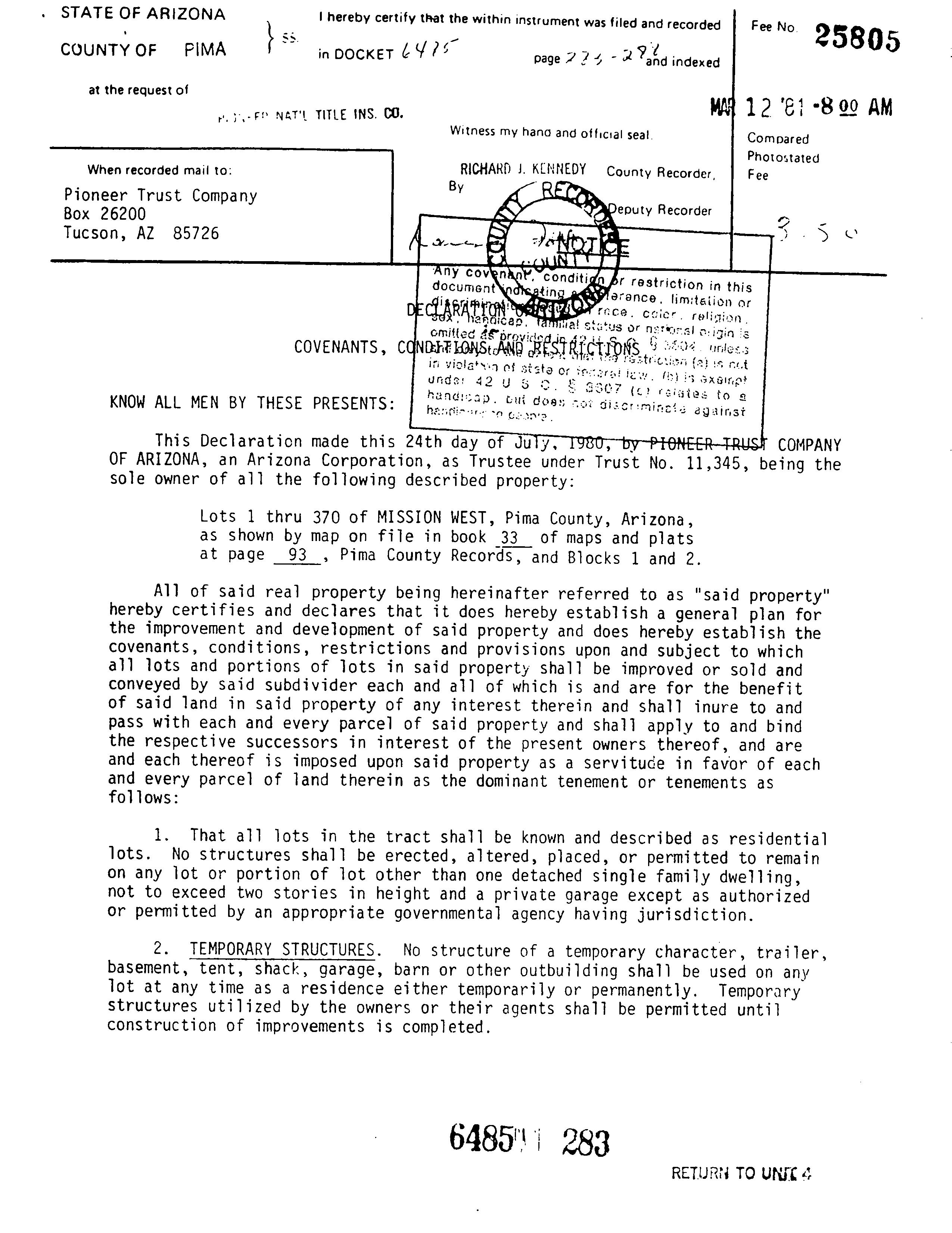 05/28/1998 101,400 10805 4790 WD MOLNAR DANIEL B/DIANE A ADDITIONAL PROPERTY INFORMATION STANDARD LAND USE: SFR