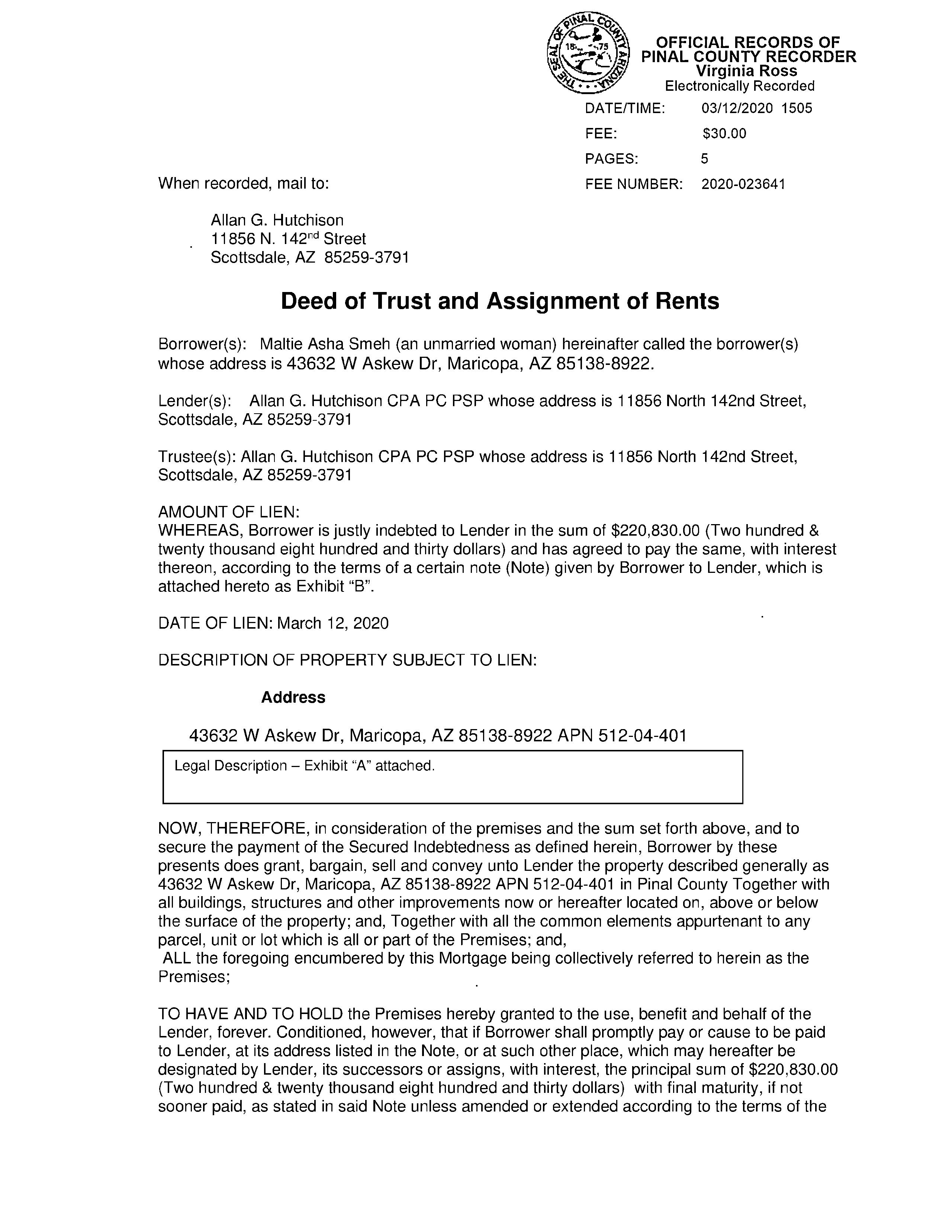 Mailing Address : 43632 W Askew Dr, Maricopa AZ 85138-8922 R015
